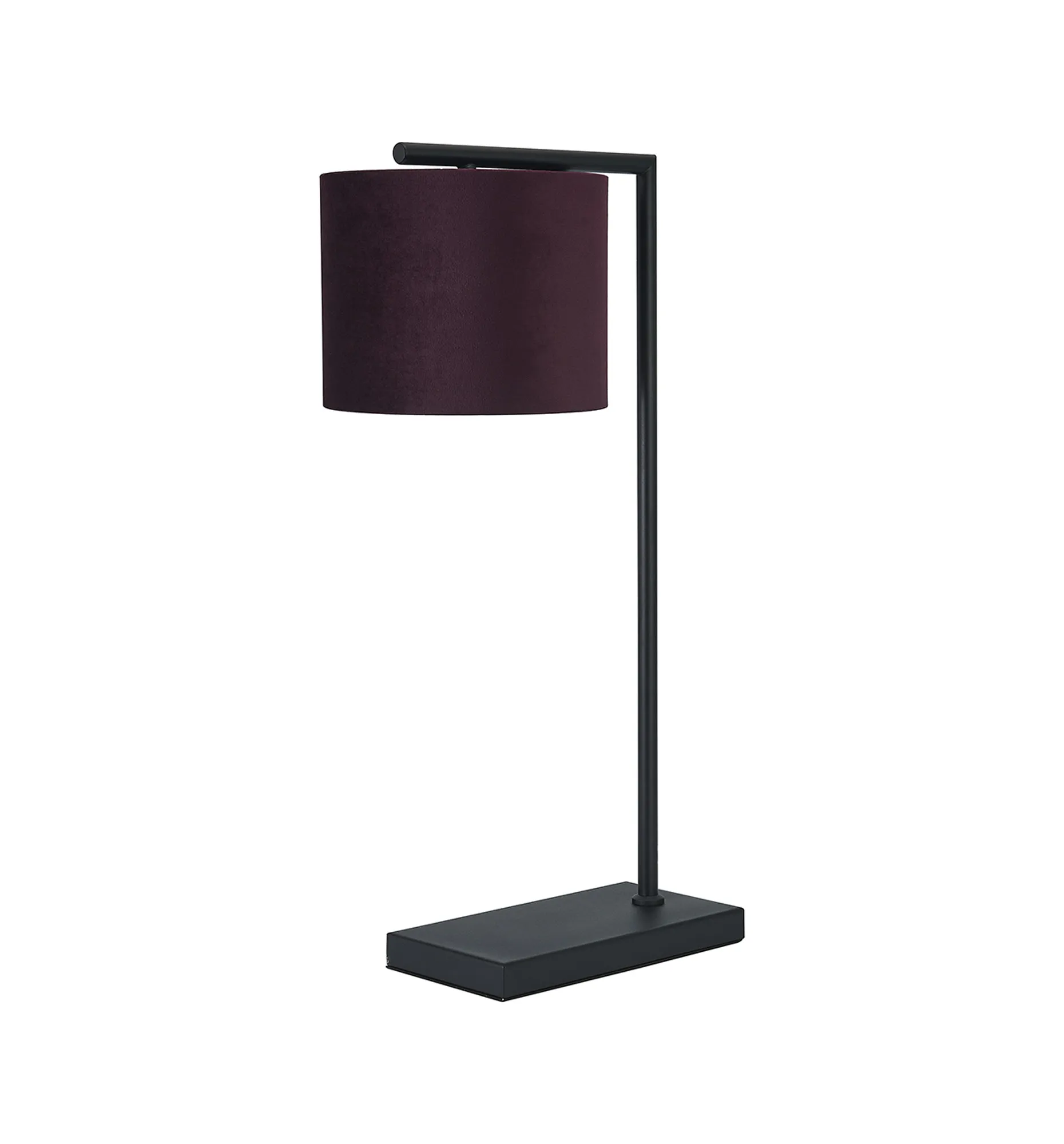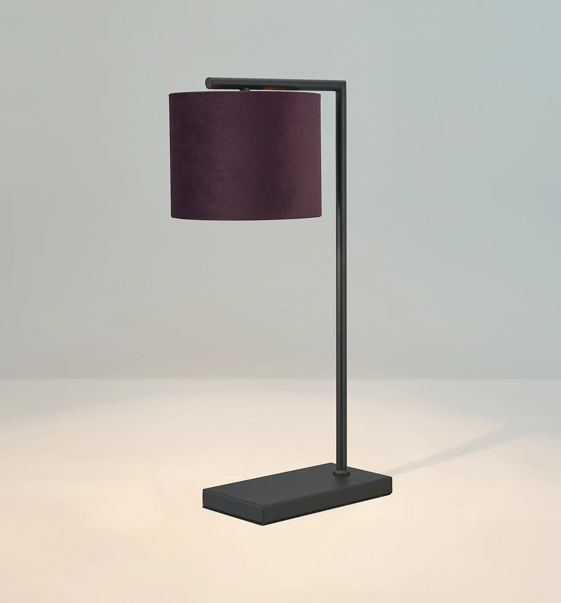 Colbourne Floor Lamp, 1 Light E27, Satin Black/Aubergine 30x20cm Velvet Shade