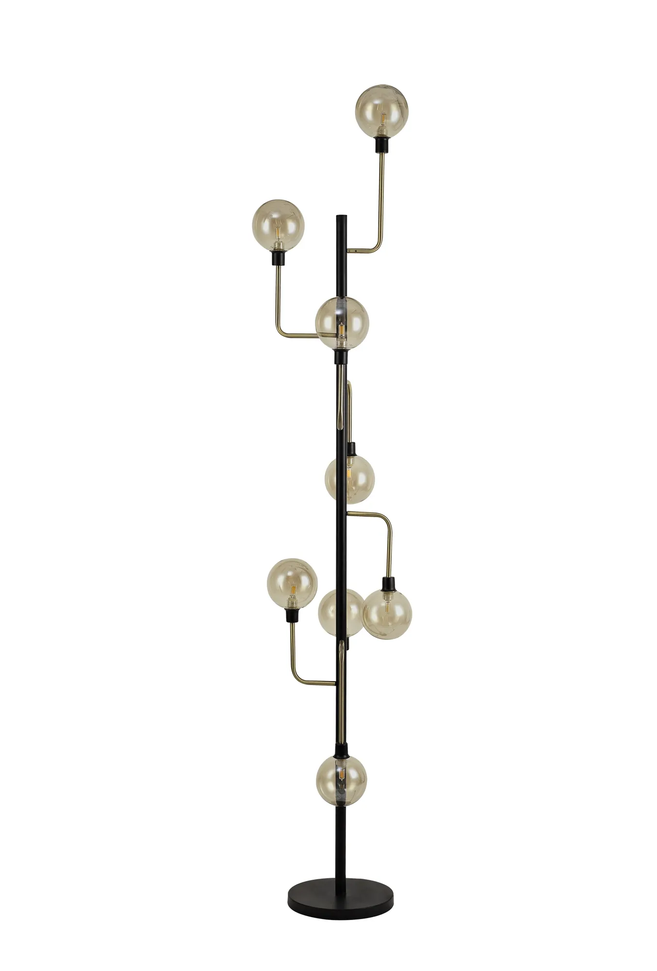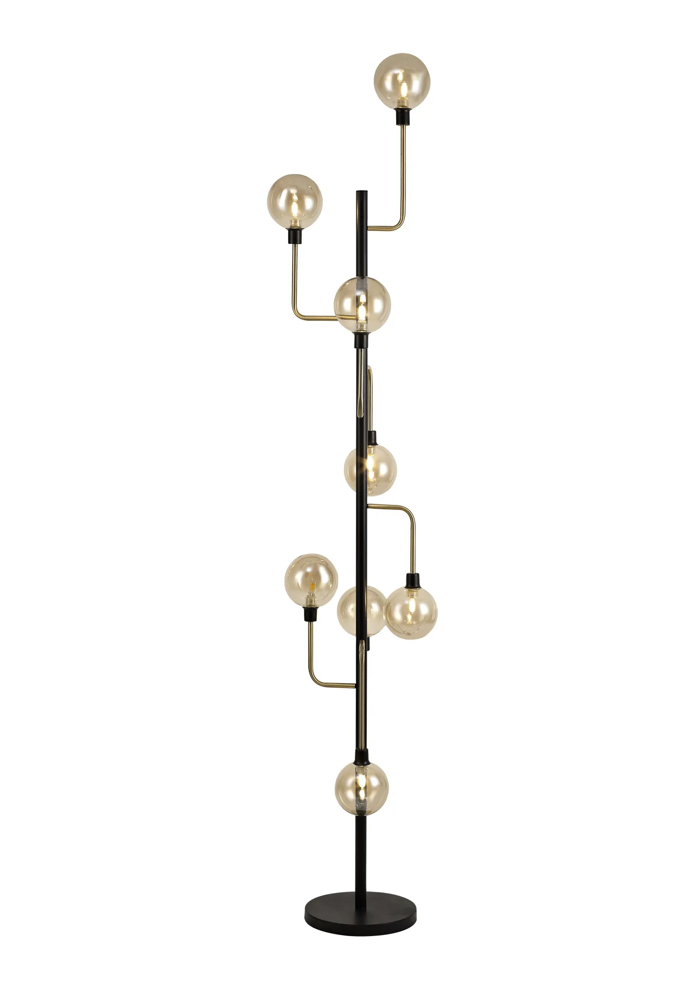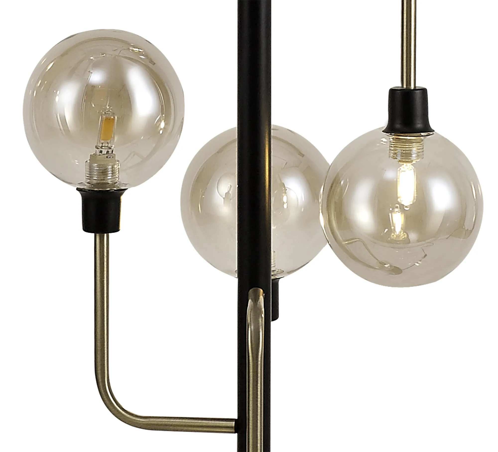 Massey Fixed Pendant Ceiling, 10 x G9, Matt Black/Antique Brass/Cognac Glass