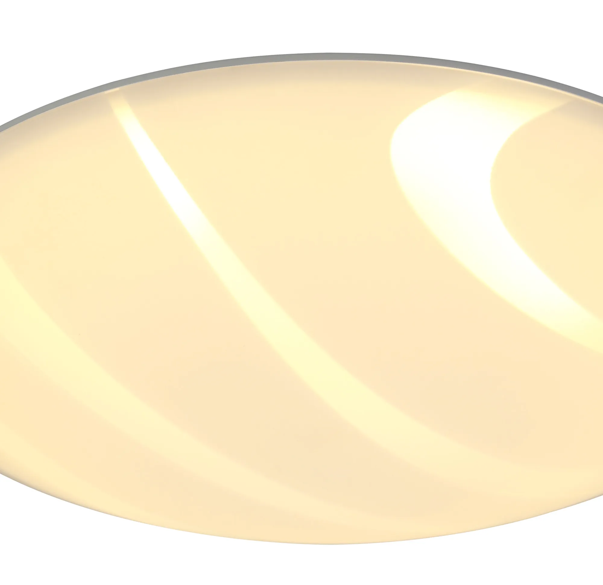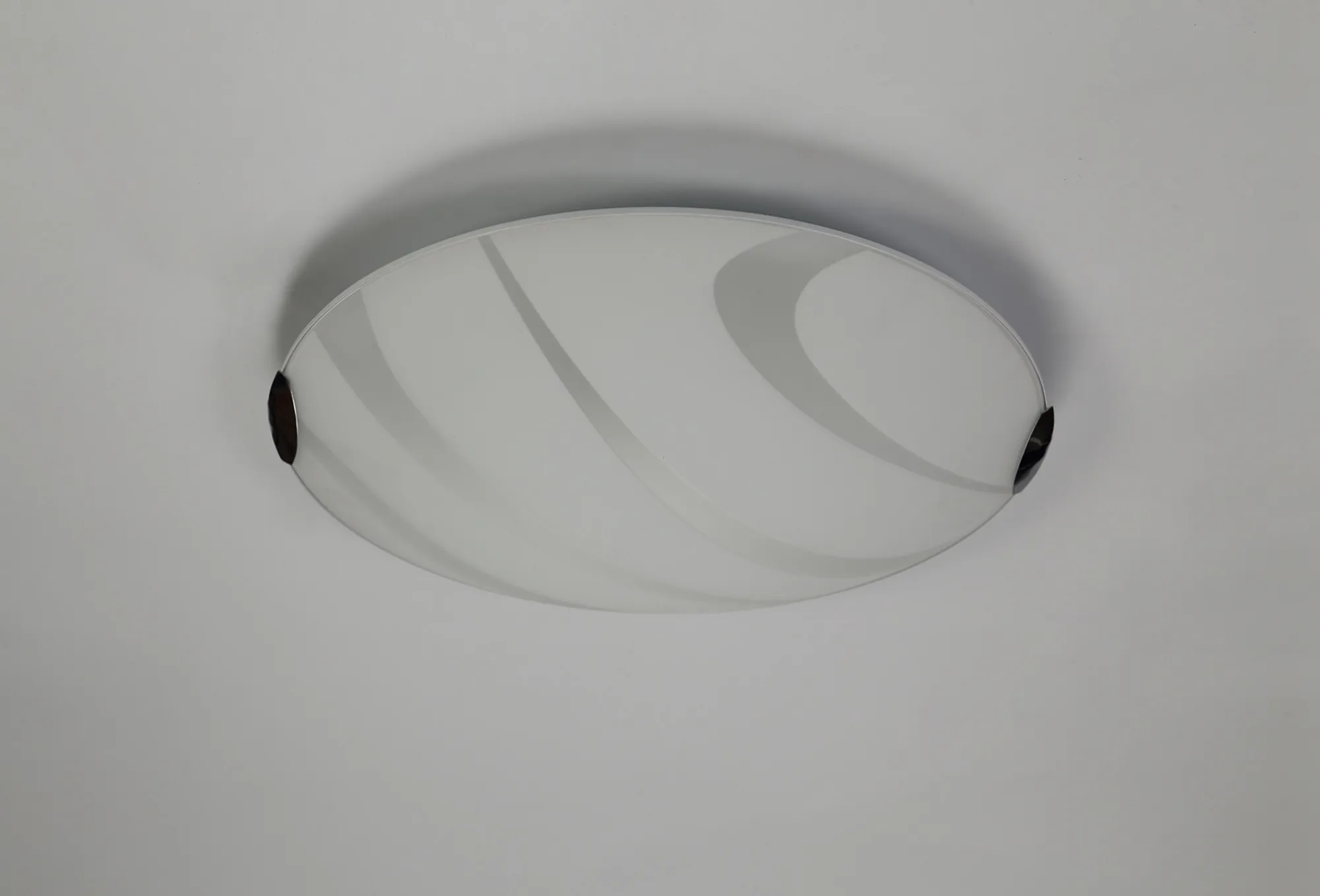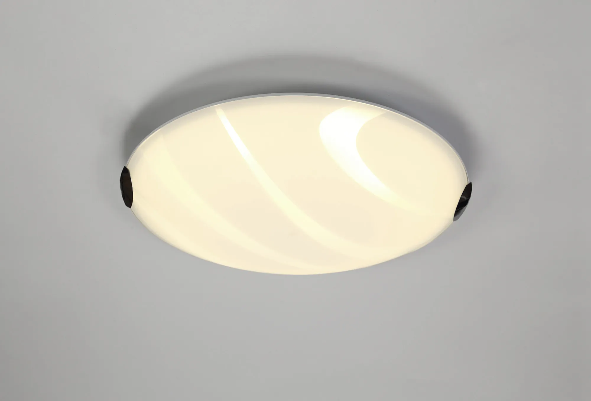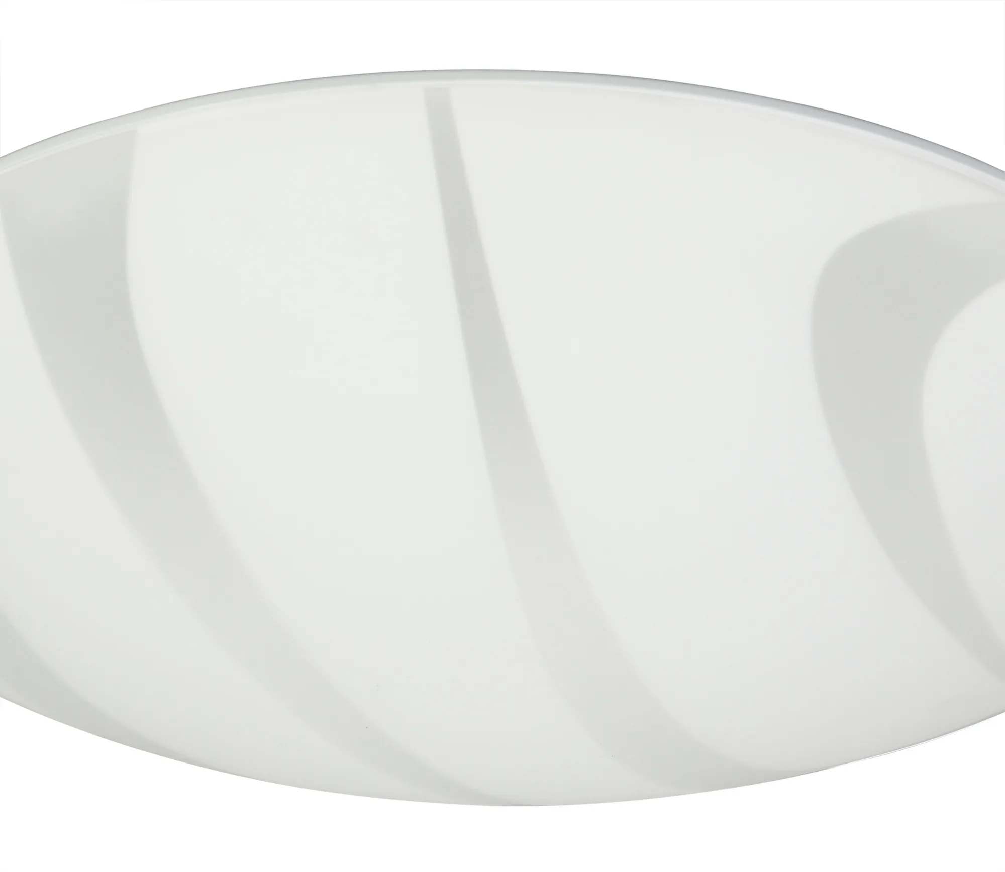 The sweeping strokes lined across the white glass diffuser gives a three dimensional illusion projecting more depth on the design yet maintaining a suitable low ceiling fixture. Two sizes of the Flemming flush ceiling lights both conceal the 3000K integral LEDs along with the matching wall lamp.