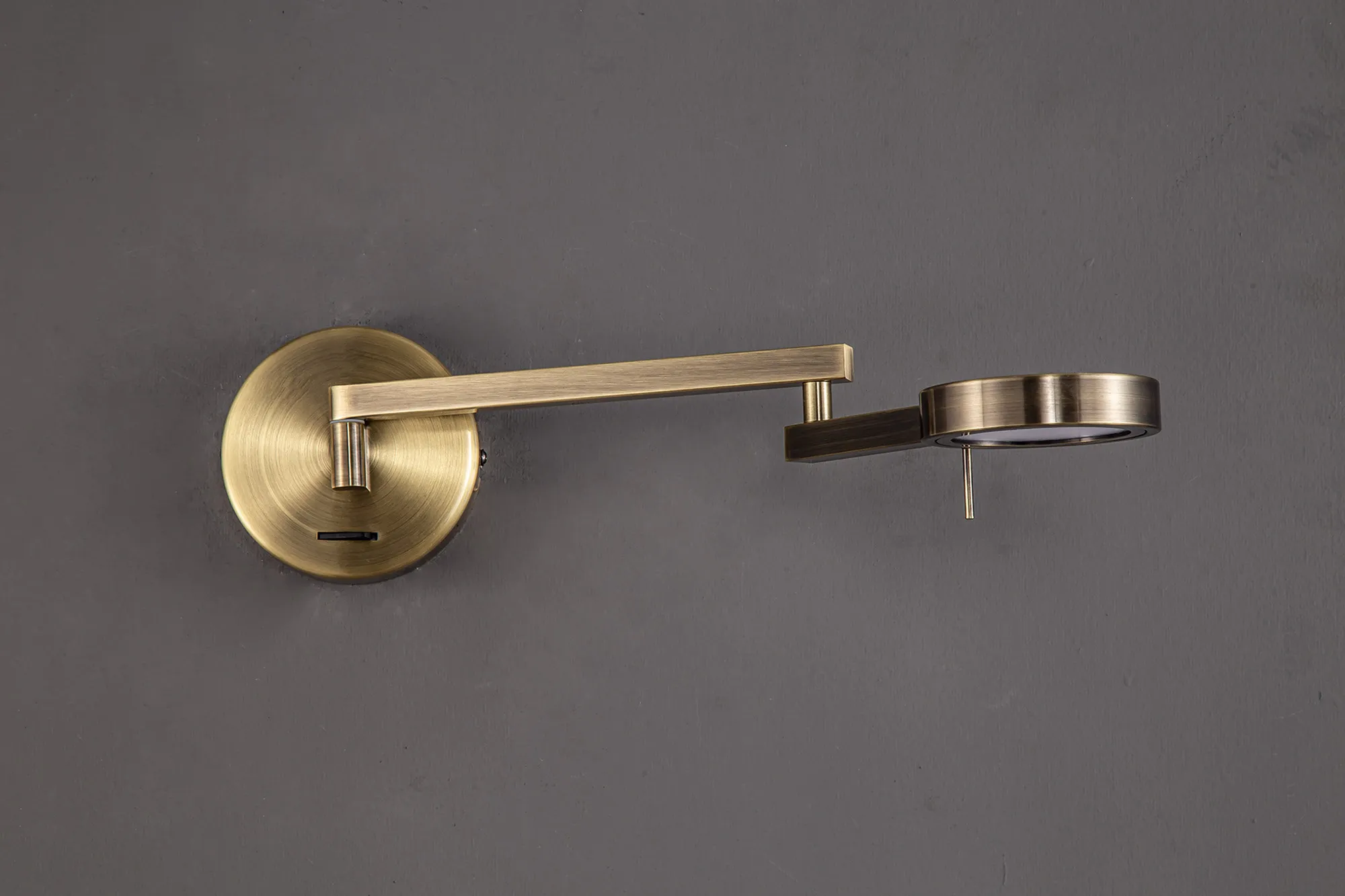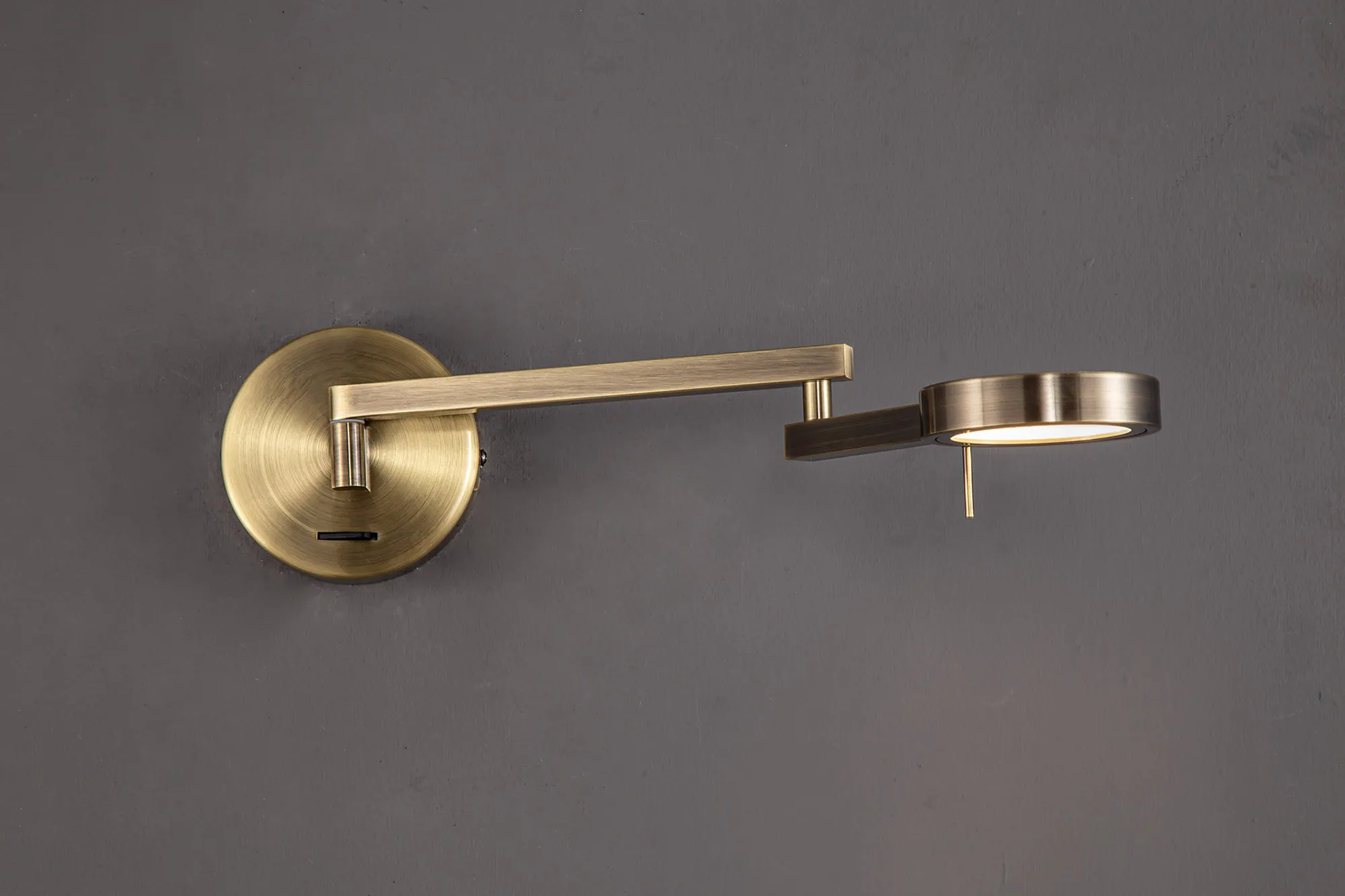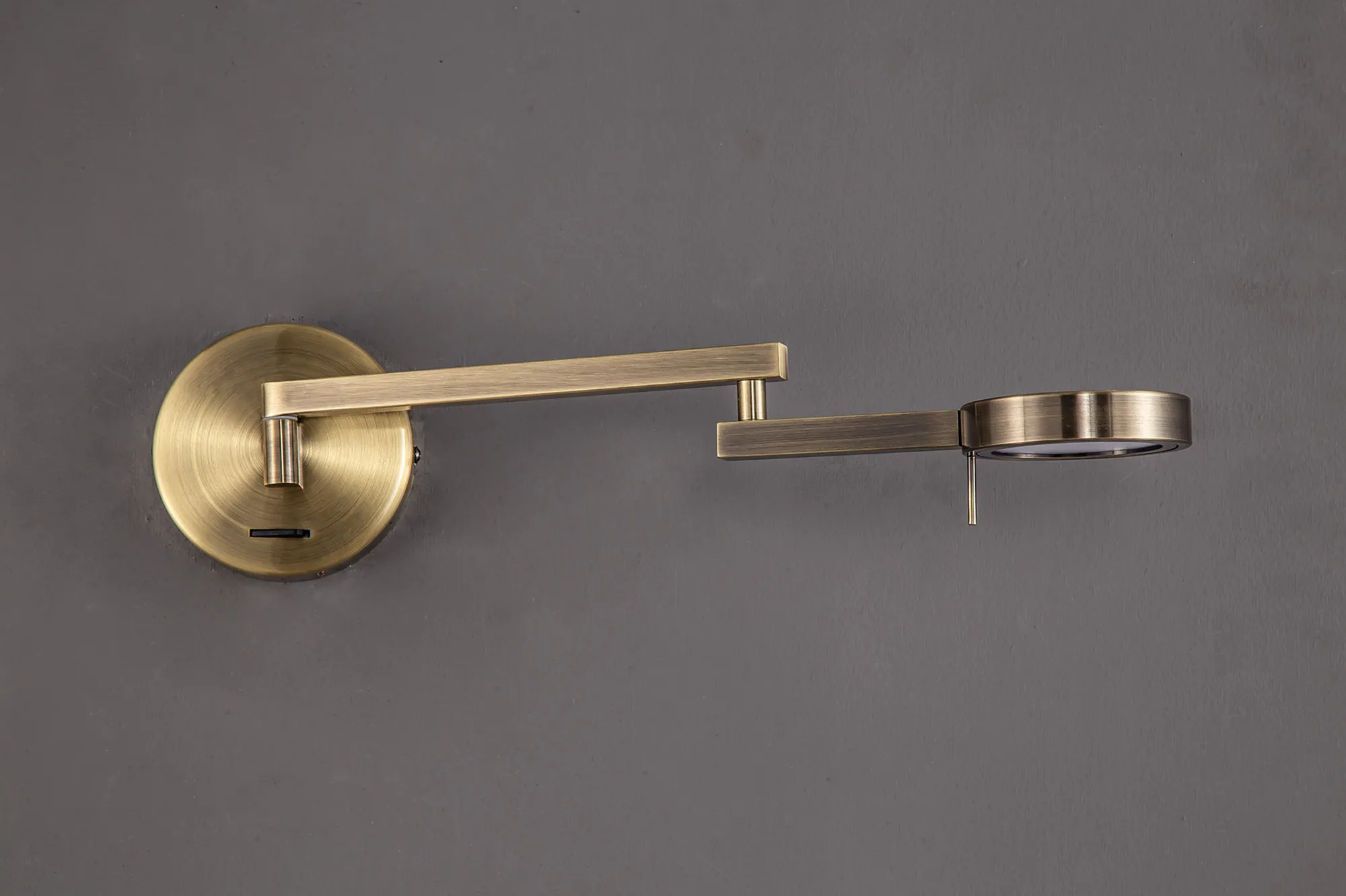 Wellington Switched Adjustable Swing Arm Wall Lamp / Reader, 1 x 8W LED, 3000K, Satin Nickel, 3yrs Warranty