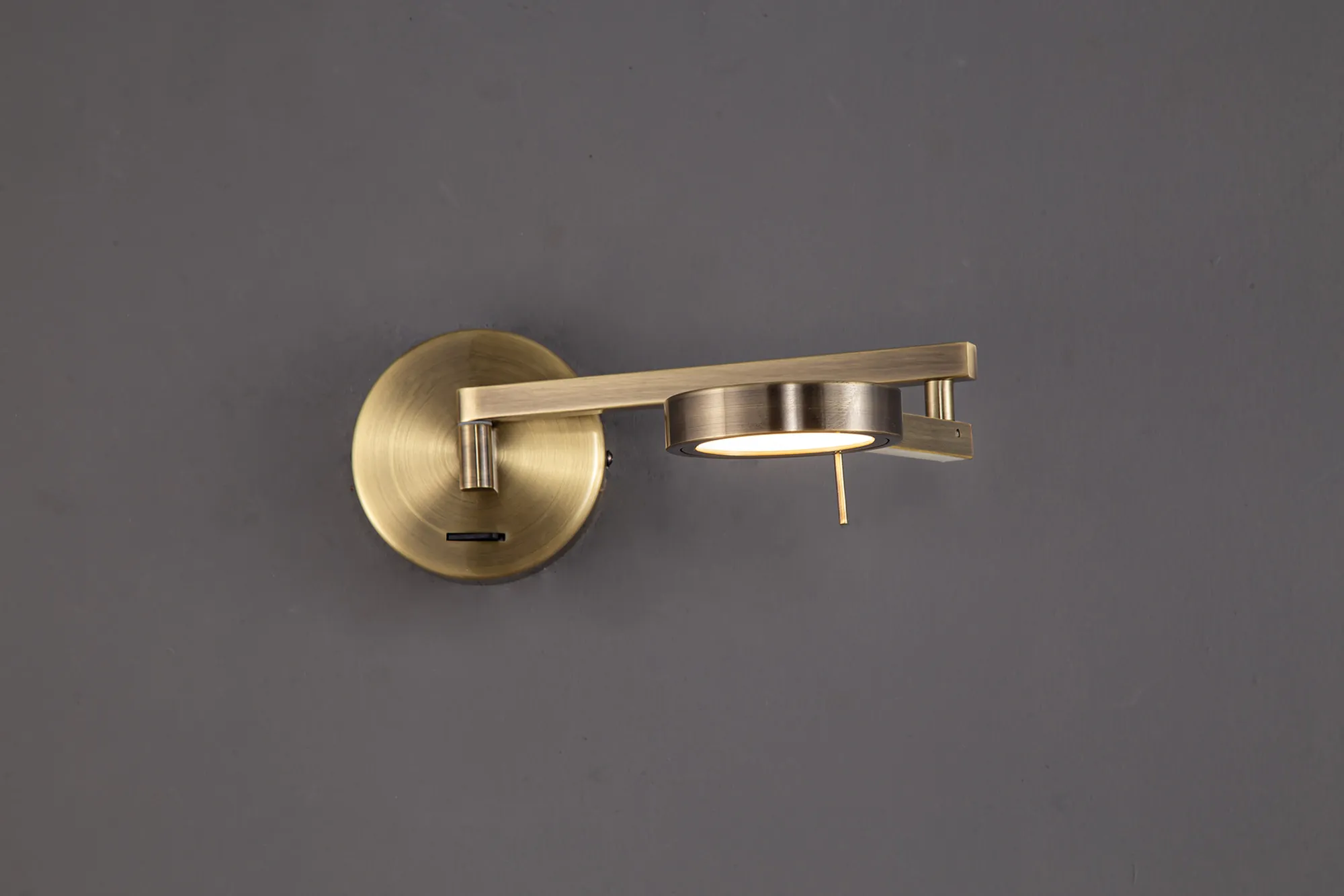 Wellington Switched Adjustable Swing Arm Wall Lamp/Reader, 8W LED, 3000K, Satin Nickel