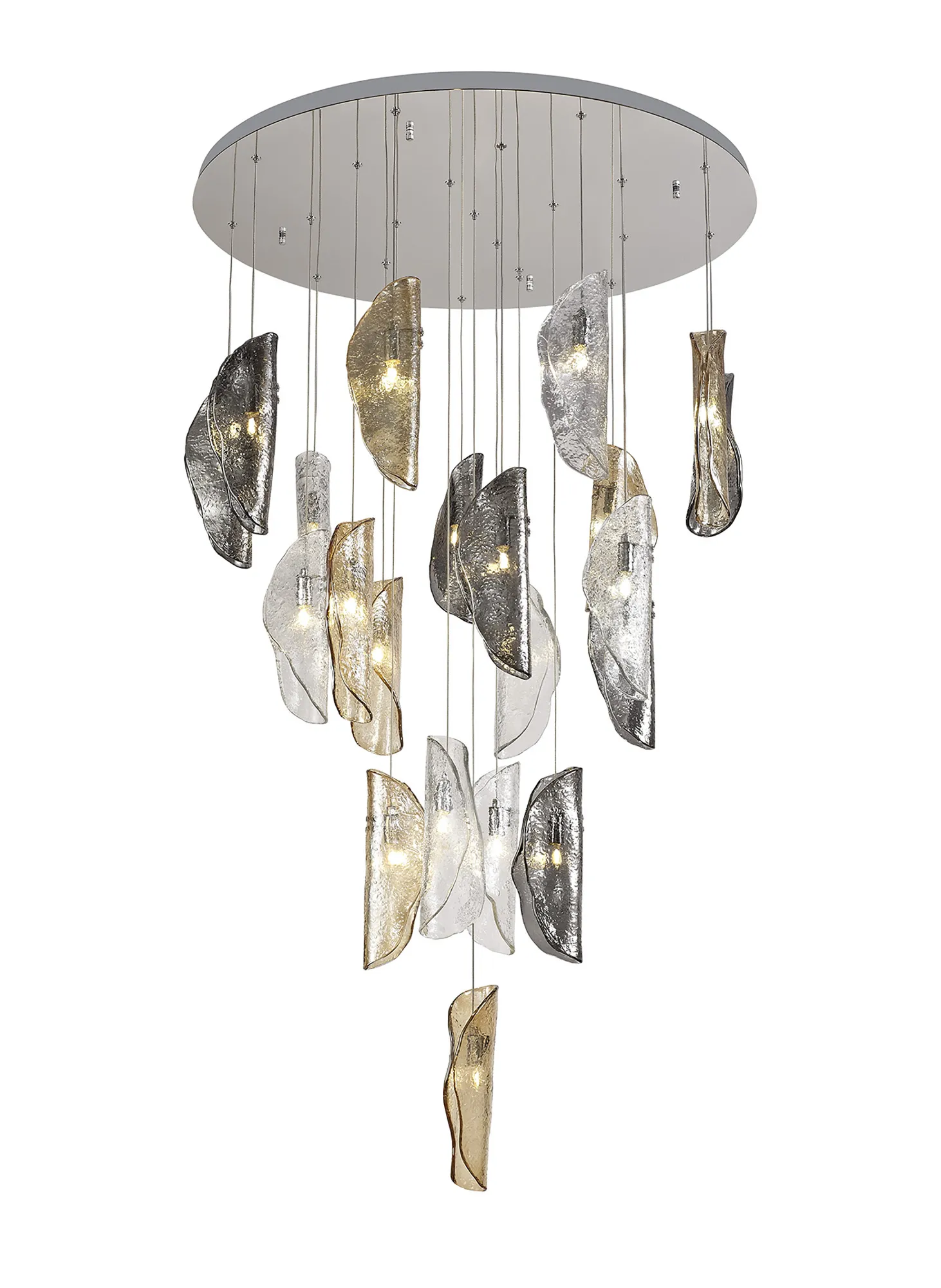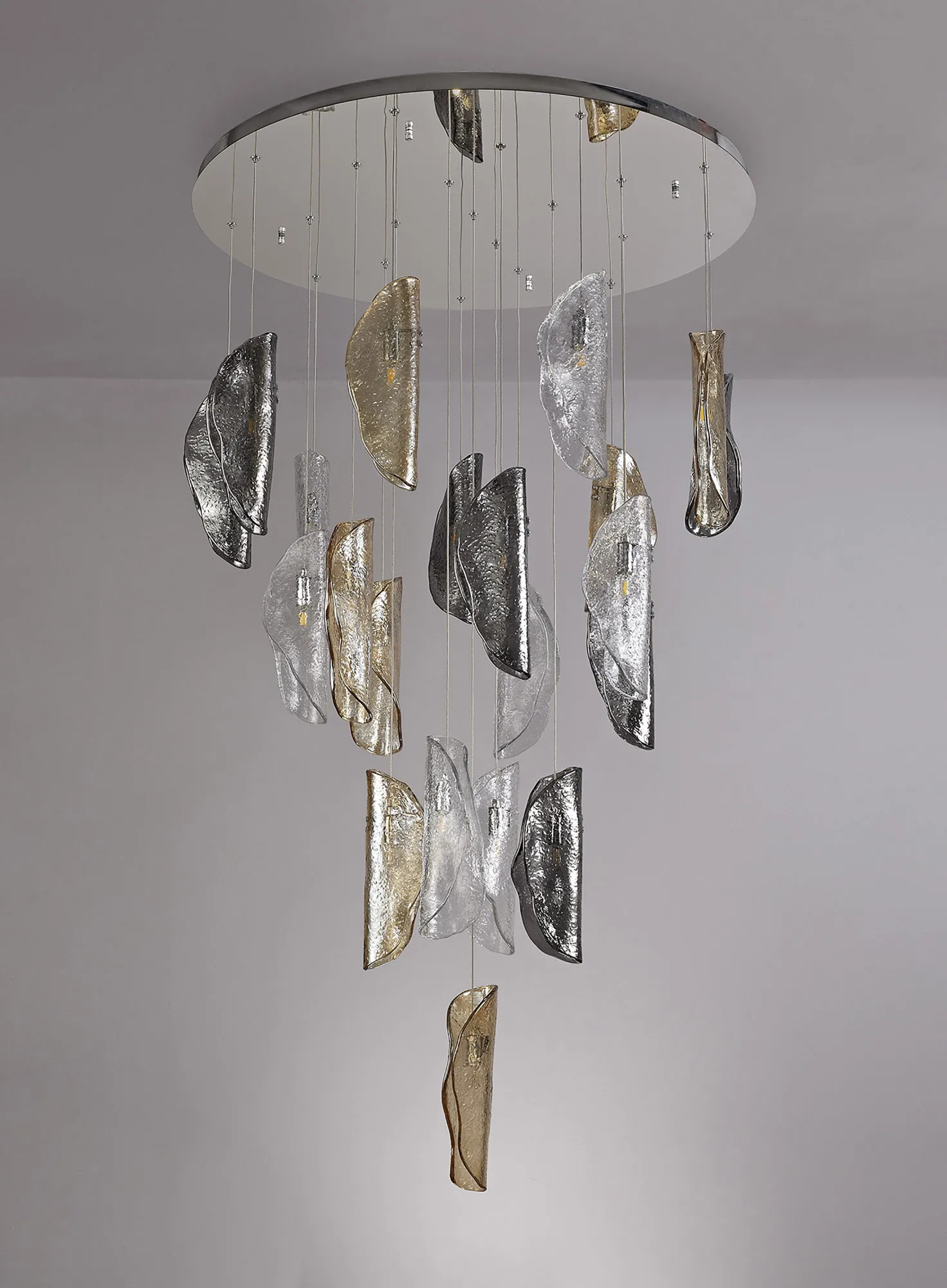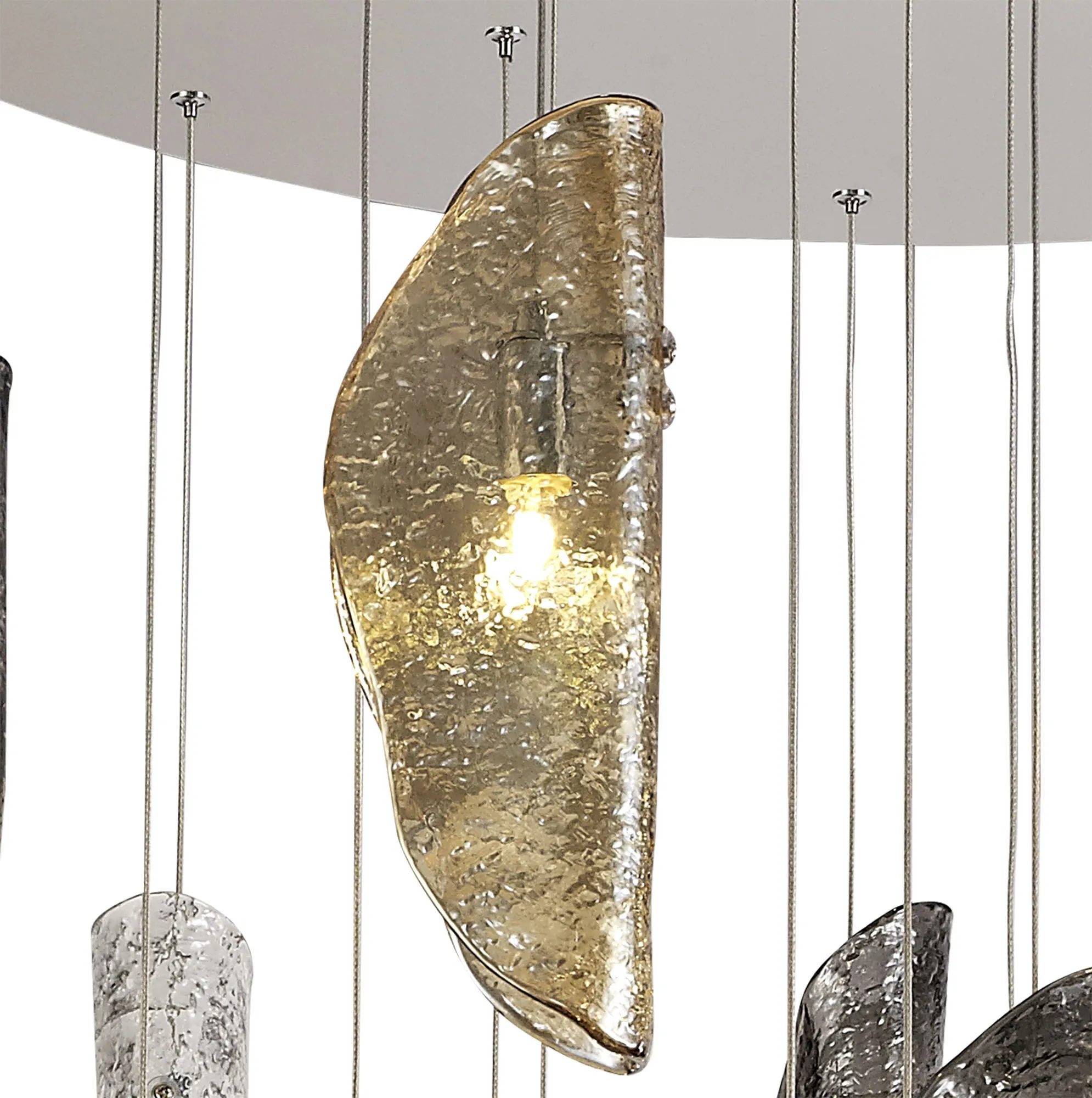 Canterbury 68cm Pendant 3m, 15 x G9, Polished Chrome / Clear & Amber & Smoked Glass, Item Weight: 17.5kg