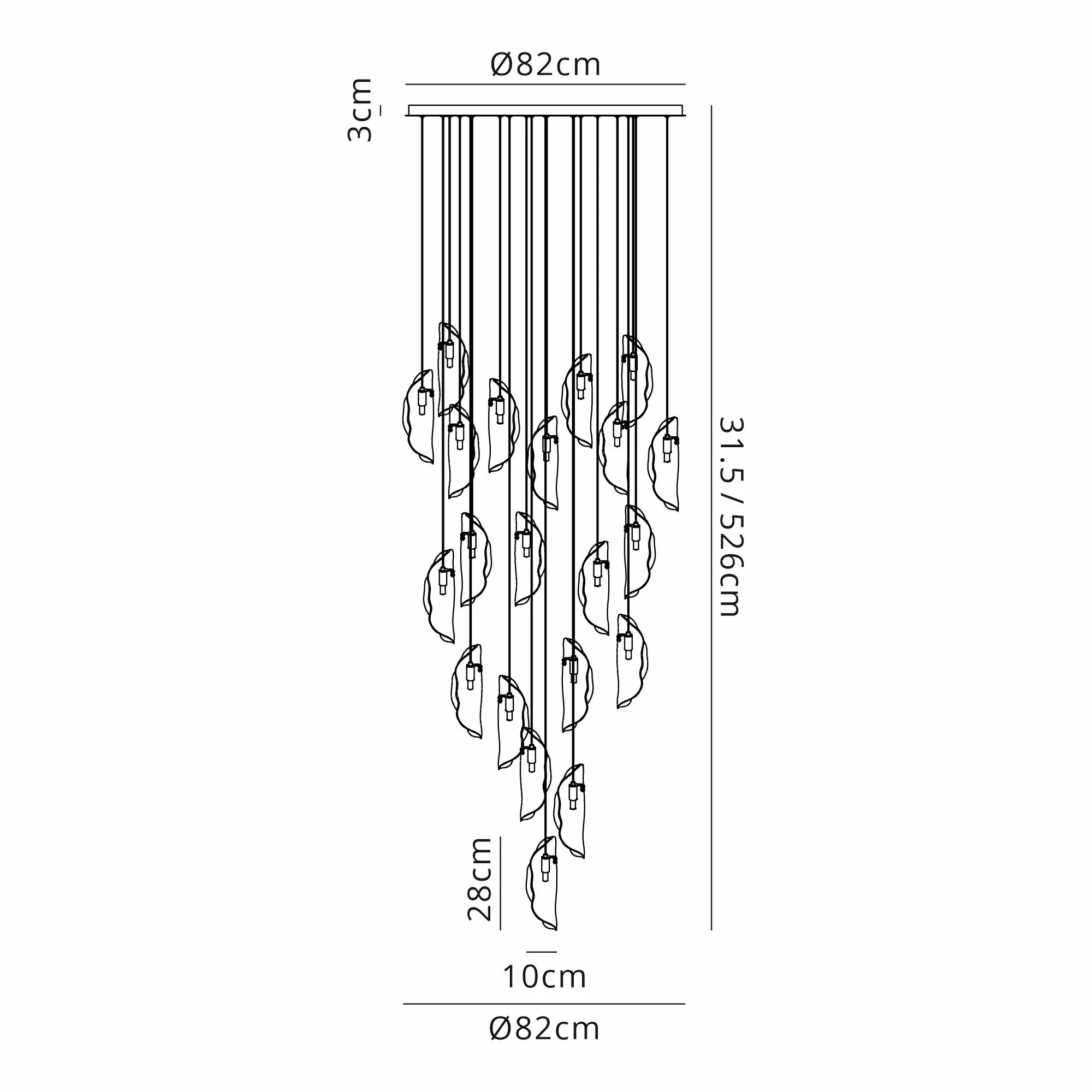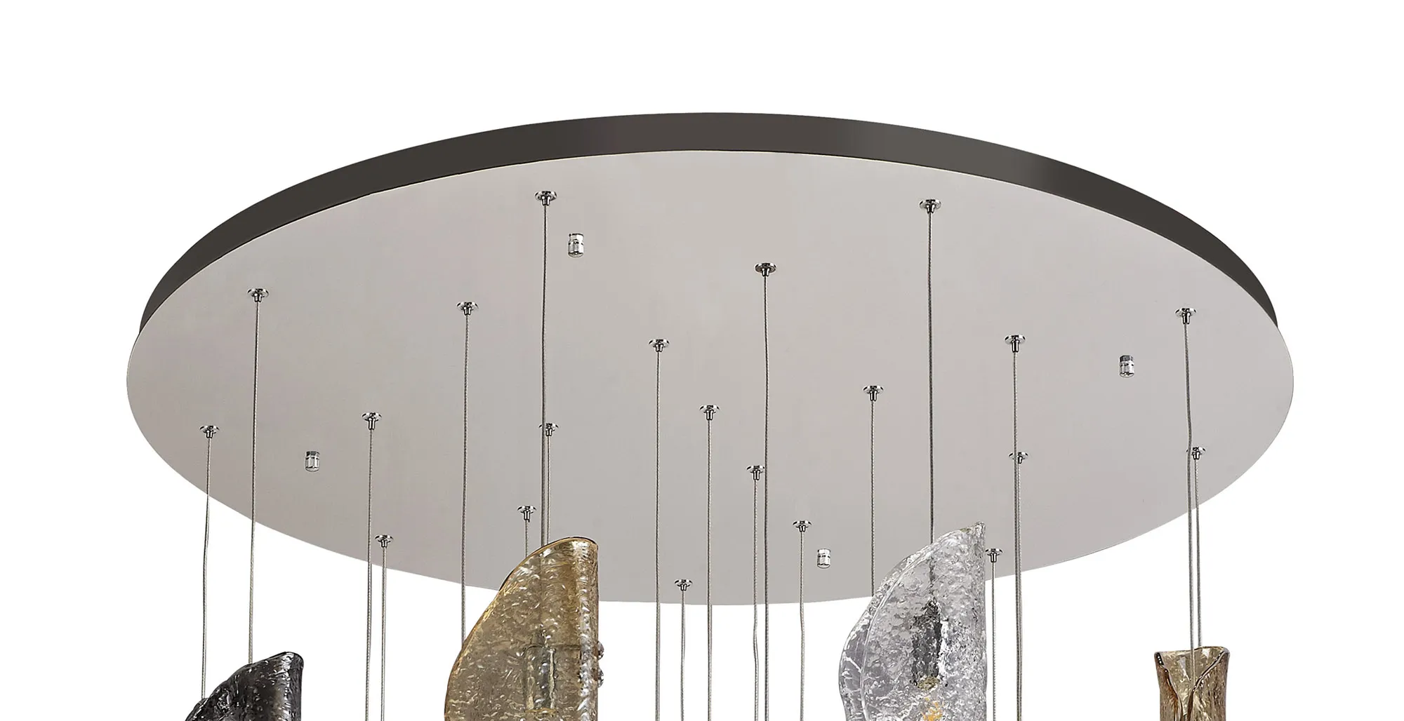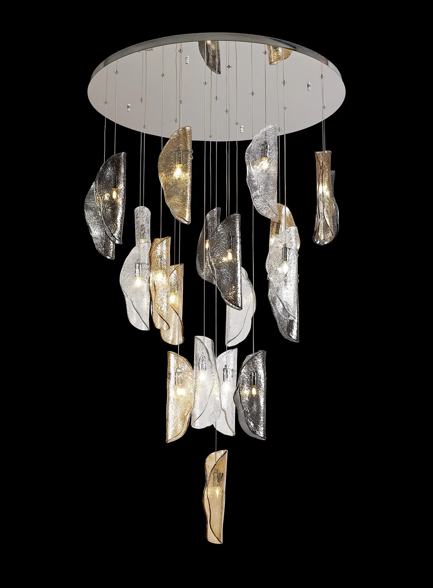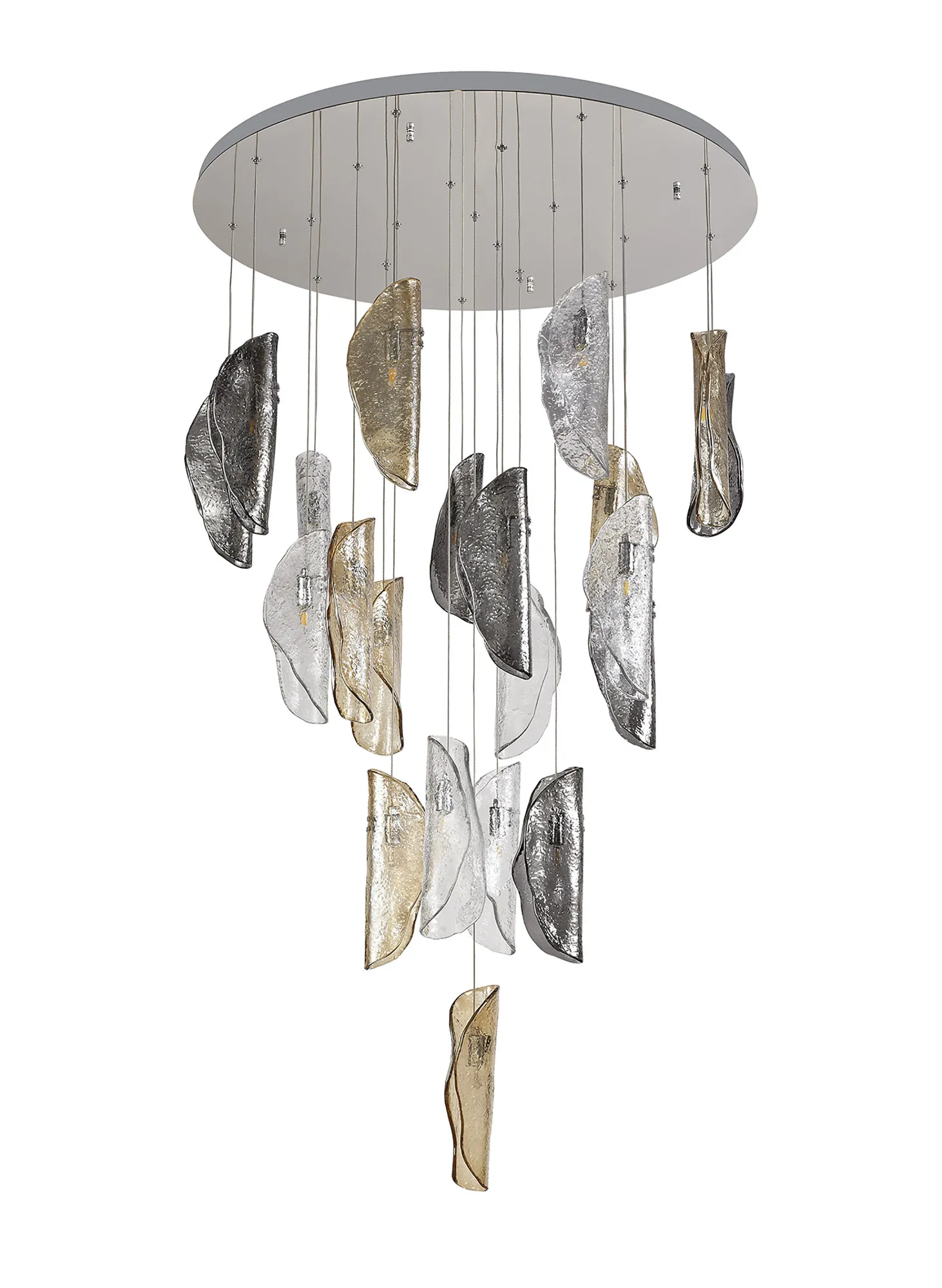 Canterbury 68cm Pendant 3m, 15 x G9, Polished Chrome / Clear & Amber & Smoked Glass, Item Weight: 17.5kg