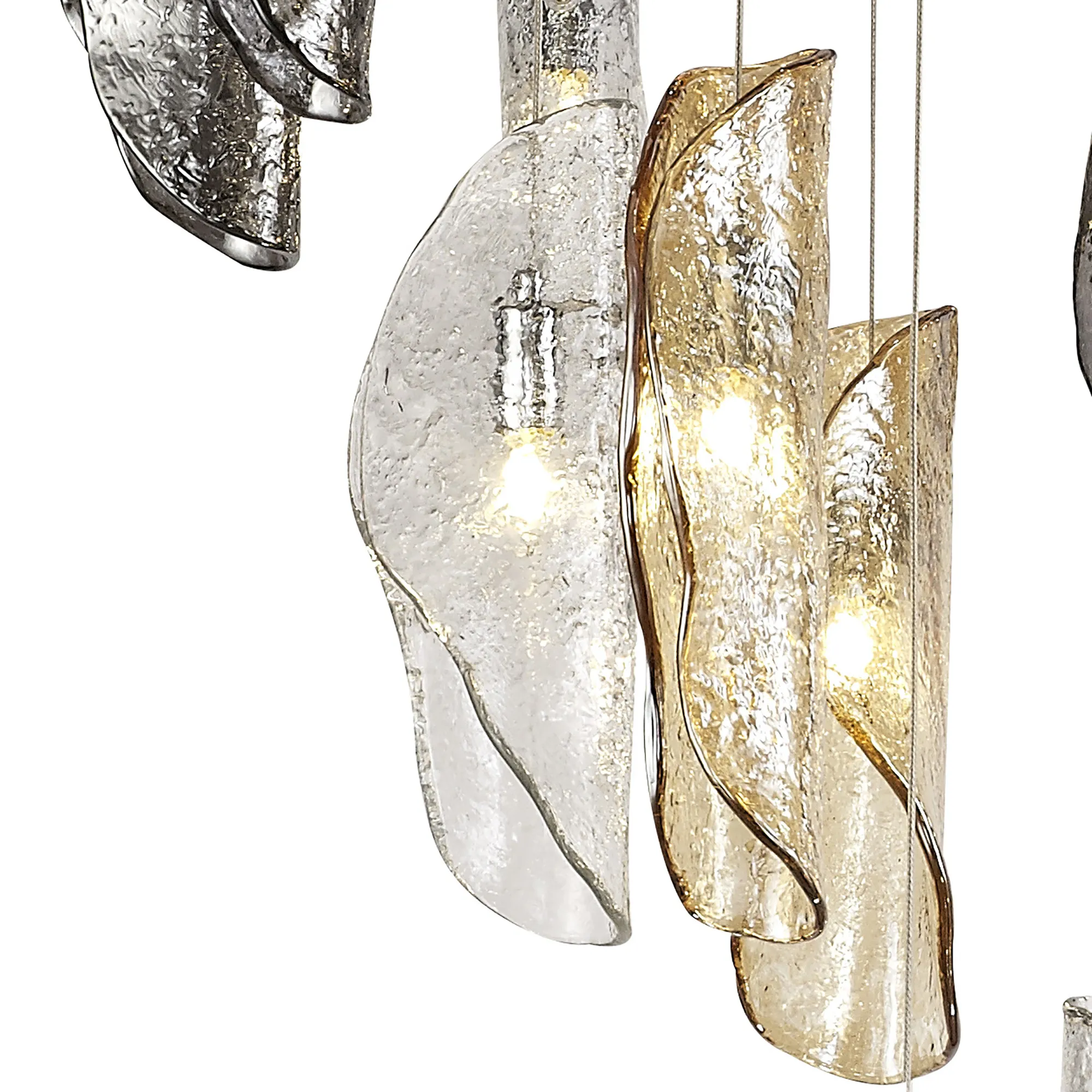 Canterbury Pendant 3m, 15 x G9, Polished Chrome/Clear & Amber & Smoked Glass