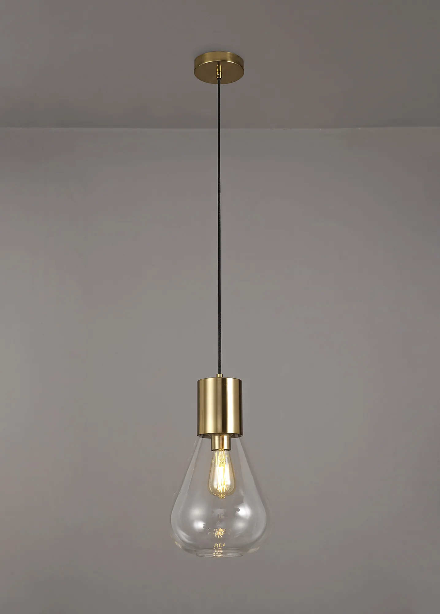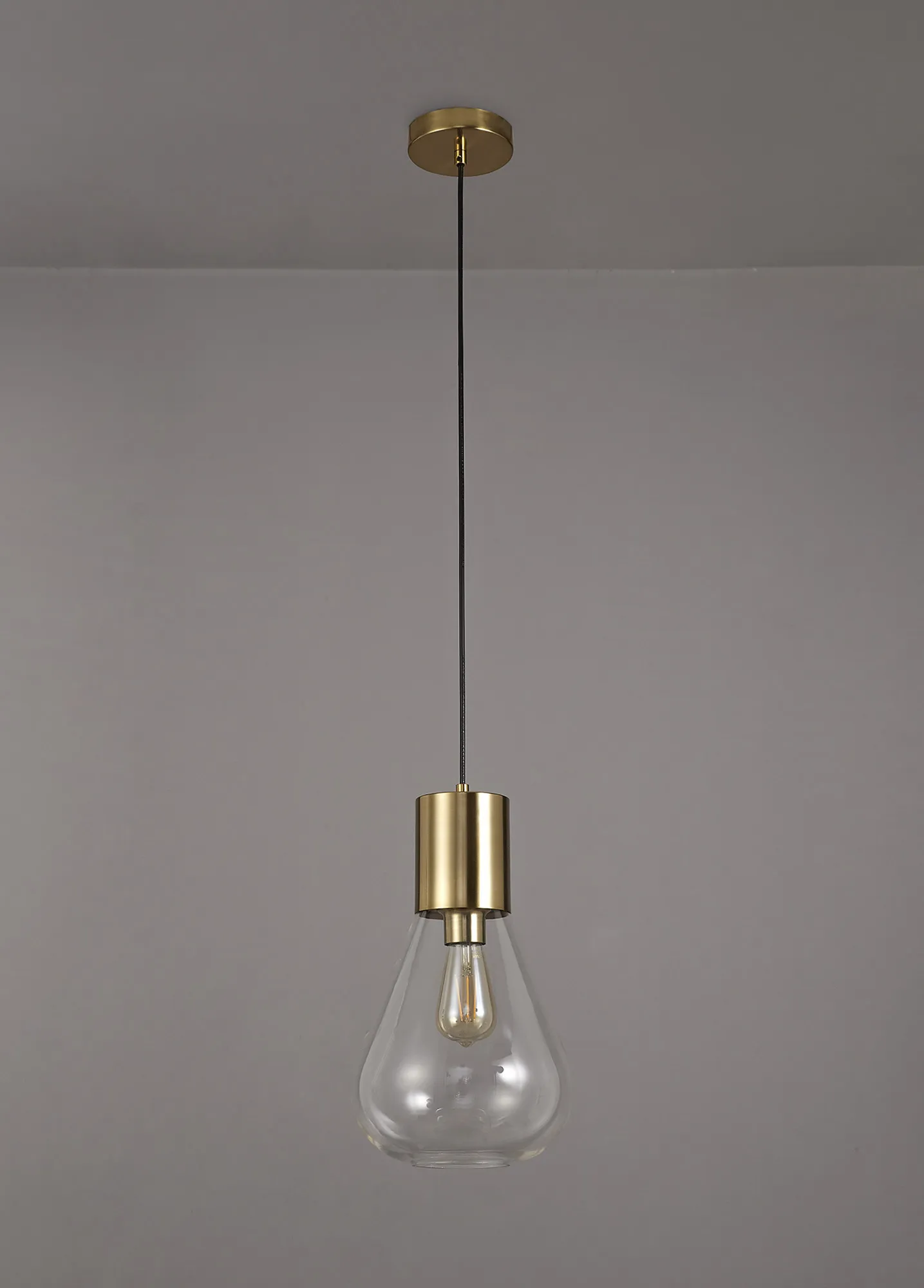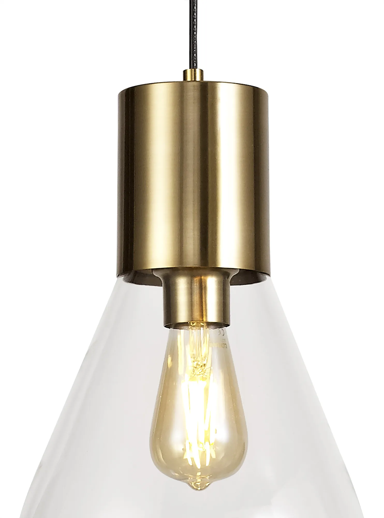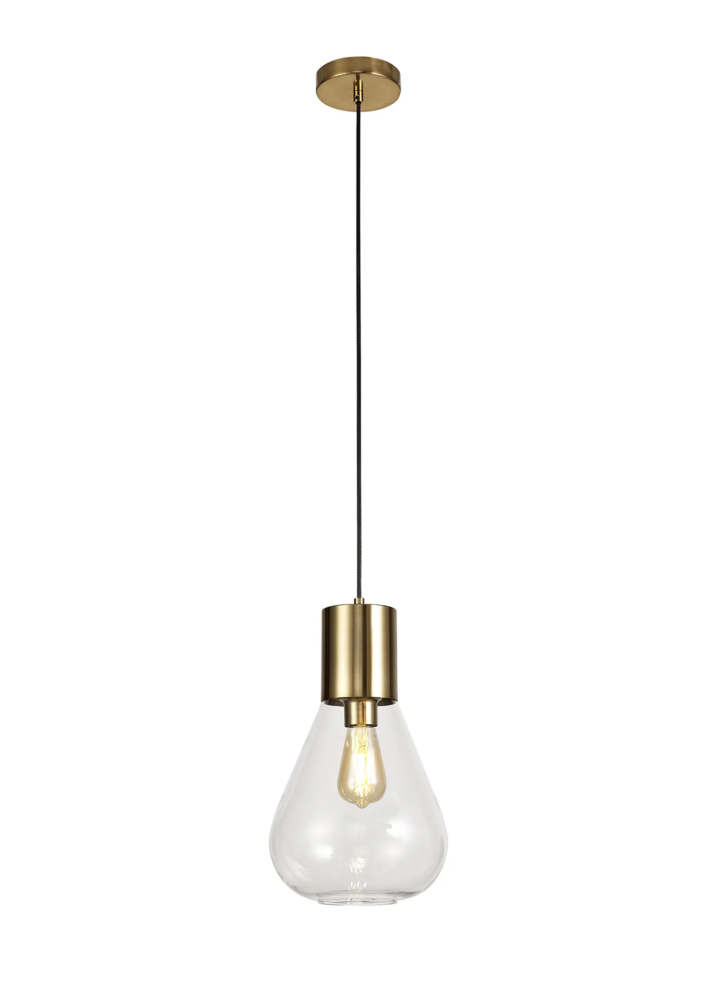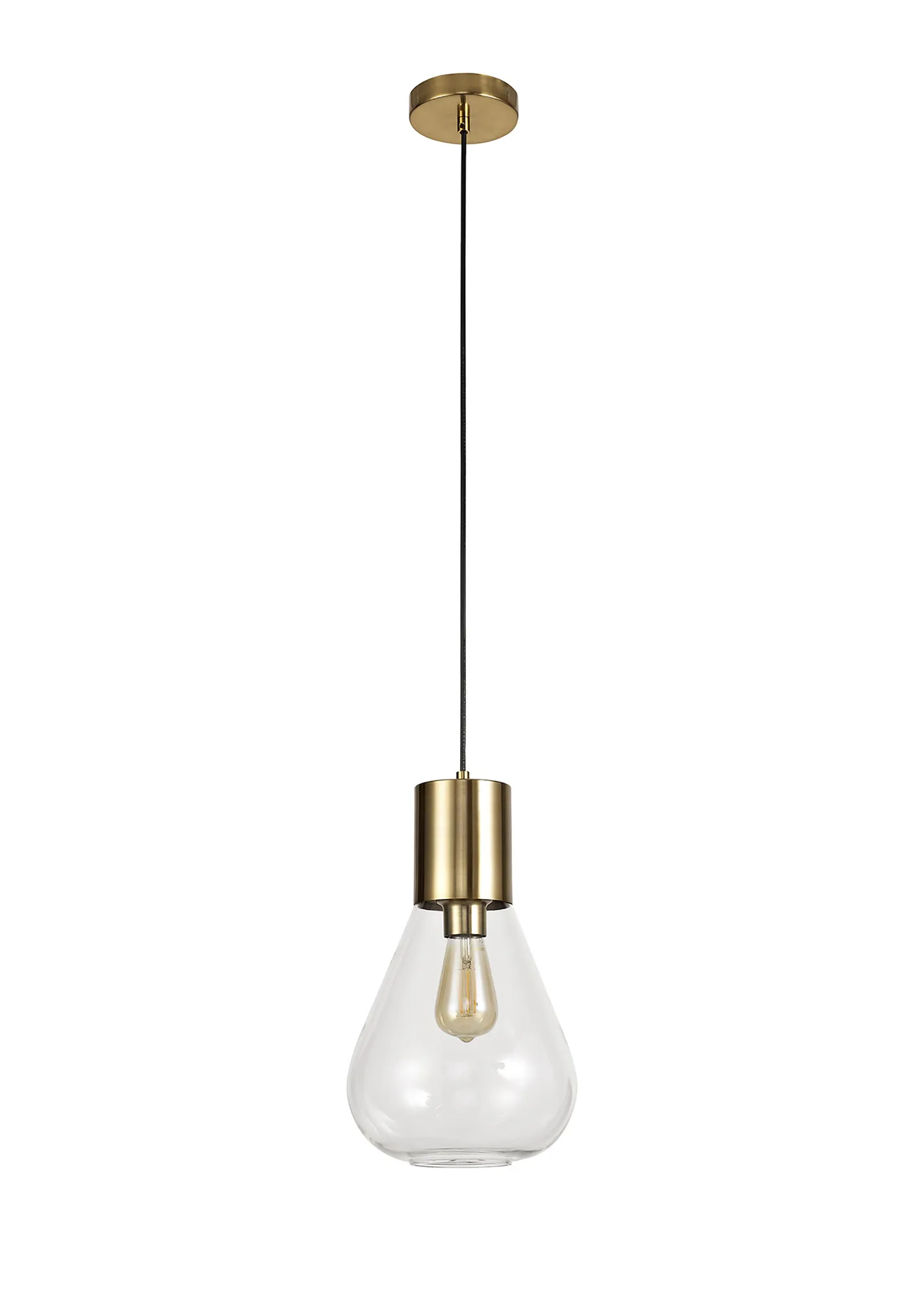 Clyde Ceiling Light With Narrow Glass, 1 x E27, Aged Brass/Clear