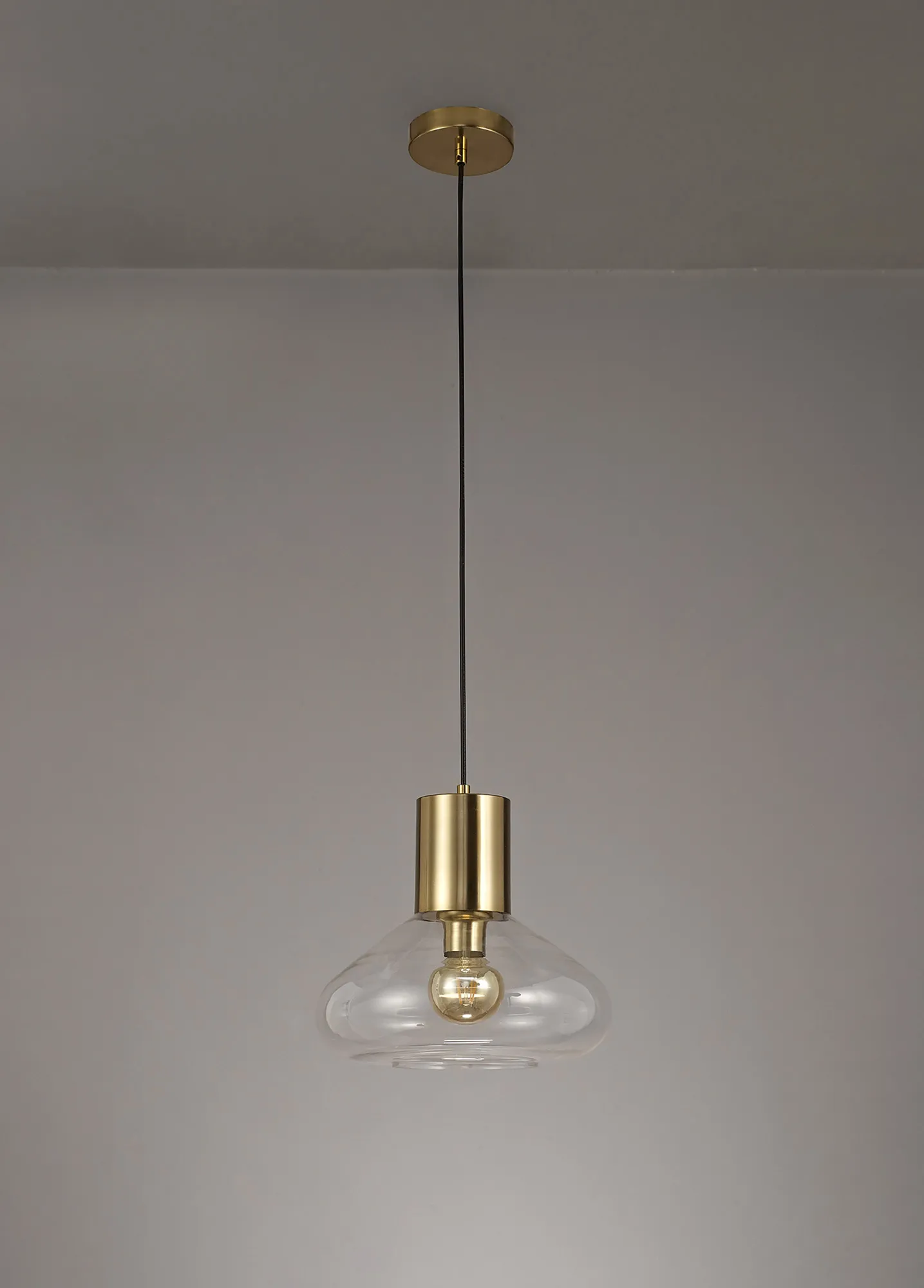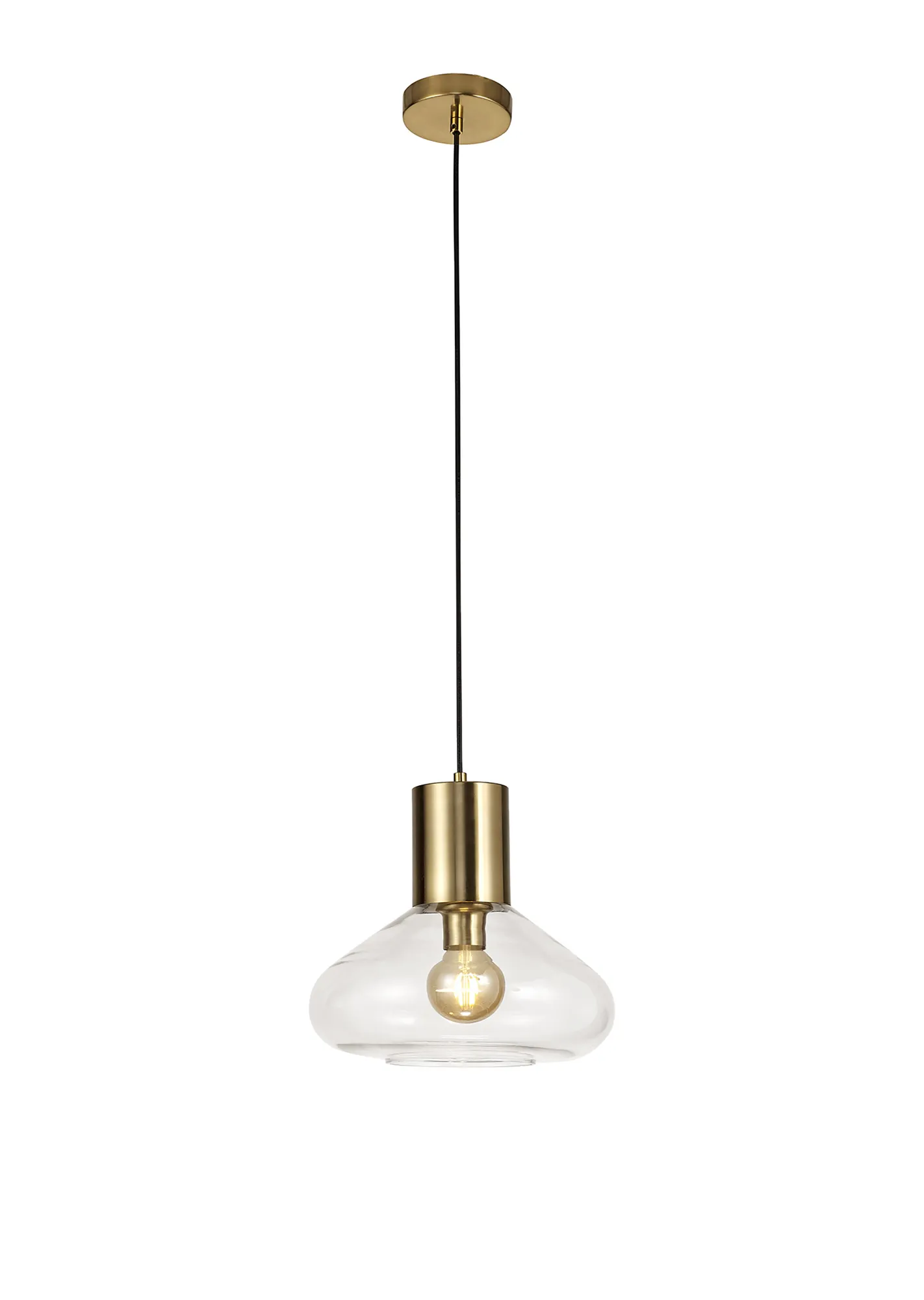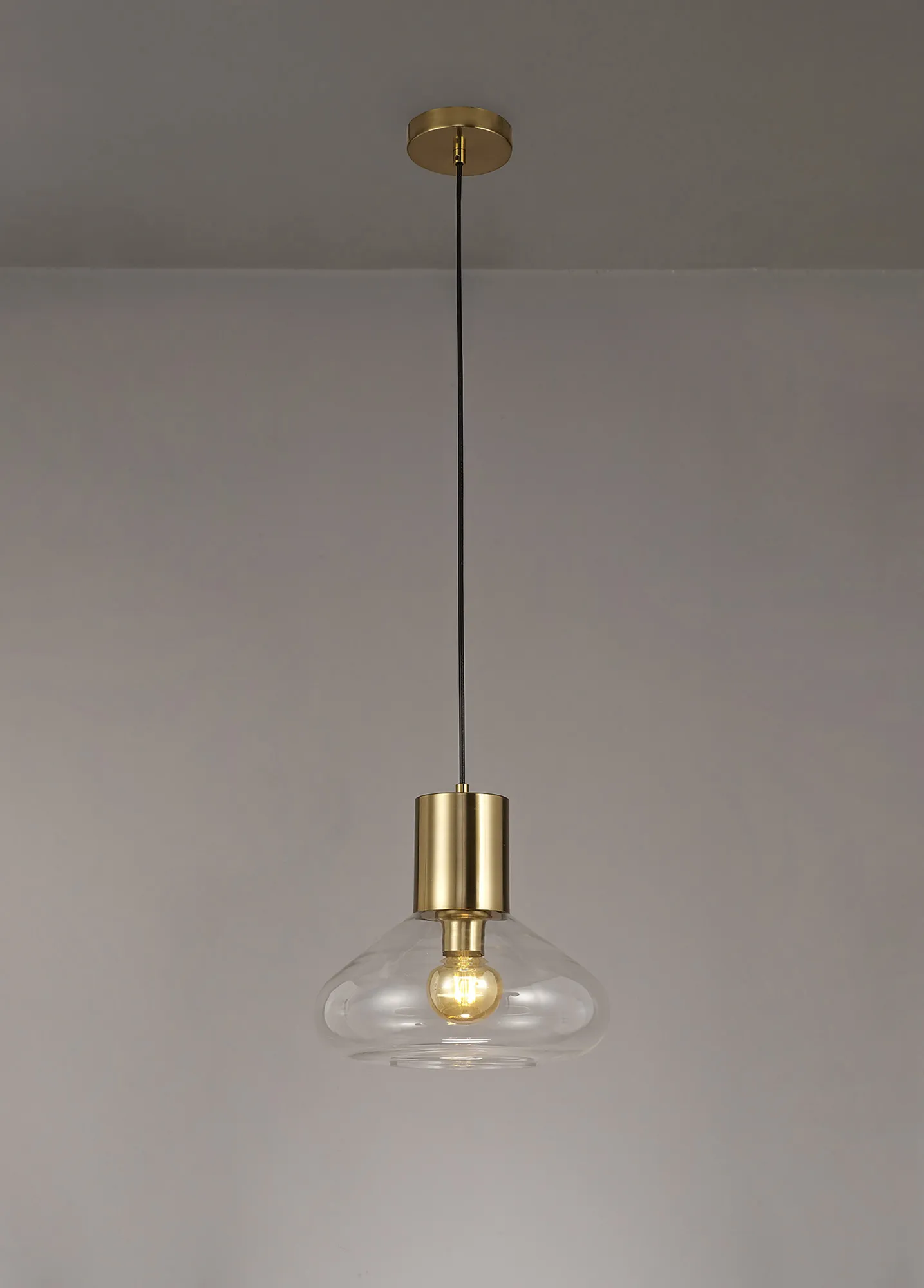 Clyde Ceiling Light With Narrow Glass, 1 x E27, Aged Brass/Clear