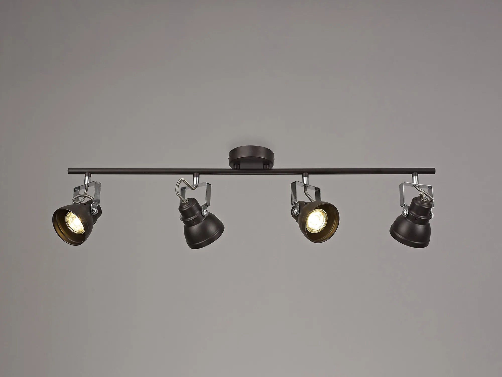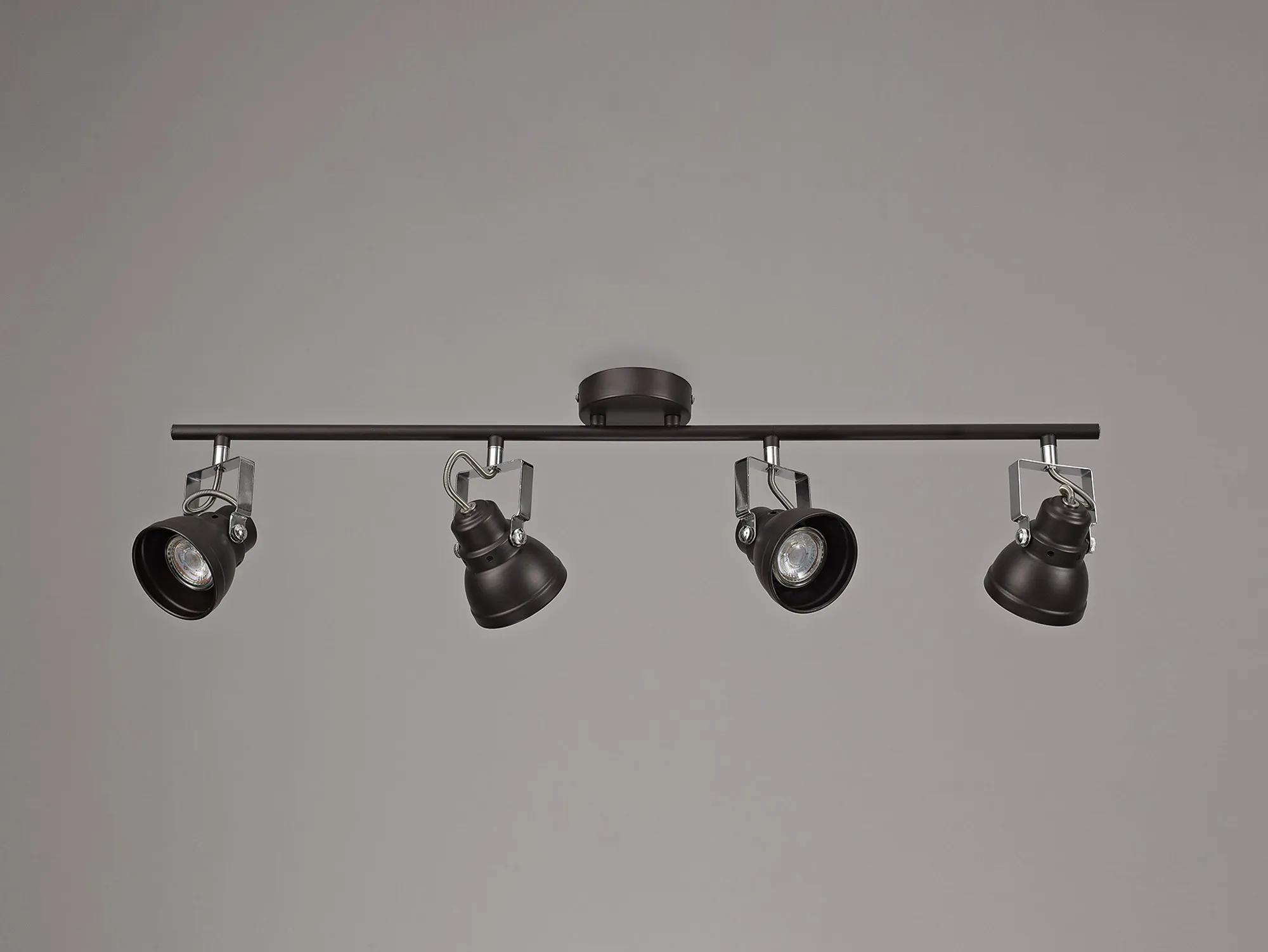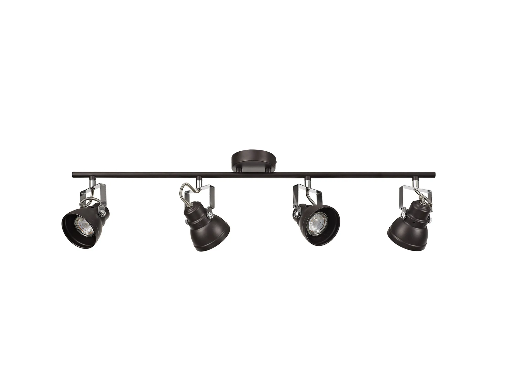 Stonefields is a collection of LED only GU10 spotlights that are designed in the image of classic stage lighting with the metal spotlights shaped like lampshades with an adjustable directionality. This depiction will boost the character of a room, building upon the theme or as a stand-alone attraction. The 3 light round fitting, 4 light bar and 1 light are all available in either a matt grey and chrome or oiled bronze with chrome colour finish.
