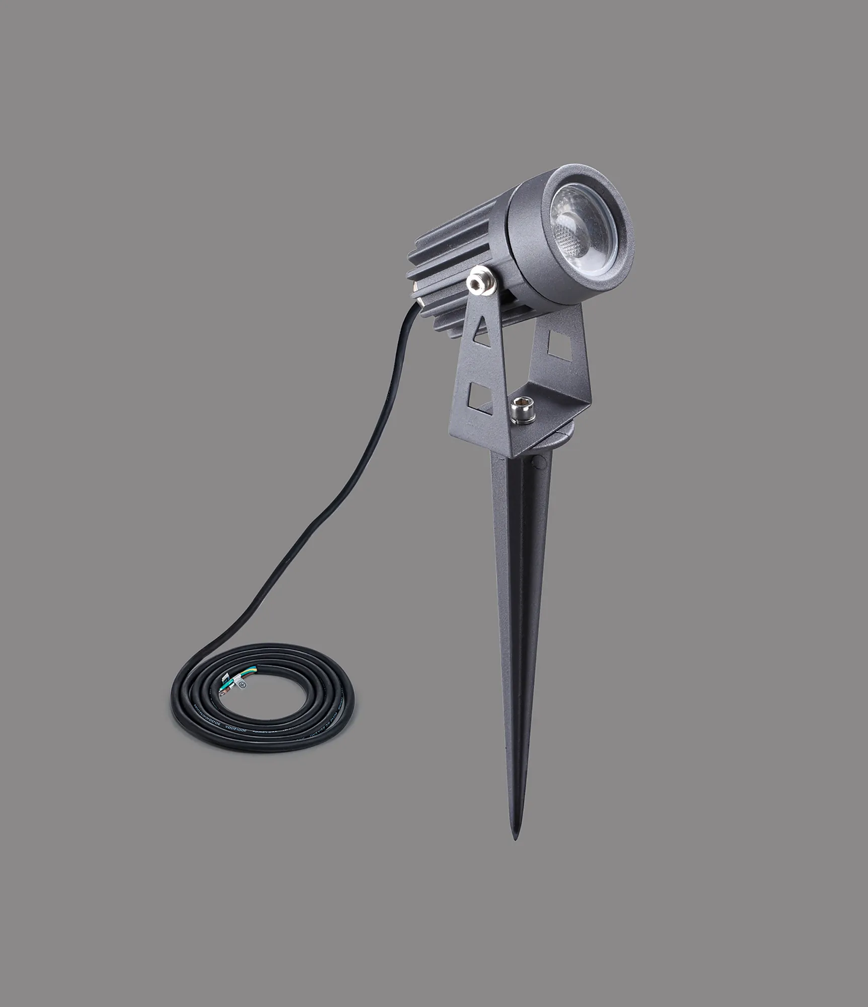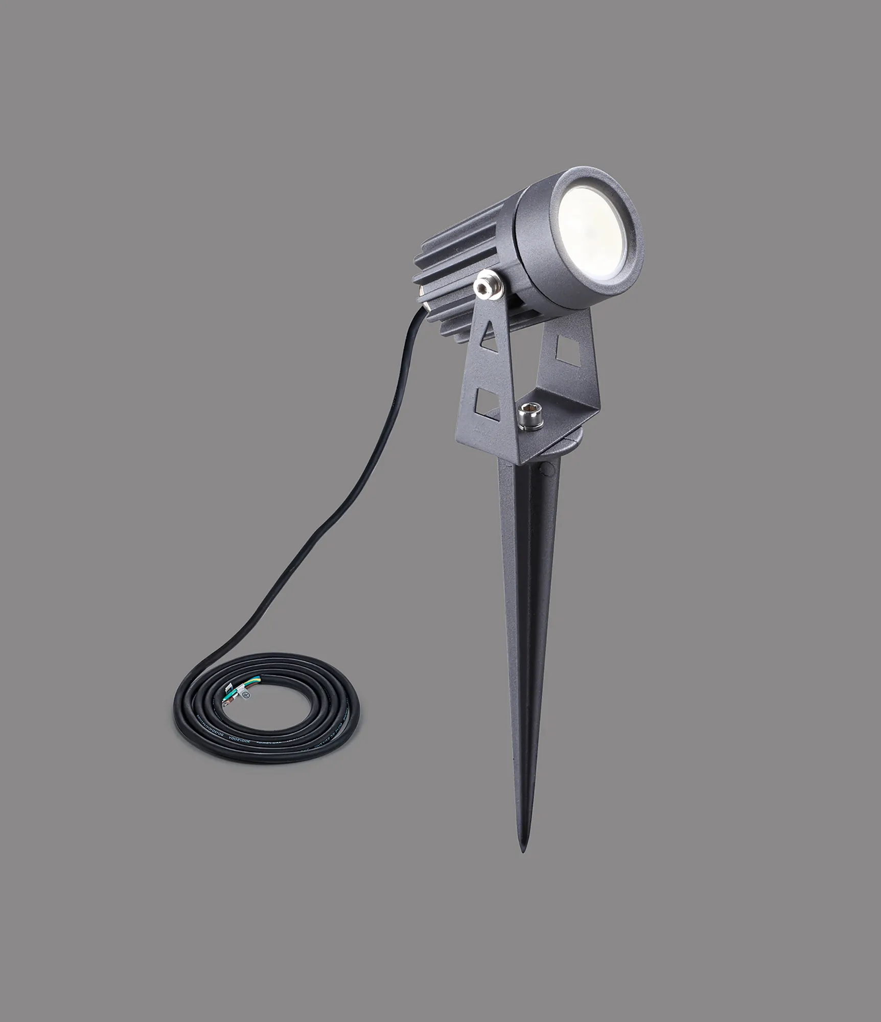 Herne Spike/Wall Light, 7W LED, 3000K, 30 Degree, IP65, Grey/Black, c/w 2m Cable