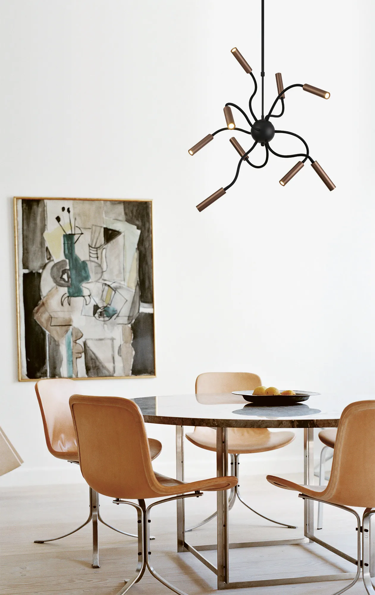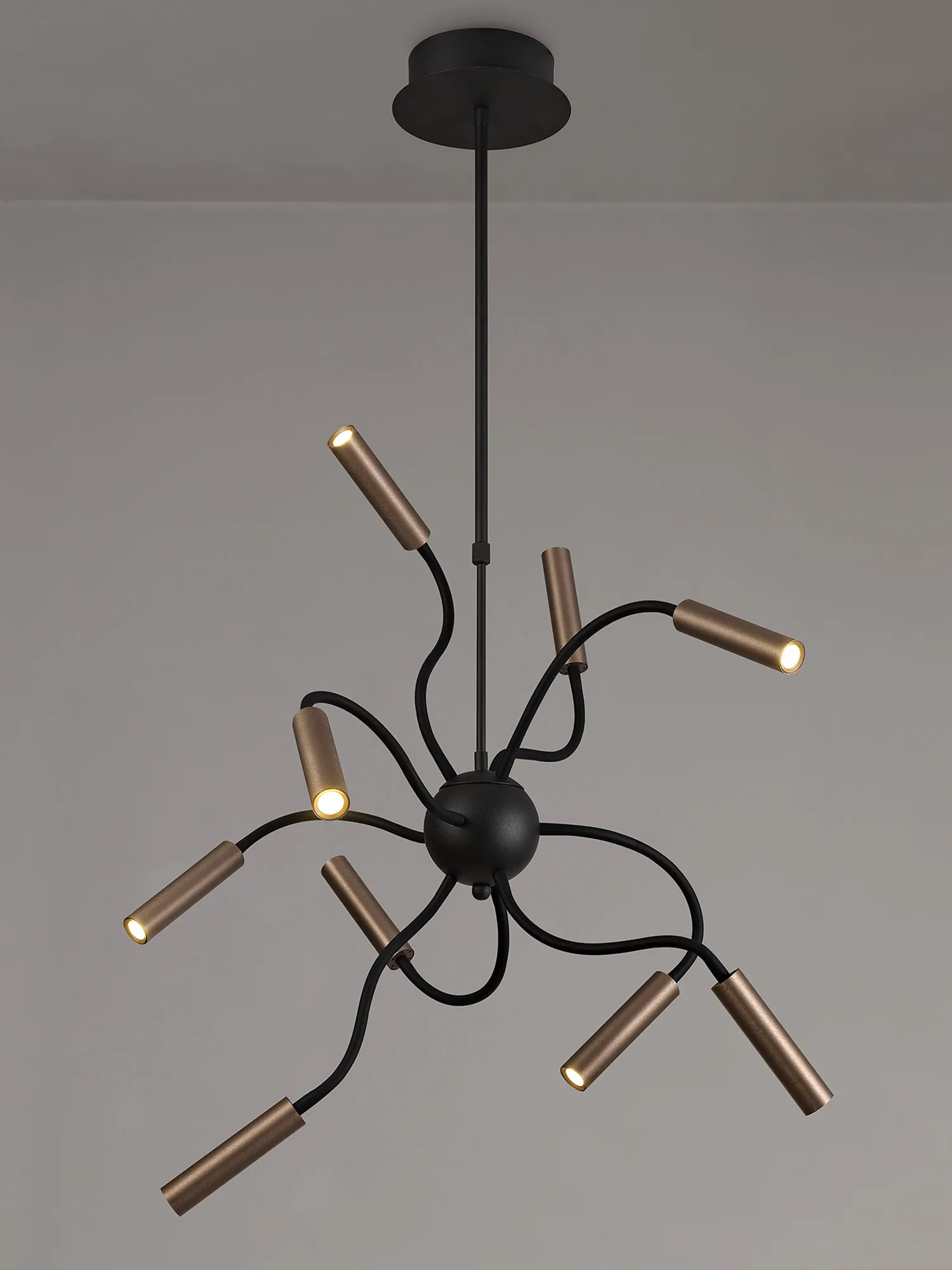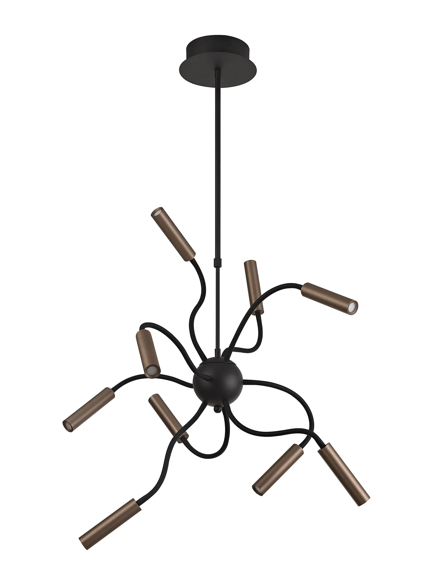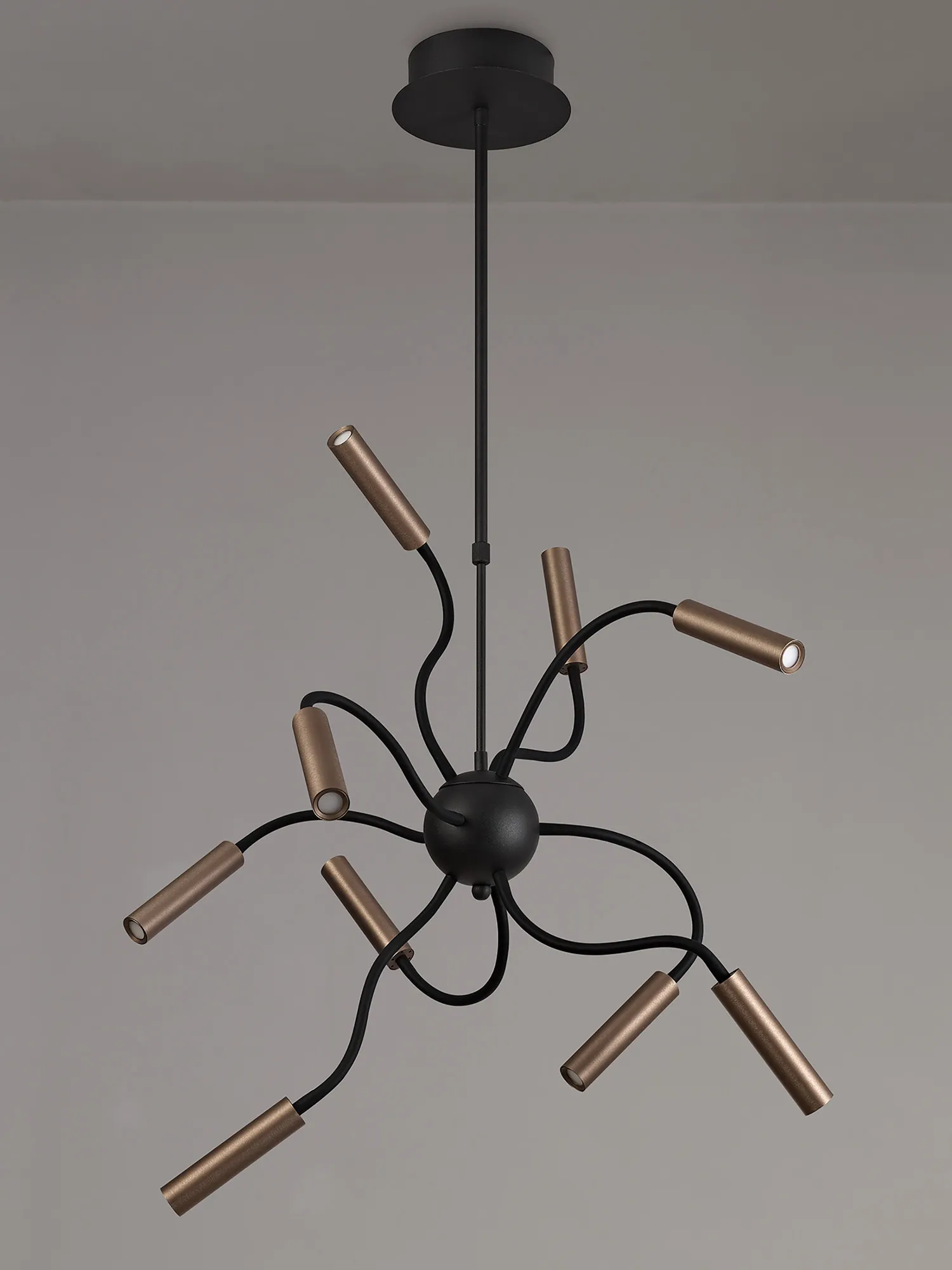 Ettrick Linear Pendant, 8 Light Adjustable Arms, 8 x 4W LED Dimmable, 3000K, Black/Satin Copper