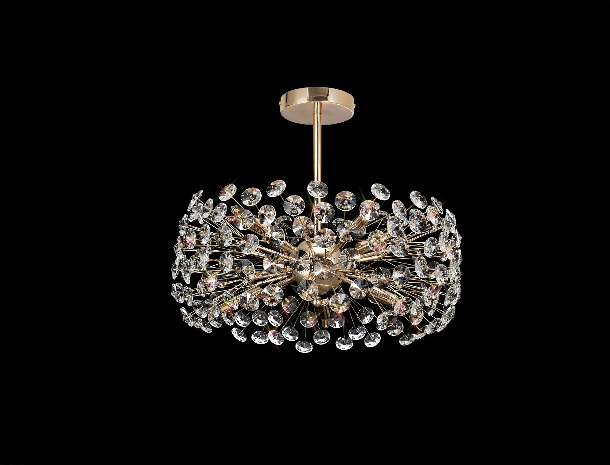 This collection is a beautifully comprehensive lighting range that combines elegance with modern design. Available in polished chrome, French gold, and satin black finishes, each piece features slim, angular stems arranged in an artful, erratic fashion to form a captivating cluster of clear crystal discs. These stems extend from a central framework—available in round, tiered, and oblong linear pendant forms—creating a striking structure around G9 lamp holders. As light passes through the facetted crystal, it refracts beautifully, casting a stunning array of sublime spectrums throughout the space. Already a hugely popular collection, Picton has now been expanded to include an even wider variety of lighting options. In addition to pendants, the range features wall lights, table and floor lamps, ceiling fixtures, and show-stopping spherical pendants with diameters of up to 1.5 metres. With its luxurious finishes, sparkling crystal details, and broad selection of configurations, the Picton range offers dramatic, statement lighting for any interior.