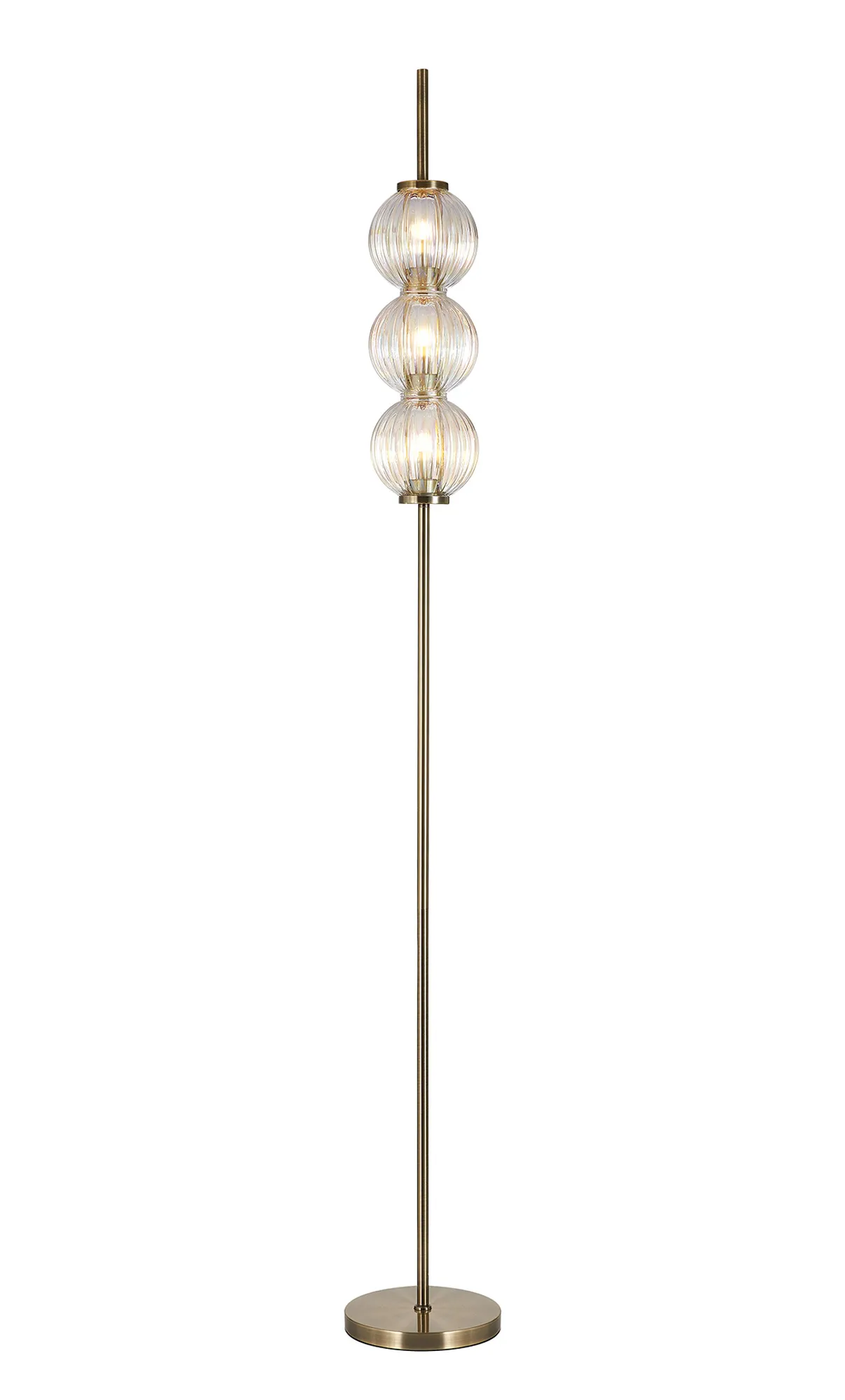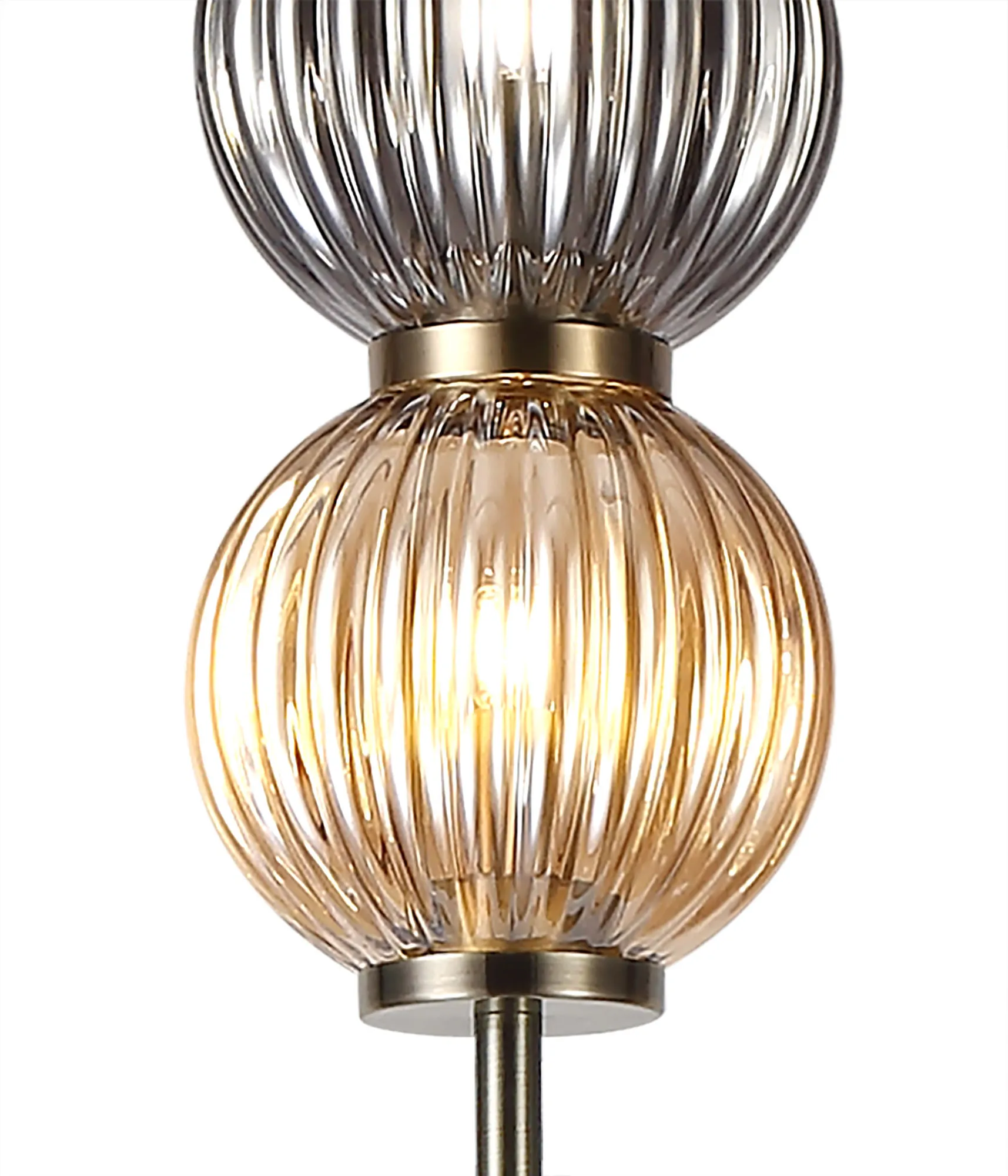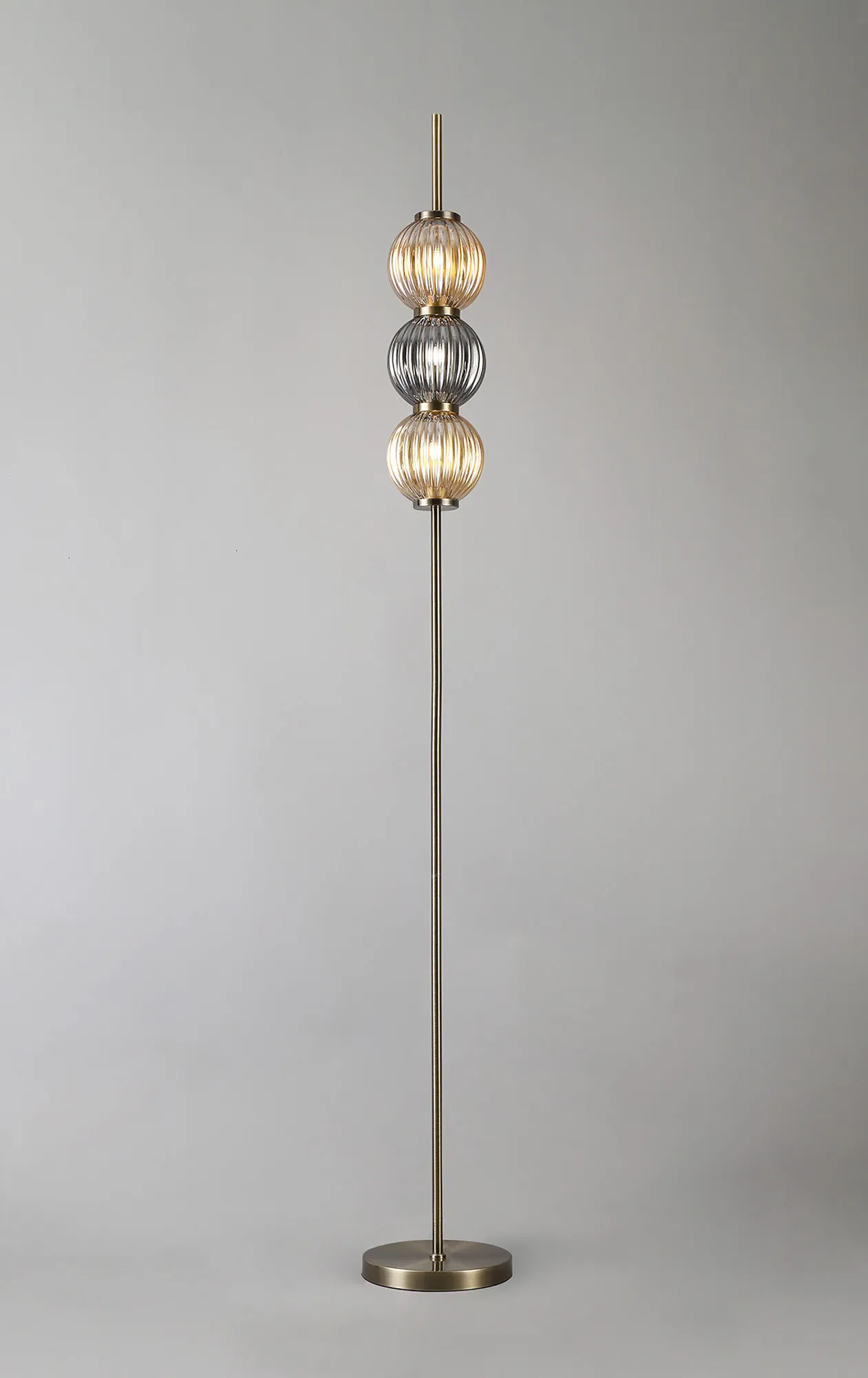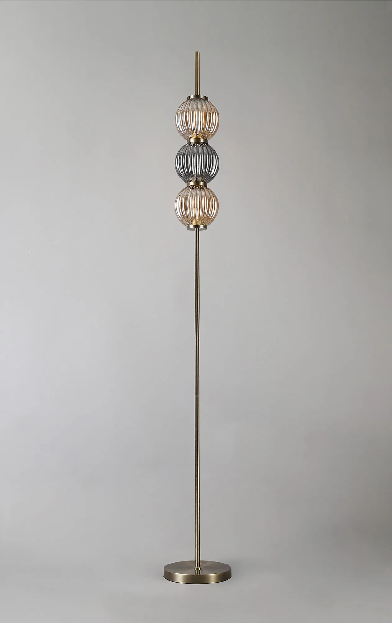 OTHER Leigh Floor Lamp, 3 x G9, Antique Brass/Smoked & Amber Glass