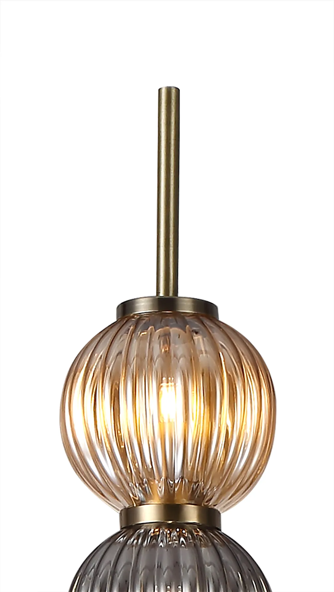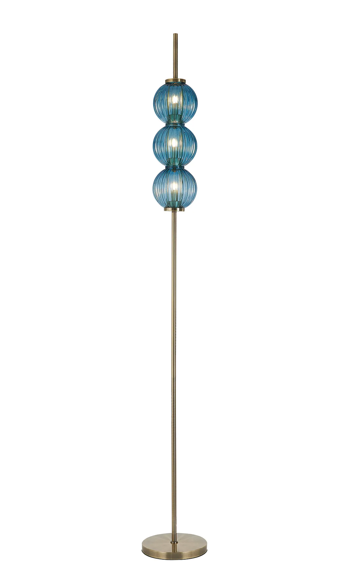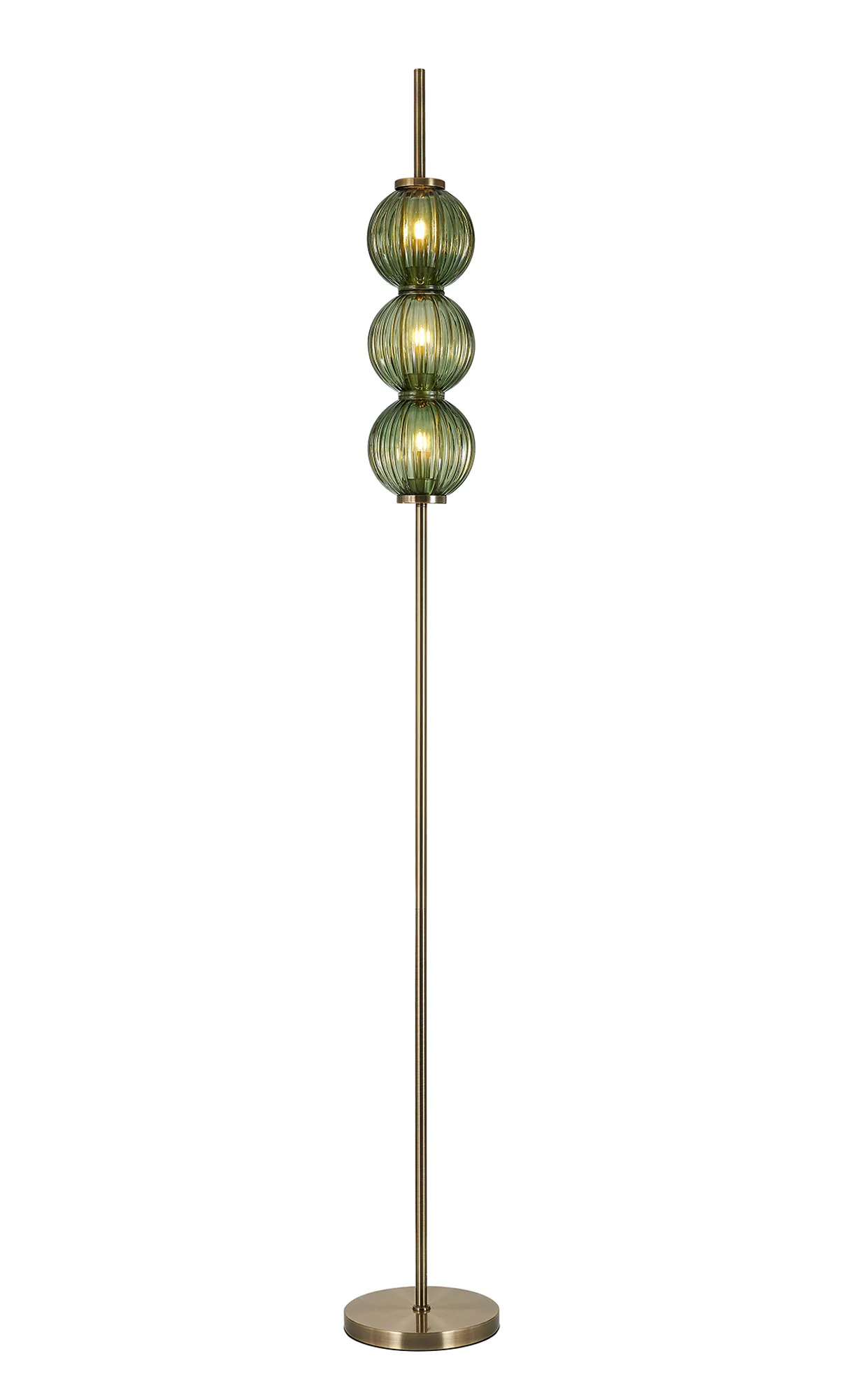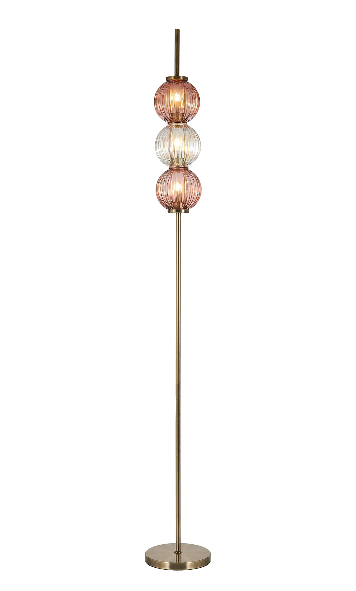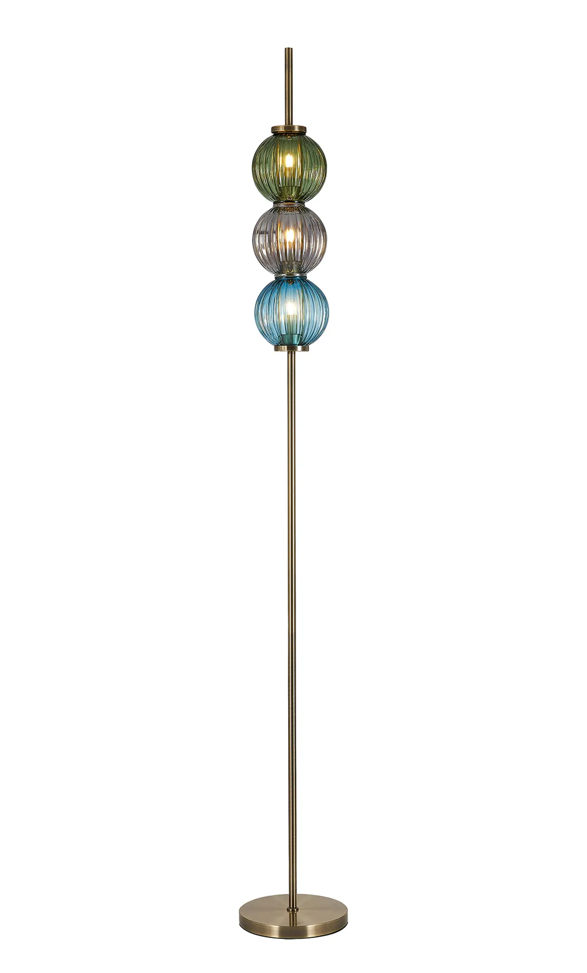 OTHER Leigh Floor Lamp, 3 x G9, Antique Brass/Smoked & Amber Glass
