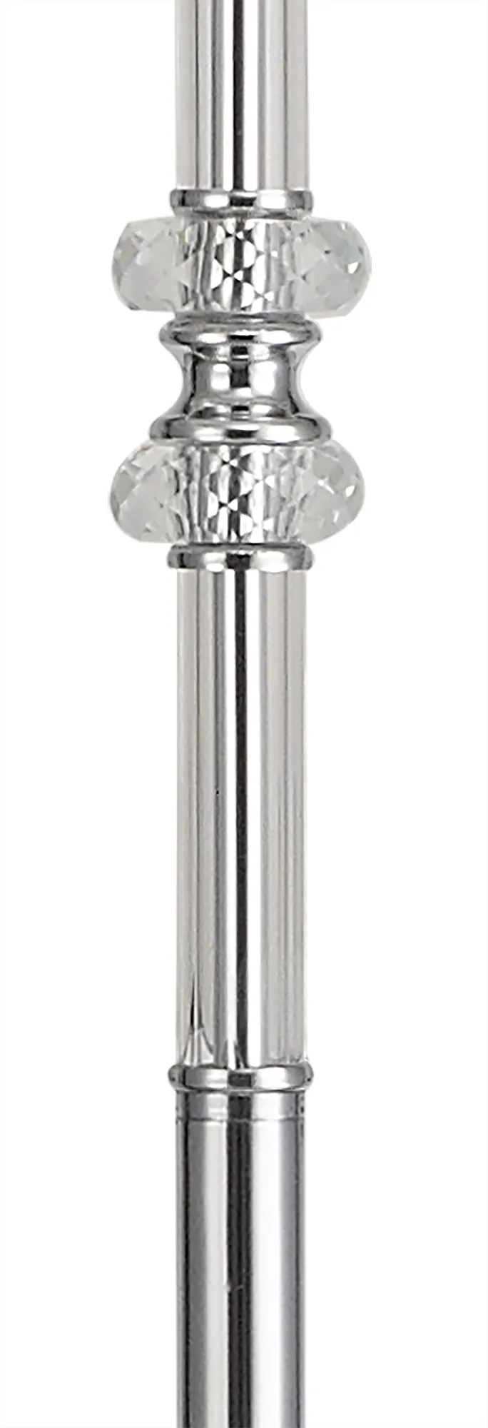 Our designers have taken a classic chandelier design and replaced traditional components with more specialised modern parts to present a more contemporary collection. Motu's standard metal arms have been swapped with clear glass which are each draped with high quality clear crystal buttons and tear drops. Further strands of crystal buttons are draped along the centre column for further glamour. An originally cut crystal sconce sits beneath each lamp holder, with a smaller diameter but greater depth this piece is highly faceted for even more spectral arrays. The polished chrome pendants are available in five sizes ranging from a four light to a spectacular three tier light. Motu also now includes two table and floor lamps to accompany the complementing wall lamps.