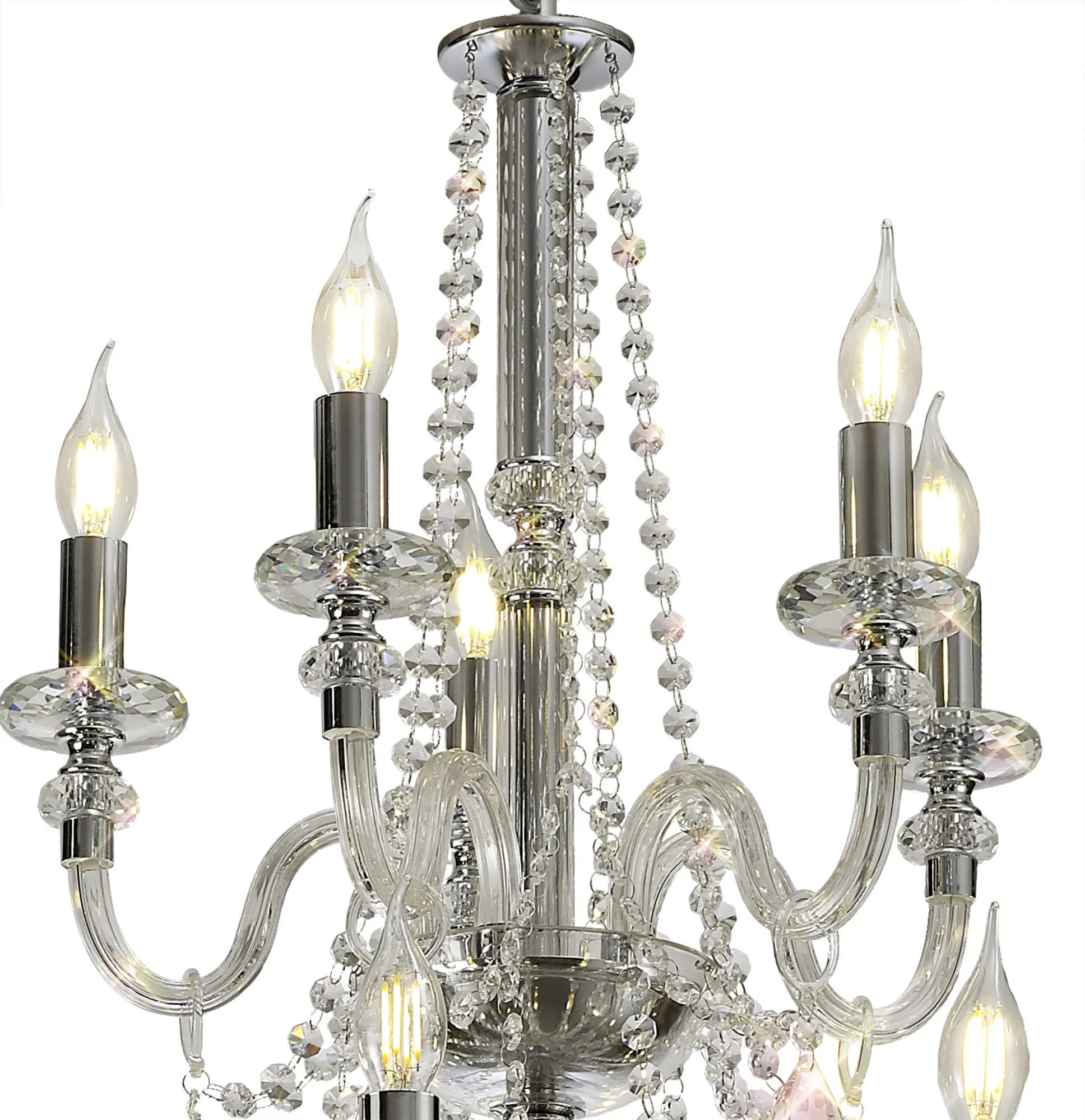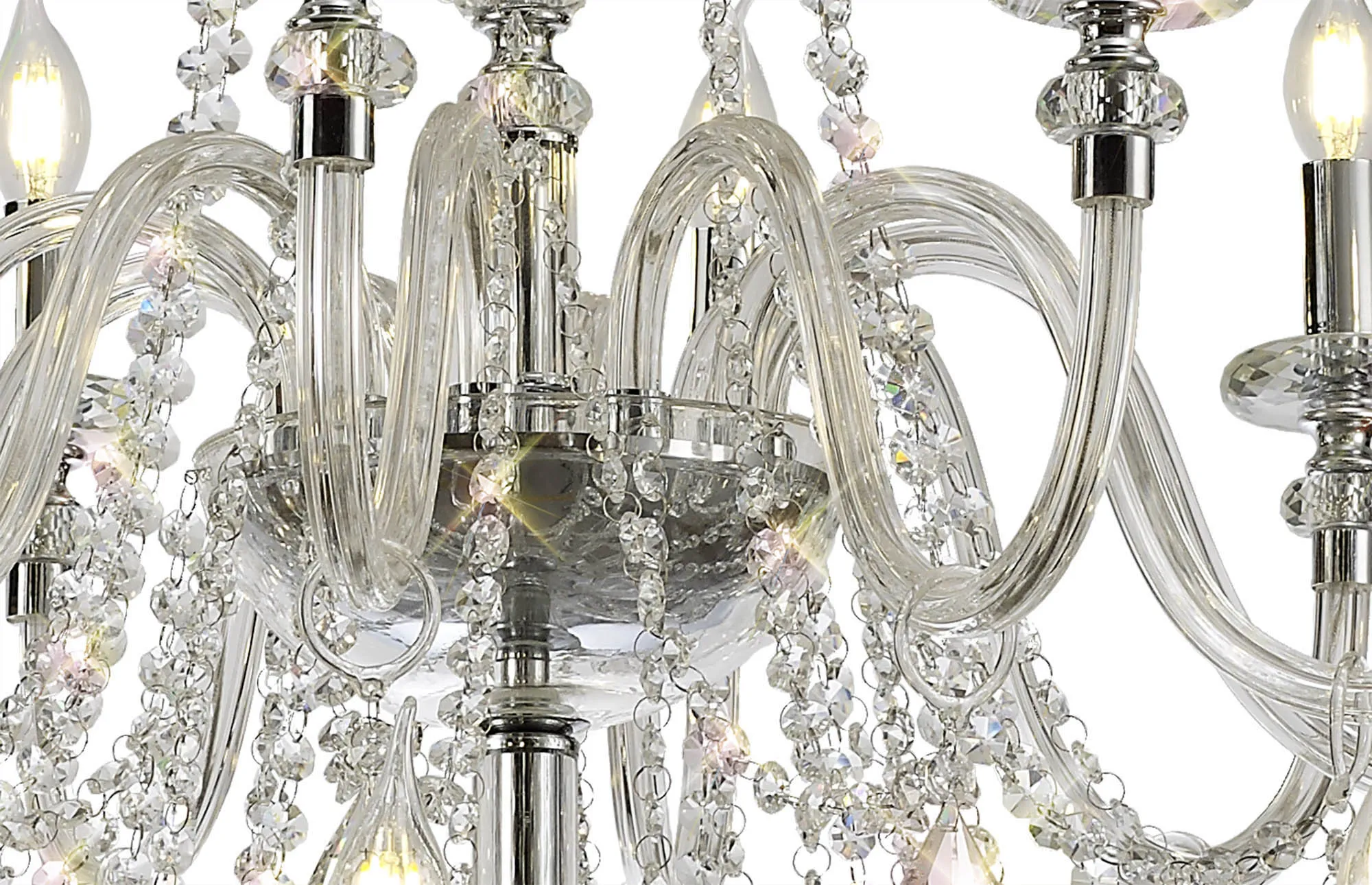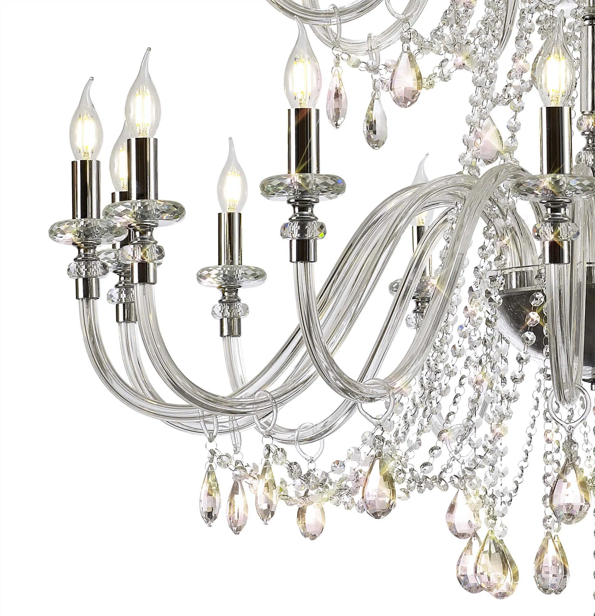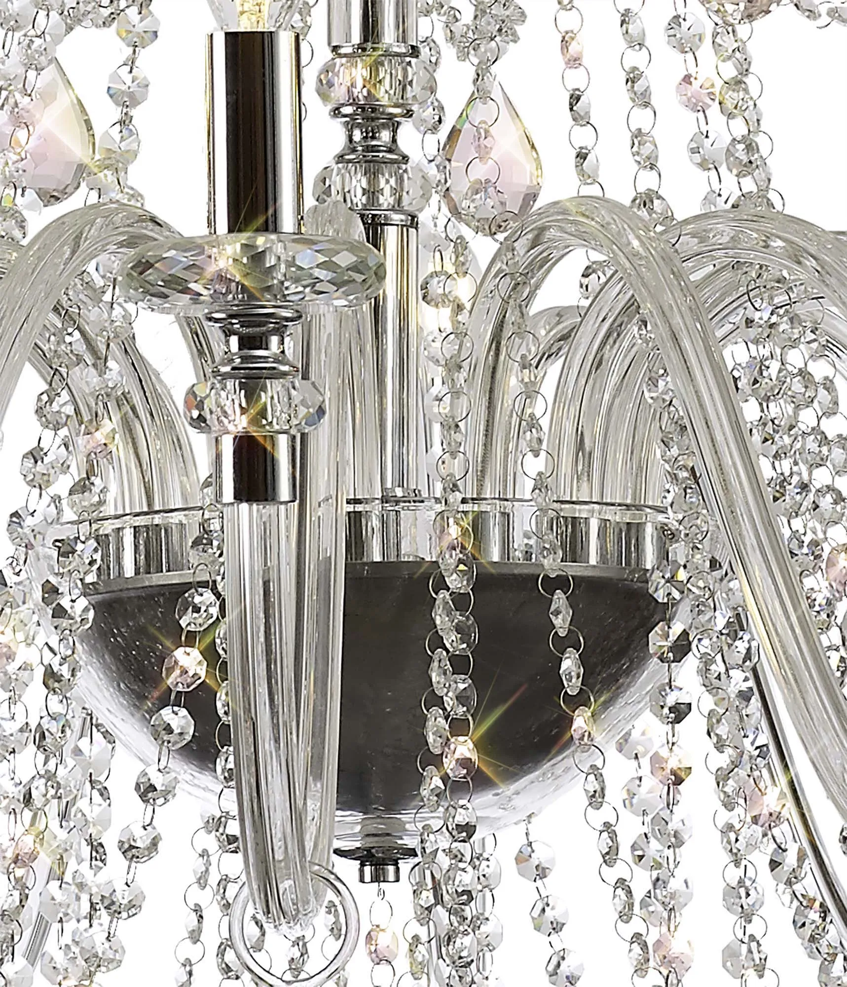 Motu Chandelier Pendant, 12 x E14, Polished Chrome/Clear Glass/Crystal,