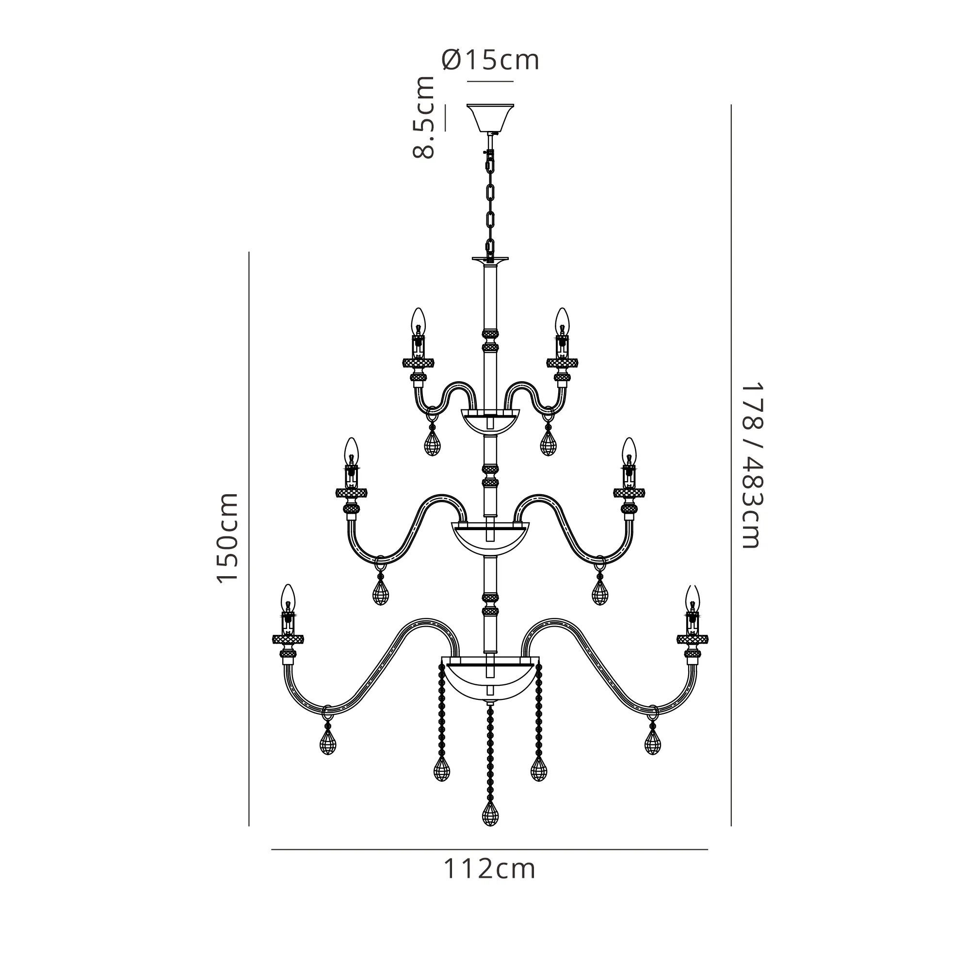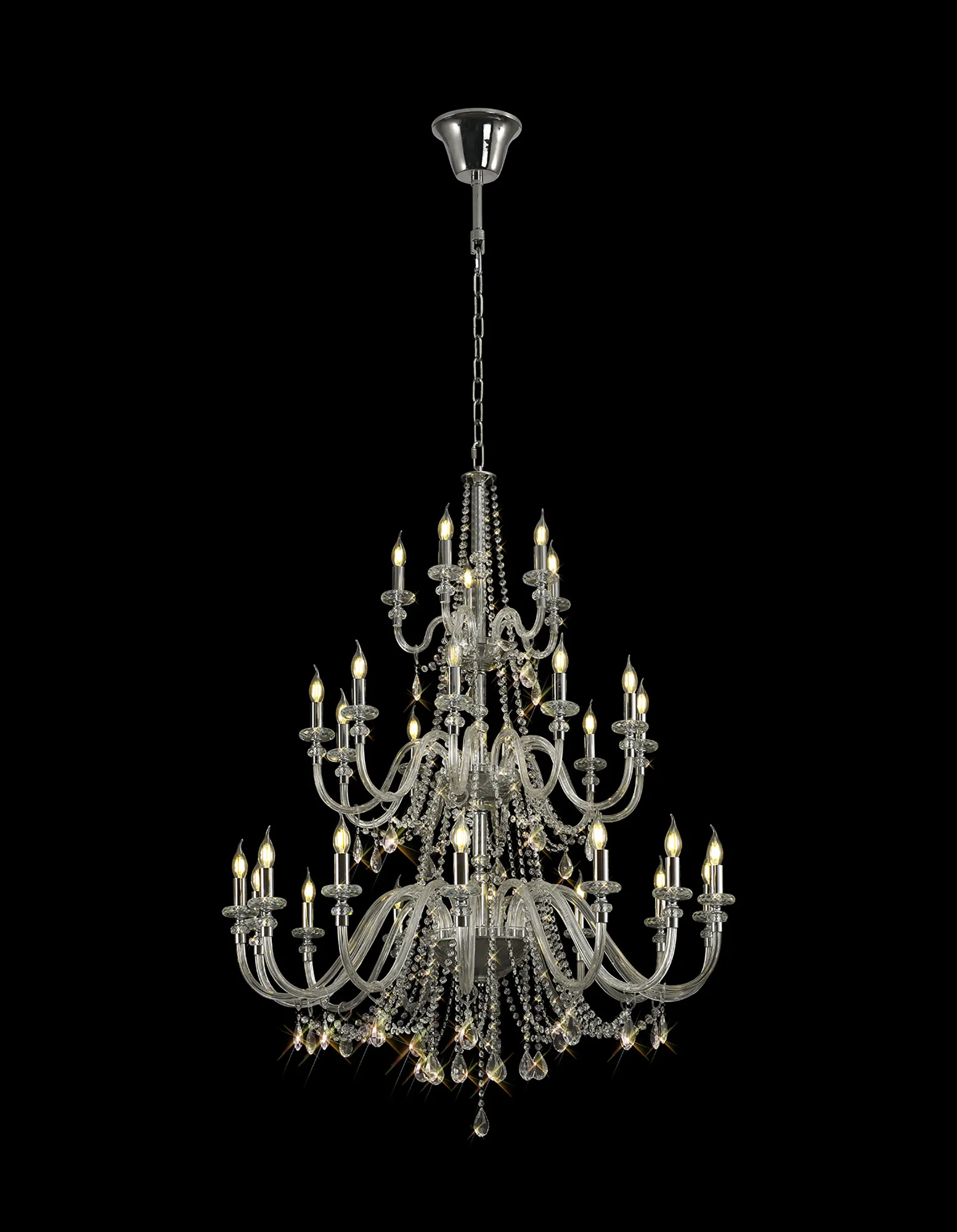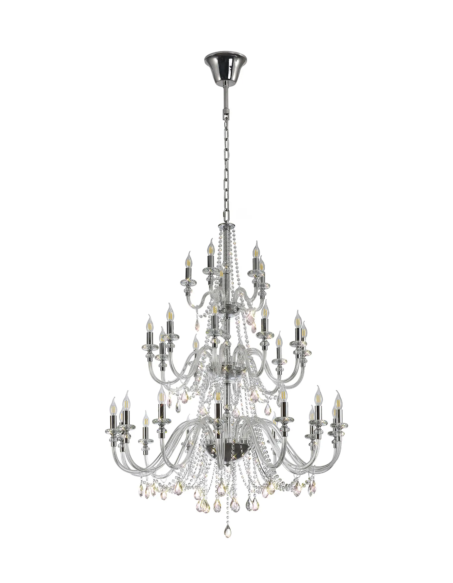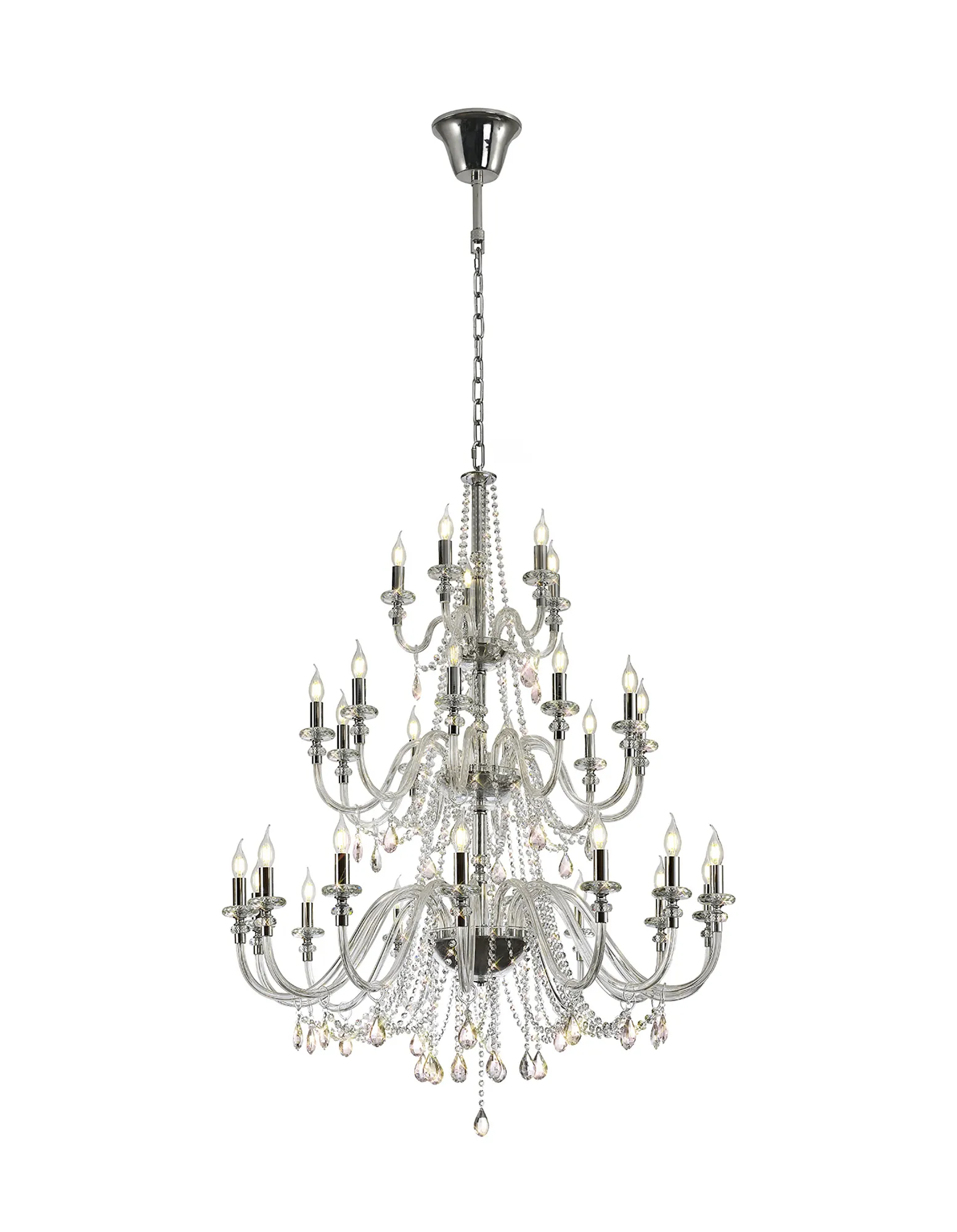 Motu Chandelier Pendant, 12 x E14, Polished Chrome/Clear Glass/Crystal,