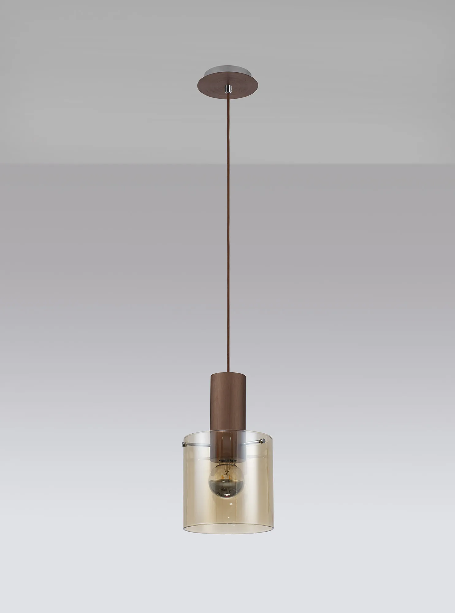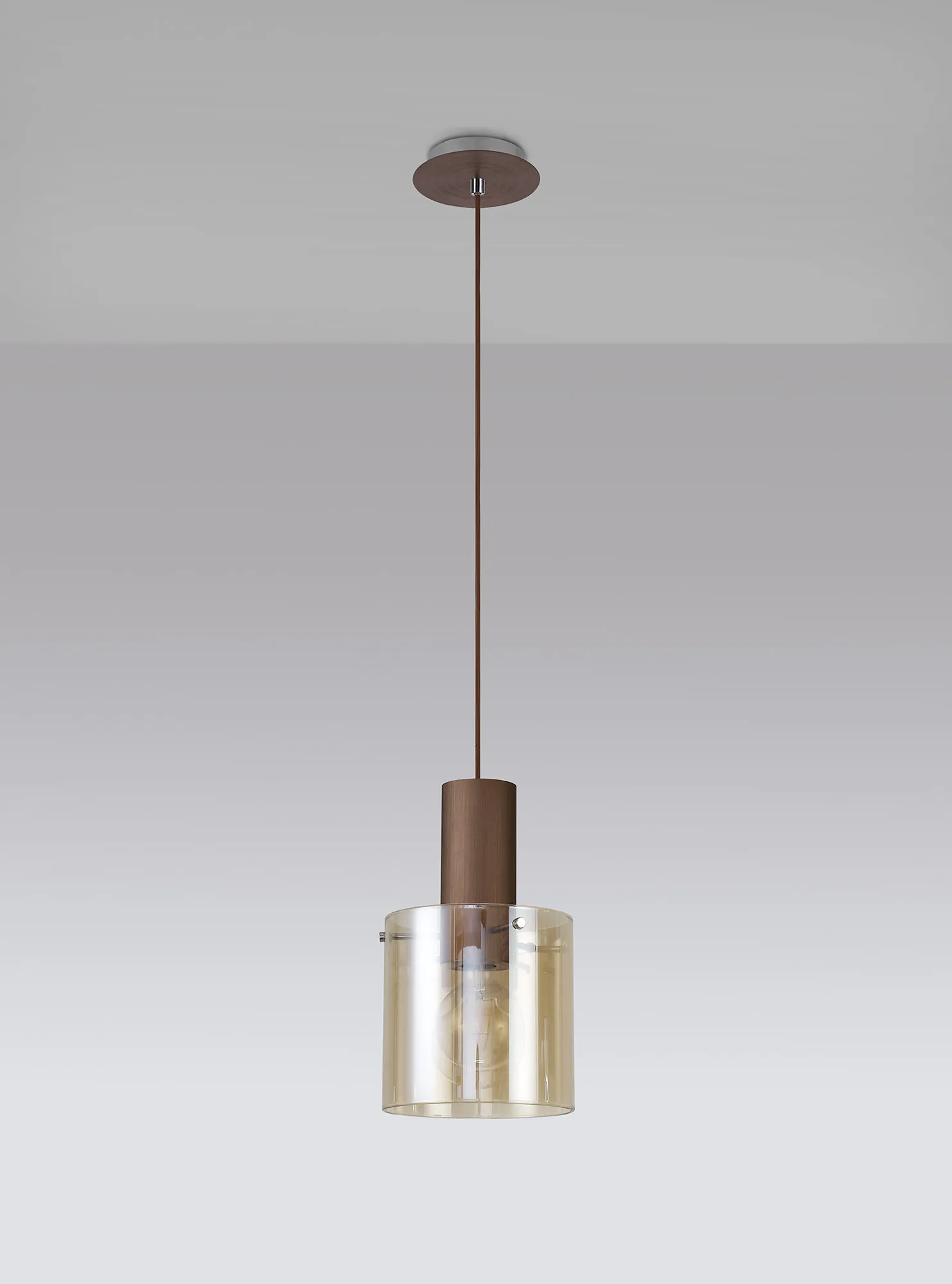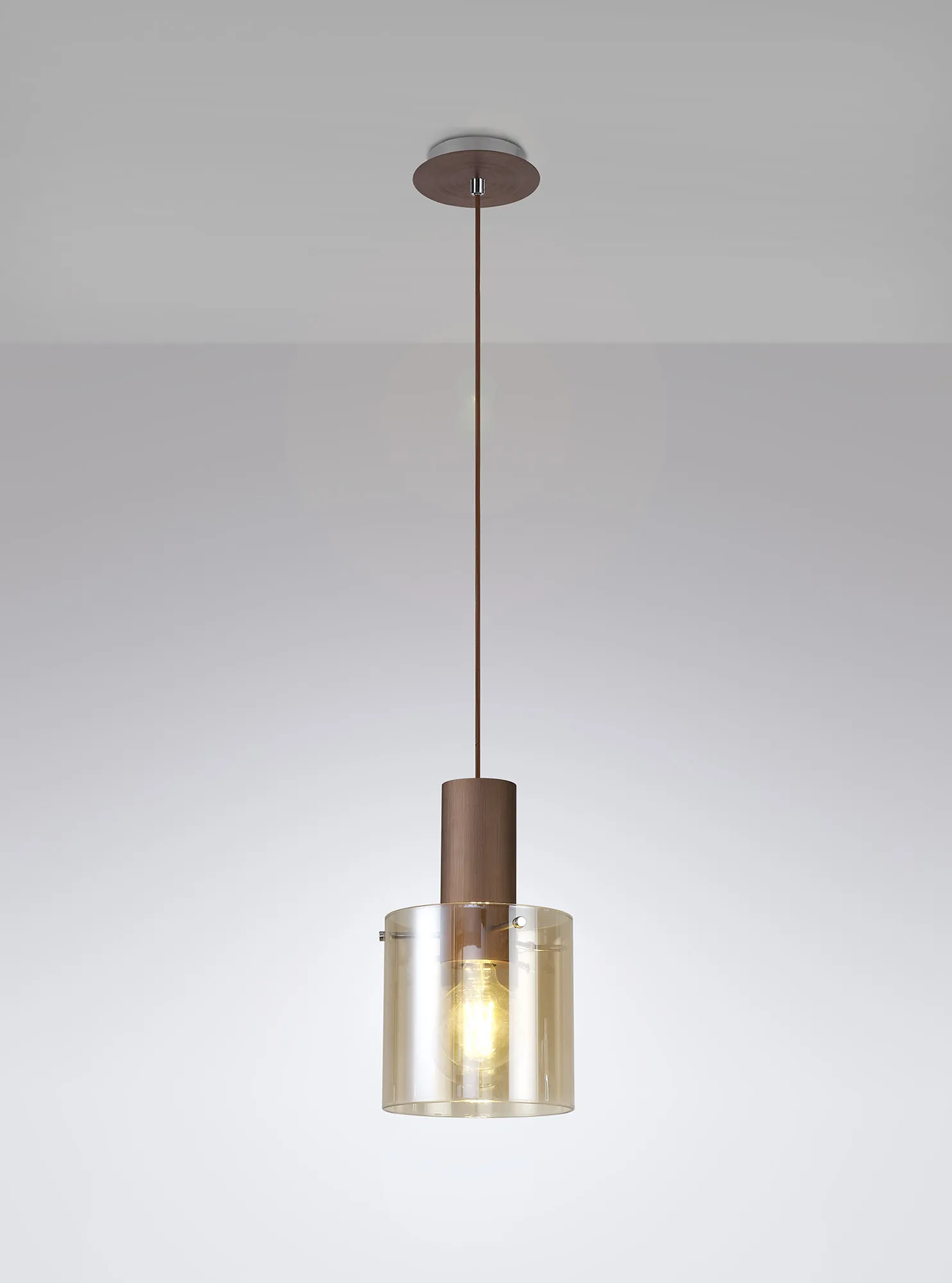 OTHER Mangere Single Pendant, 1 Light Adjustable E27, Mocha/Amber Glass