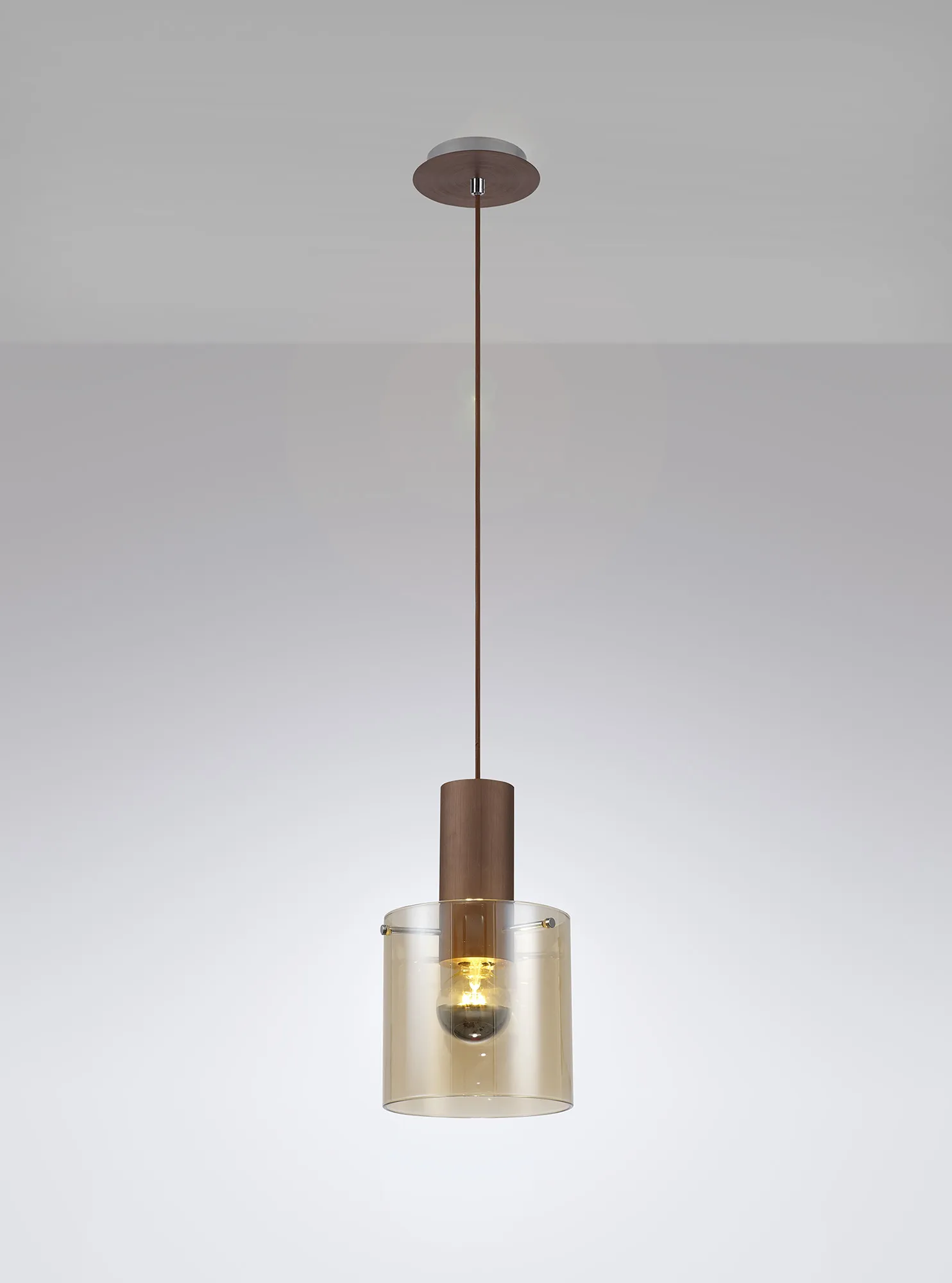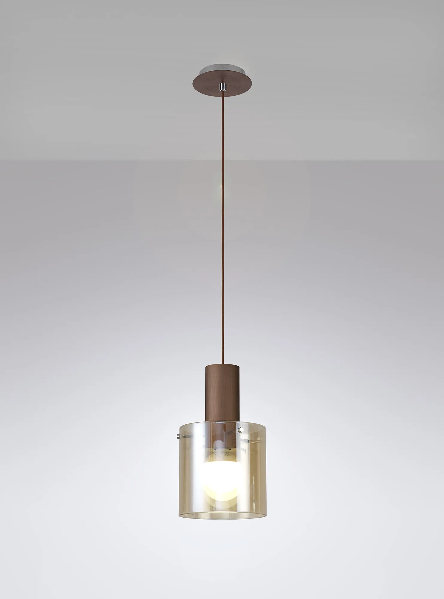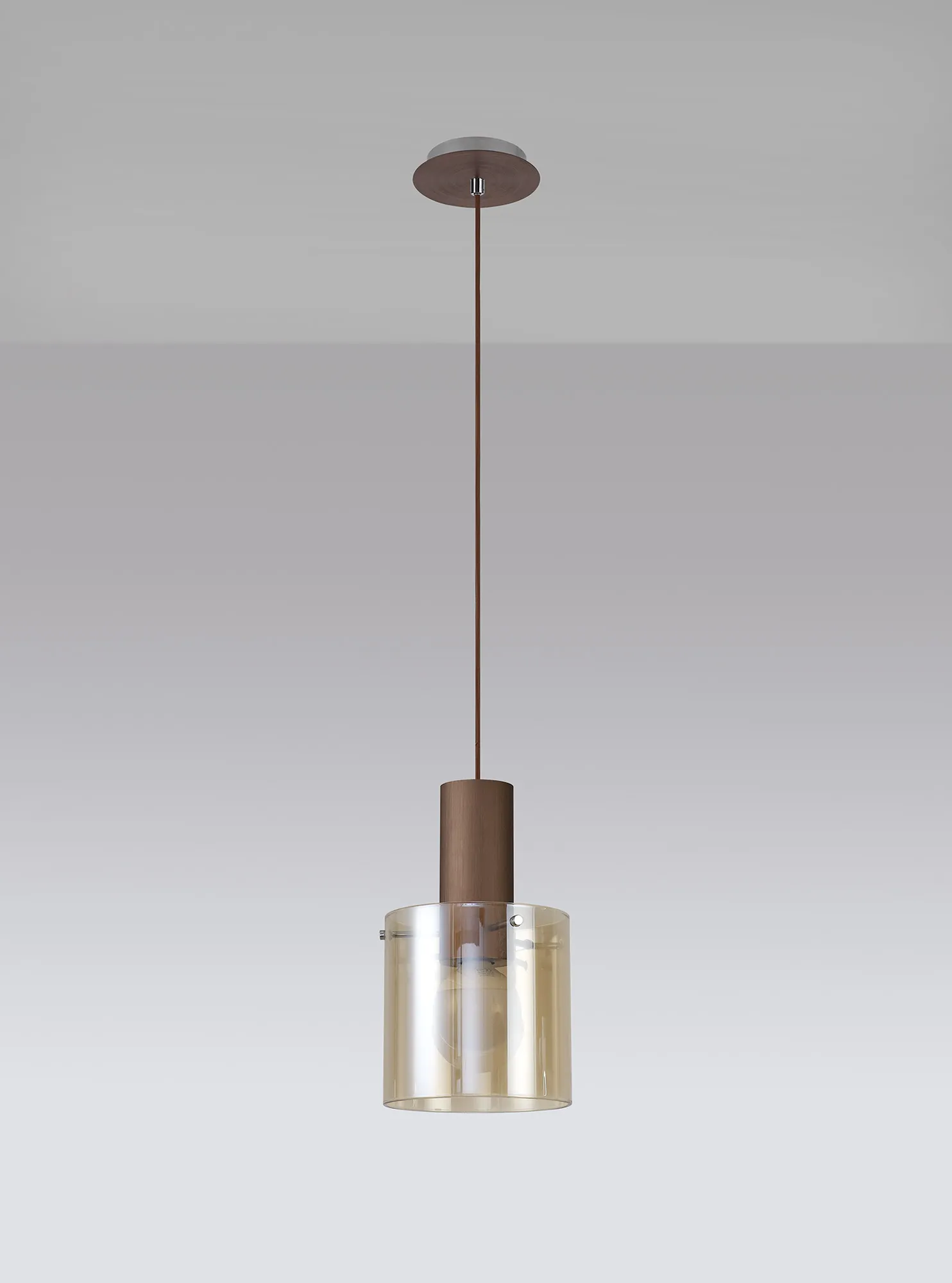 OTHER Mangere Single Pendant, 1 Light Adjustable E27, Mocha/Amber Glass