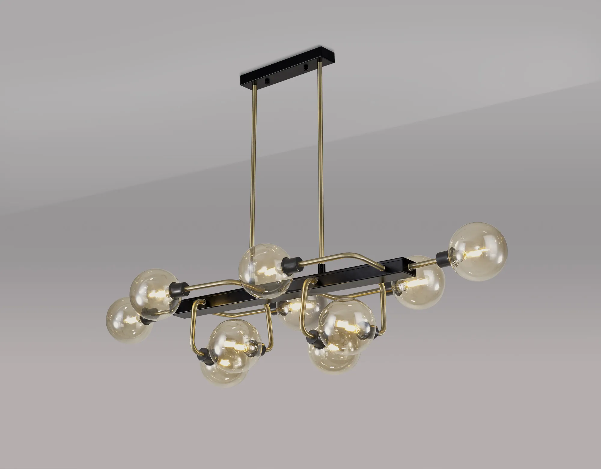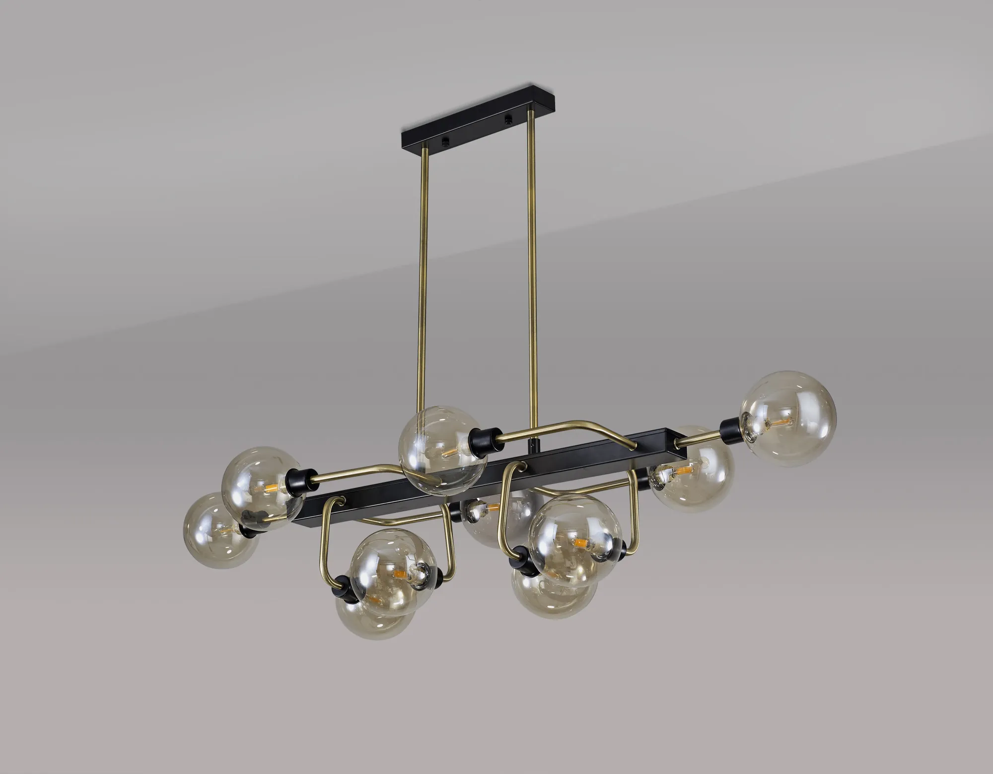 Massey Fixed Pendant, 12 x G9, Matt Black/Antique Brass/Cognac Glass