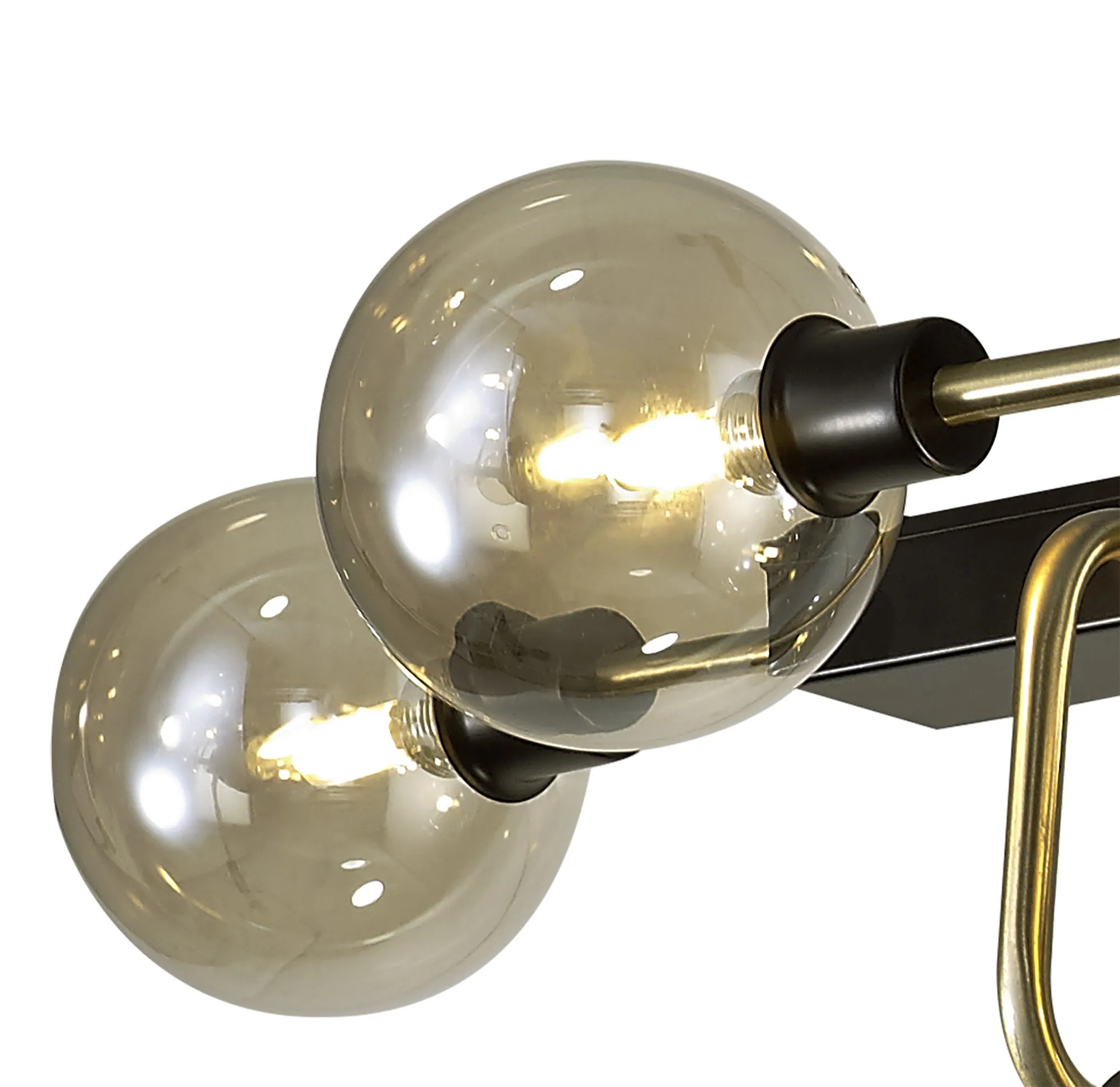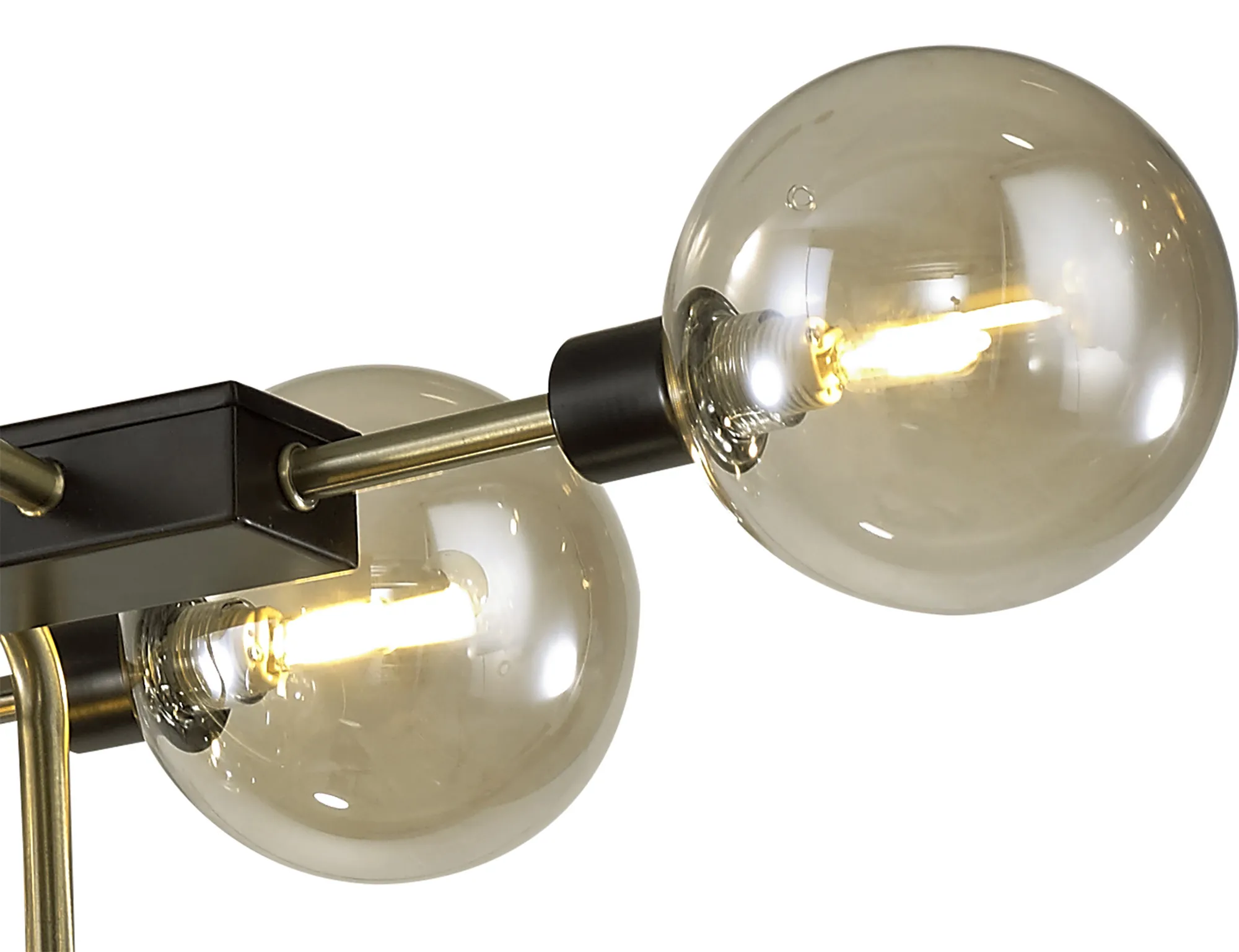 Massey 78cm Fixed Pendant, 12 Light G9, Matt Black/Antique Brass/Cognac Glass