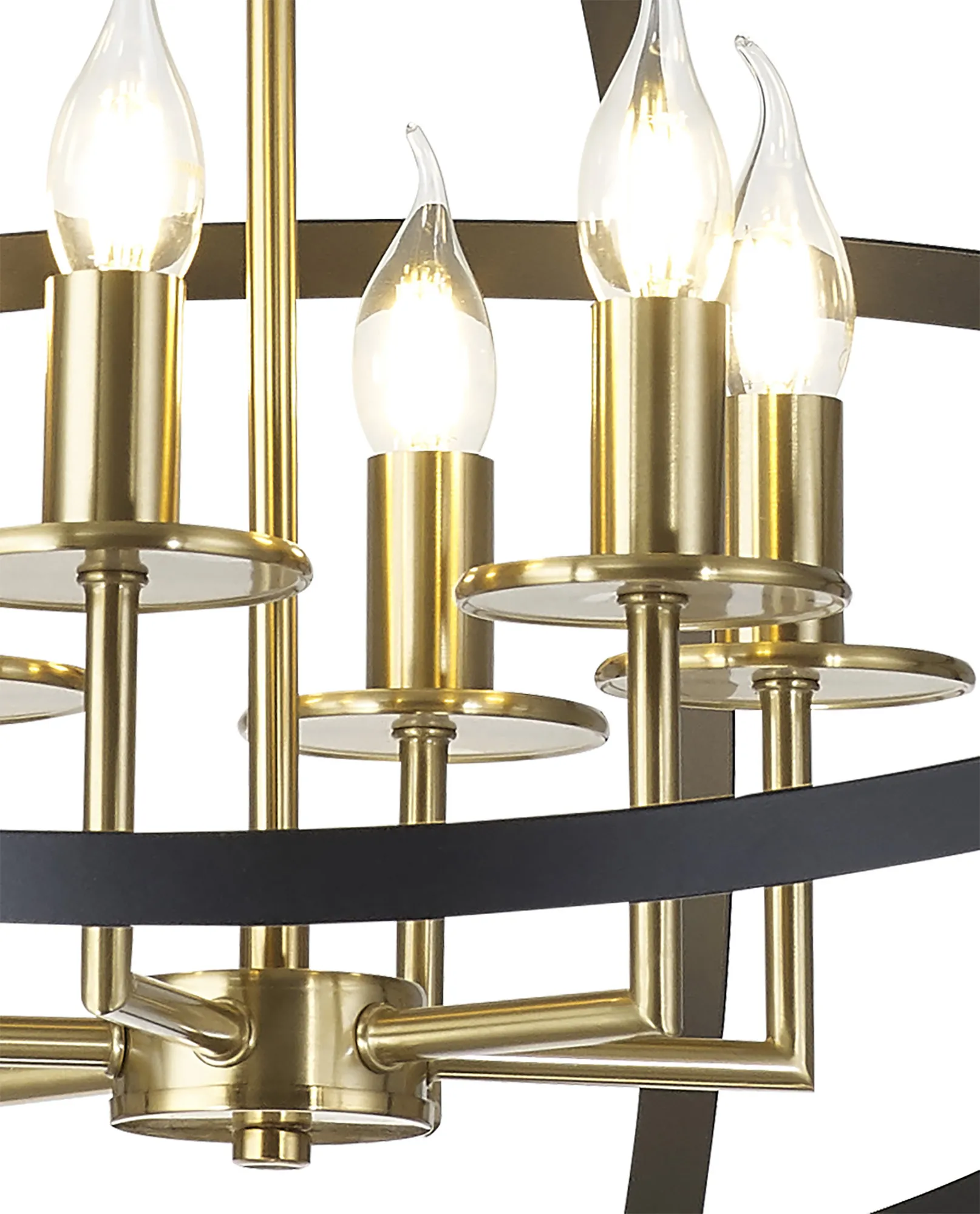 The combination of metallic framework combined with a darker decorative embellishment has proved excessively popular with some of our other ranges. In order to offer more style options within this concept we have now designed the Stronvar range. Mimicking astrological rings, the darker metalwork erratically frames the E14 lamp holders of each fitting. Originally available in a classic black and gold combination, Stronvar also now features a new colour pairing of anthracite and satin nickel.