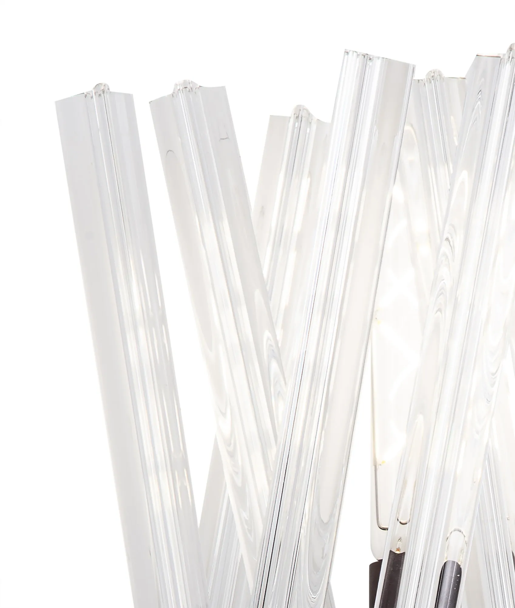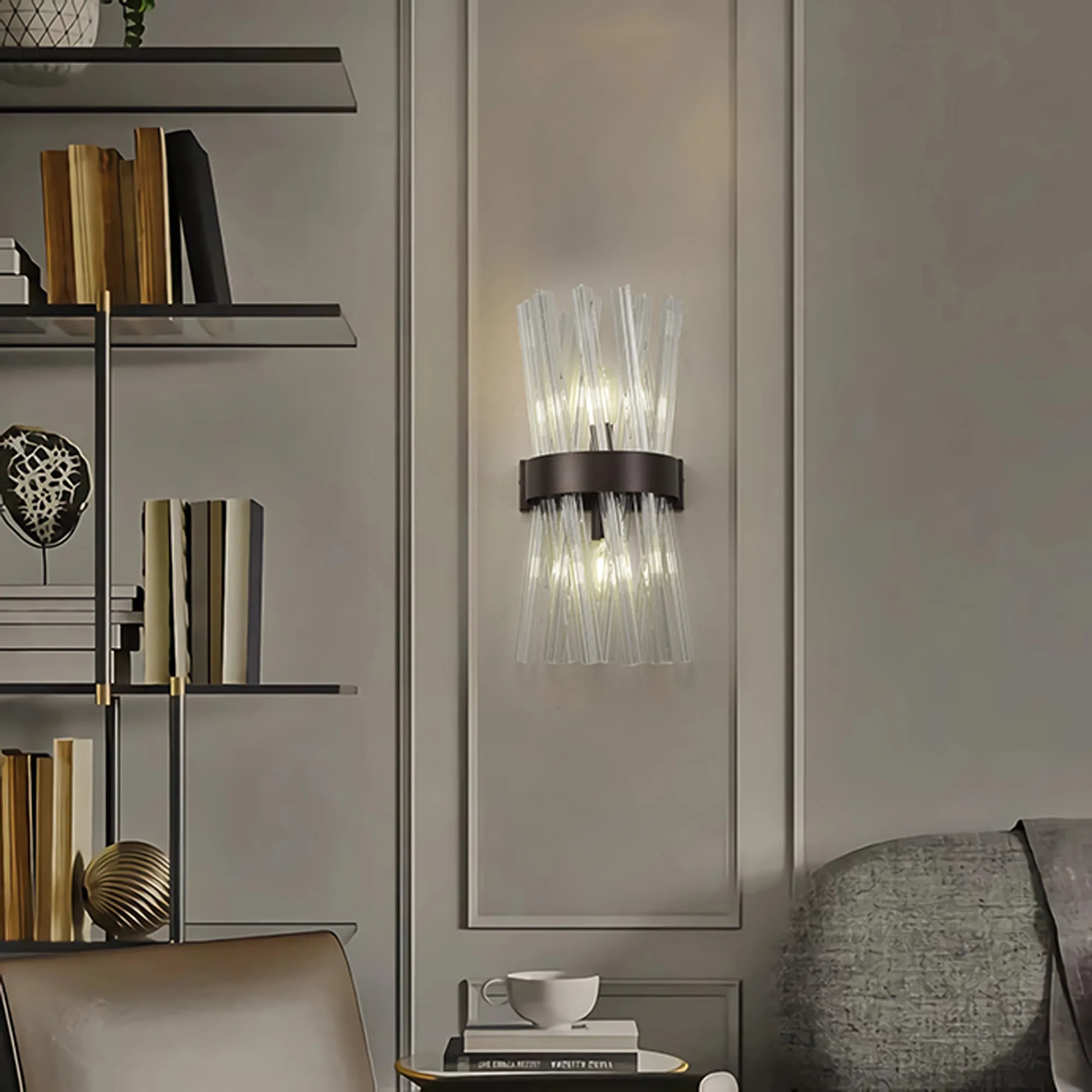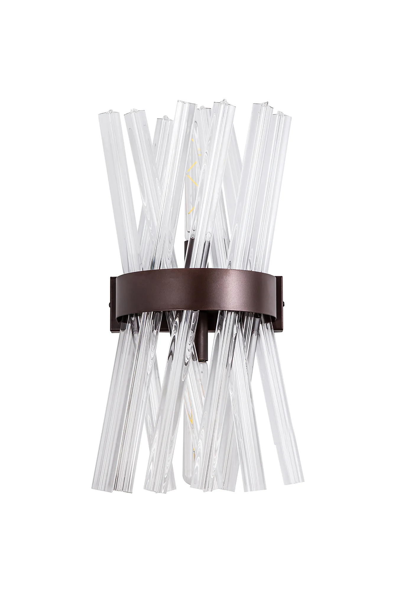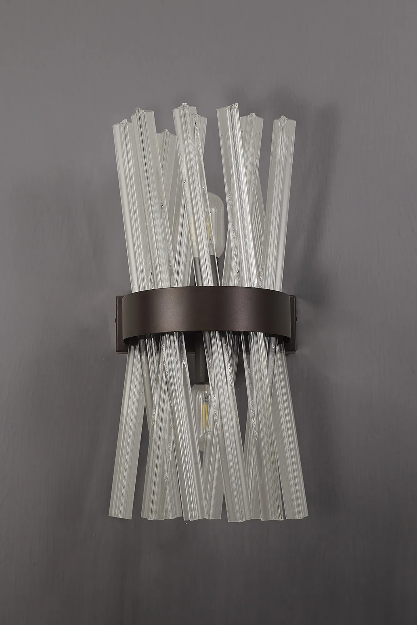 The Tora collection presents an intriguing glass shape moulded into a three dimensional triquetra. The grooves along each sized glass create an appealing optical effect which is effortlessly enhanced with the use of tubular lamps. The wide variety of fixtures available in this range span from a 6 light semi flush to an impacting 32 light pendant. The complementing wall lamps available allow for further application built around the same lighting family. Each frame can be chosen with either a brown oxide, polished nickel or matt black frame with either clear, champagne gold or smoke glass.