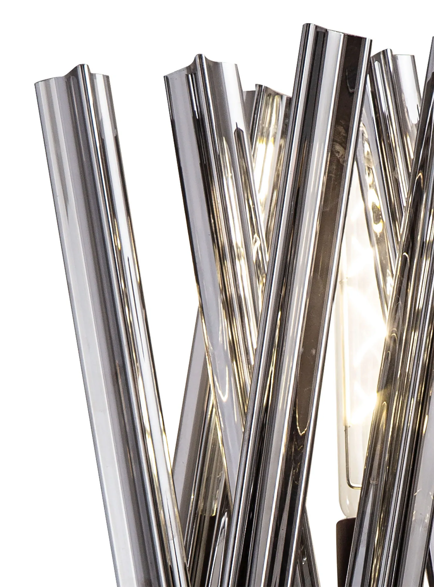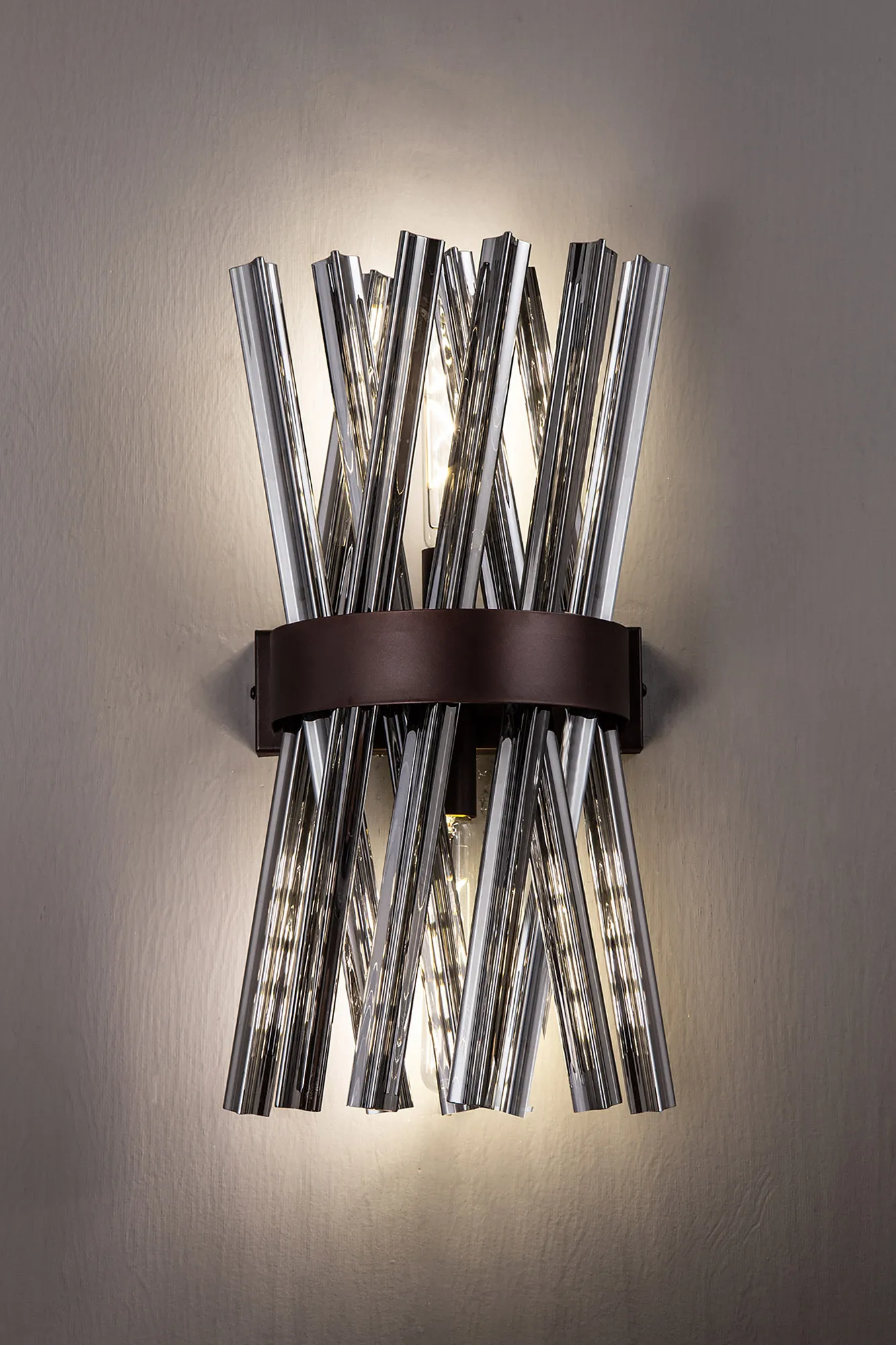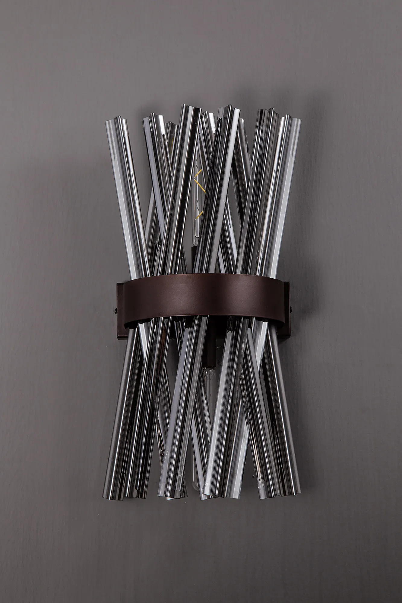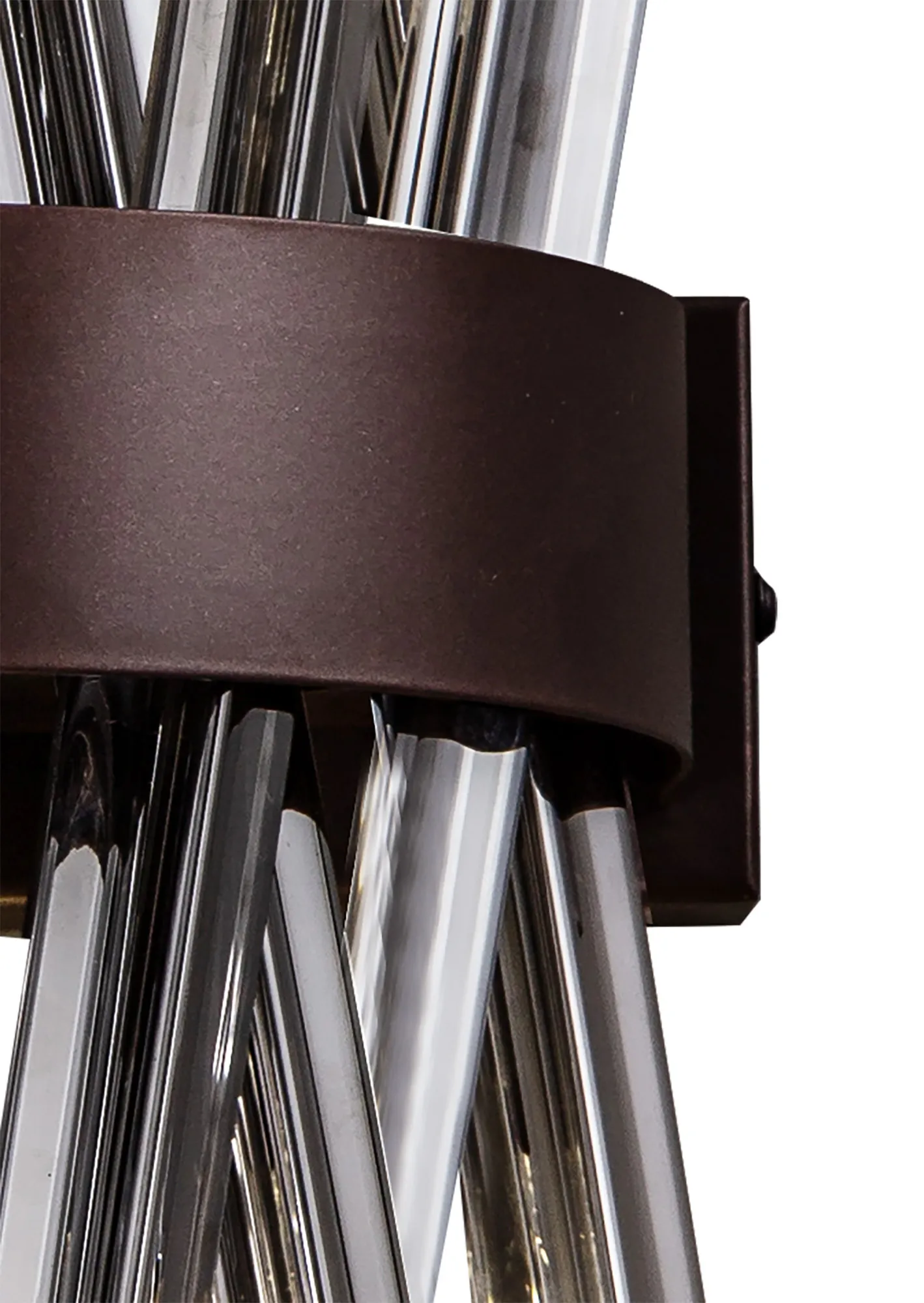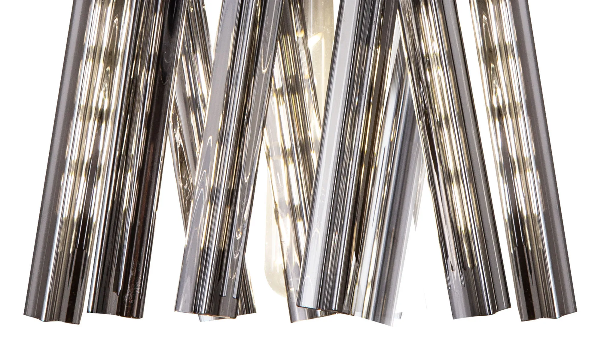 The Tora collection presents an intriguing glass shape moulded into a three dimensional triquetra. The grooves along each sized glass create an appealing optical effect which is effortlessly enhanced with the use of tubular lamps. The wide variety of fixtures available in this range span from a 6 light semi flush to an impacting 32 light pendant. The complementing wall lamps available allow for further application built around the same lighting family. Each frame can be chosen with either a brown oxide, polished nickel or matt black frame with either clear, champagne gold or smoke glass.