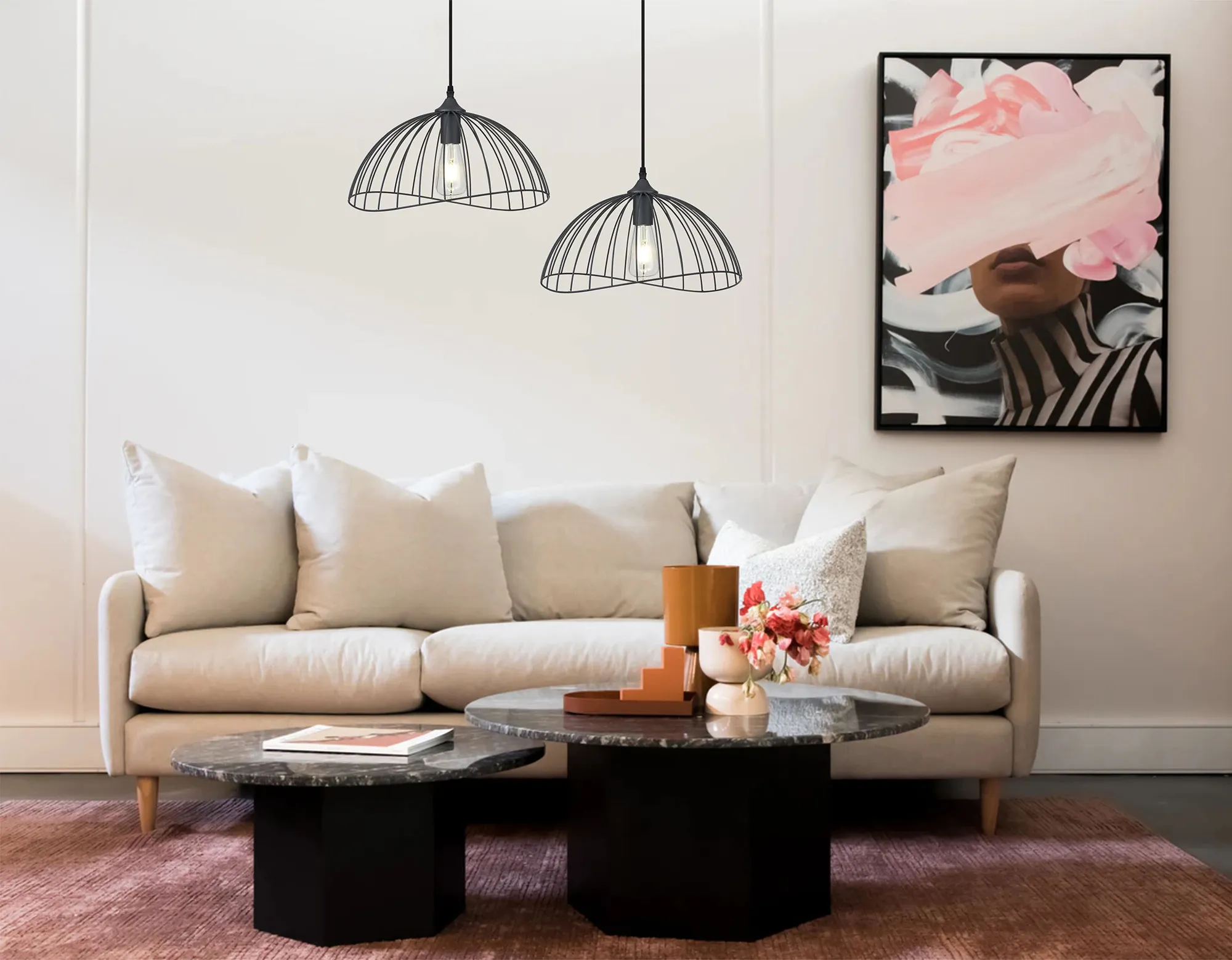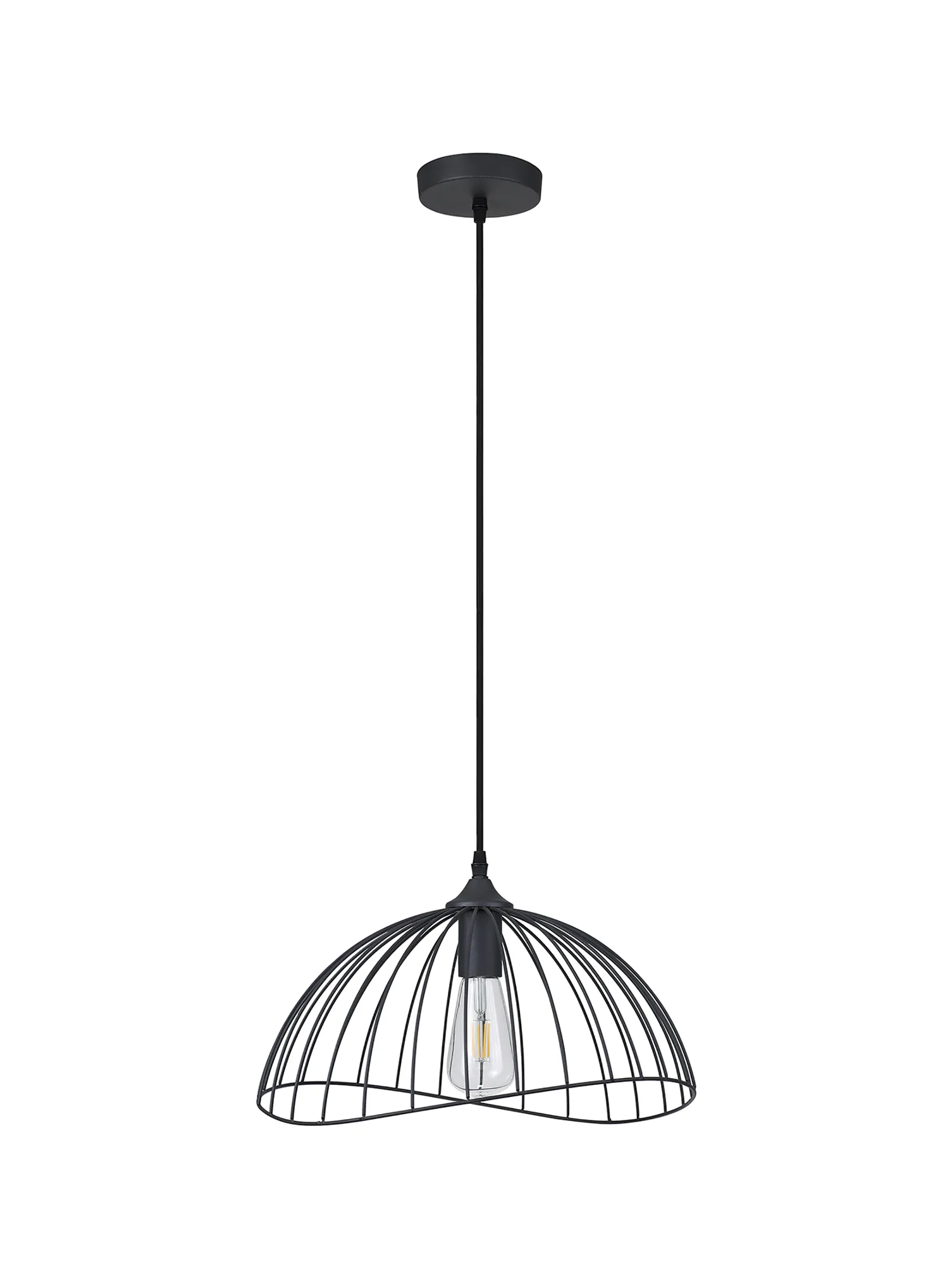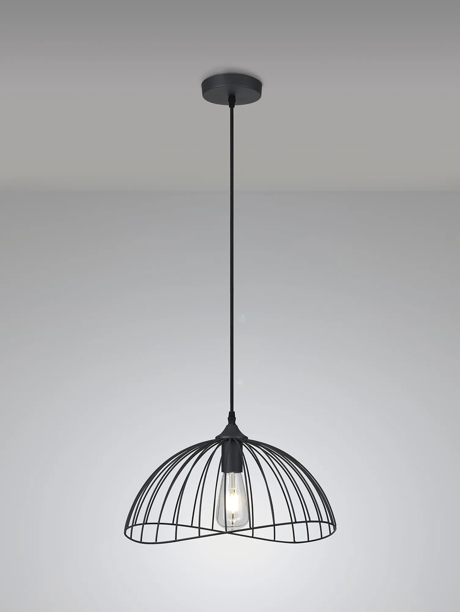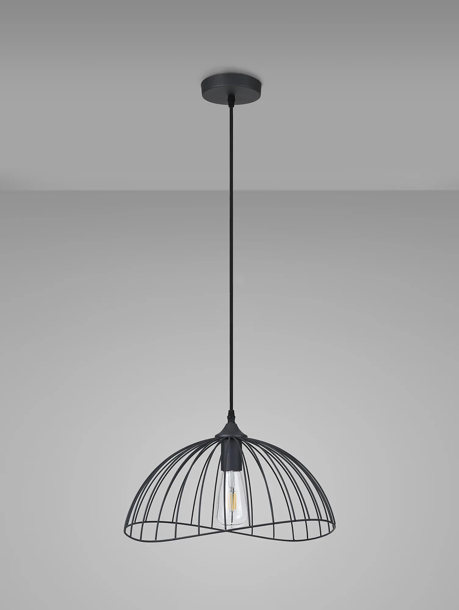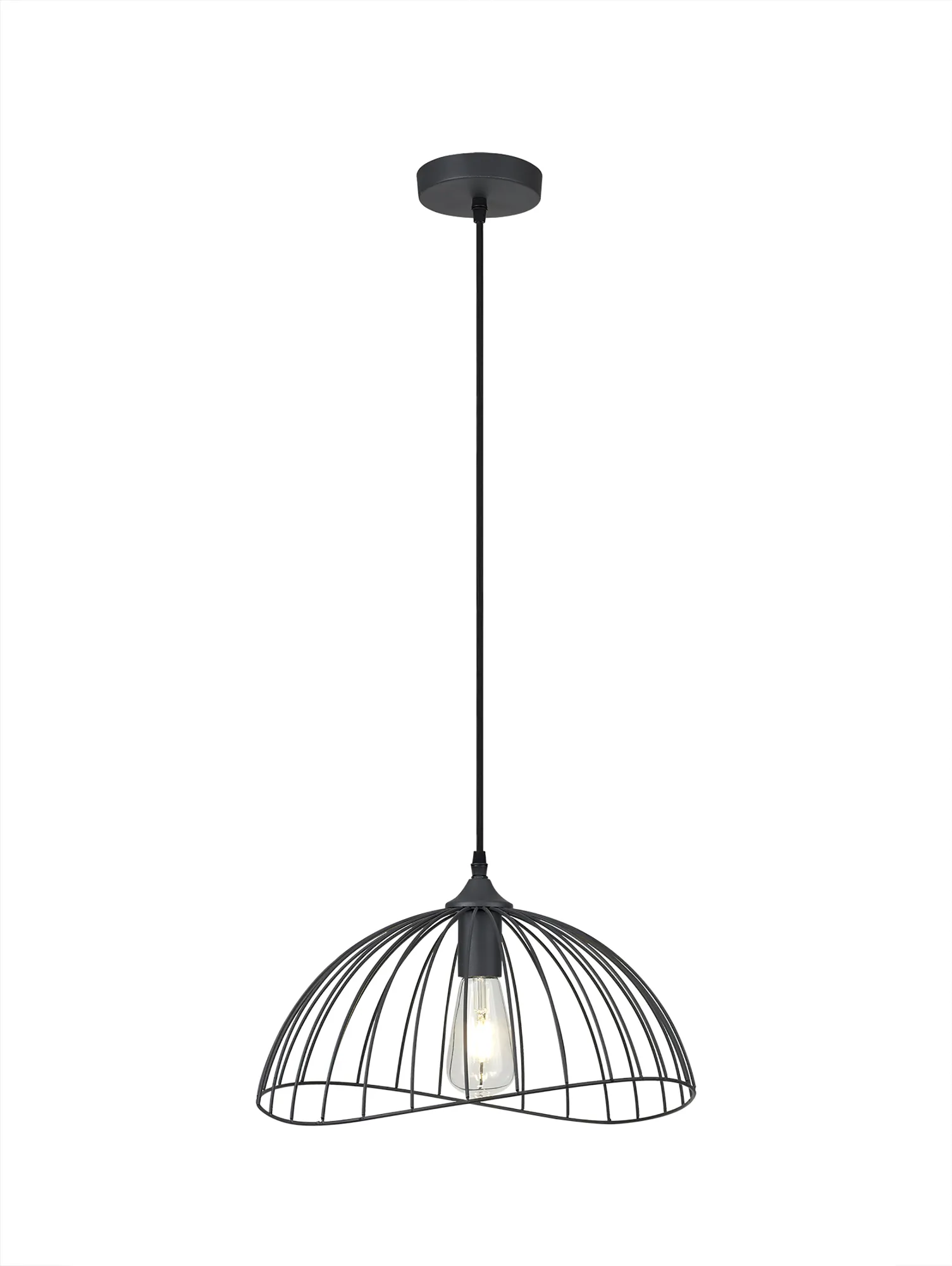 Available in two colour finishes Weber’s unique appearance resembles a wired cage that has been manipulated into two eye catching shapes. These single E27 pendants can be used as a lone lighting source or grouped together to form a more substantial feature with the open framework shade allowing a wider dispersal of illumination.