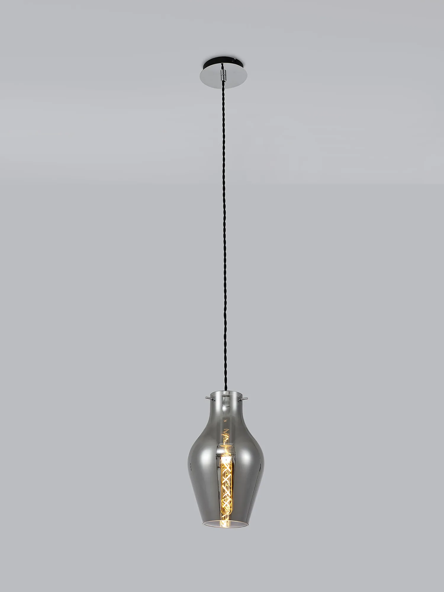With either a clear or smoke glass, the Maho range is a collection of single polished chrome pendant lights. The pendants for both colours are available in three sizes 17cm, 28cm or 38cm. The sleek shape of the vase sculpted glass is cohesive to most modern or contemporary décor. Each light is stylish enough to be used as a standalone feature or can be used in conjunction with one another to create an inventive combination.