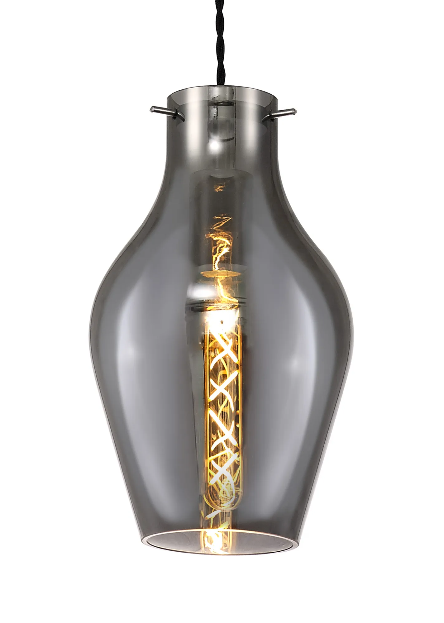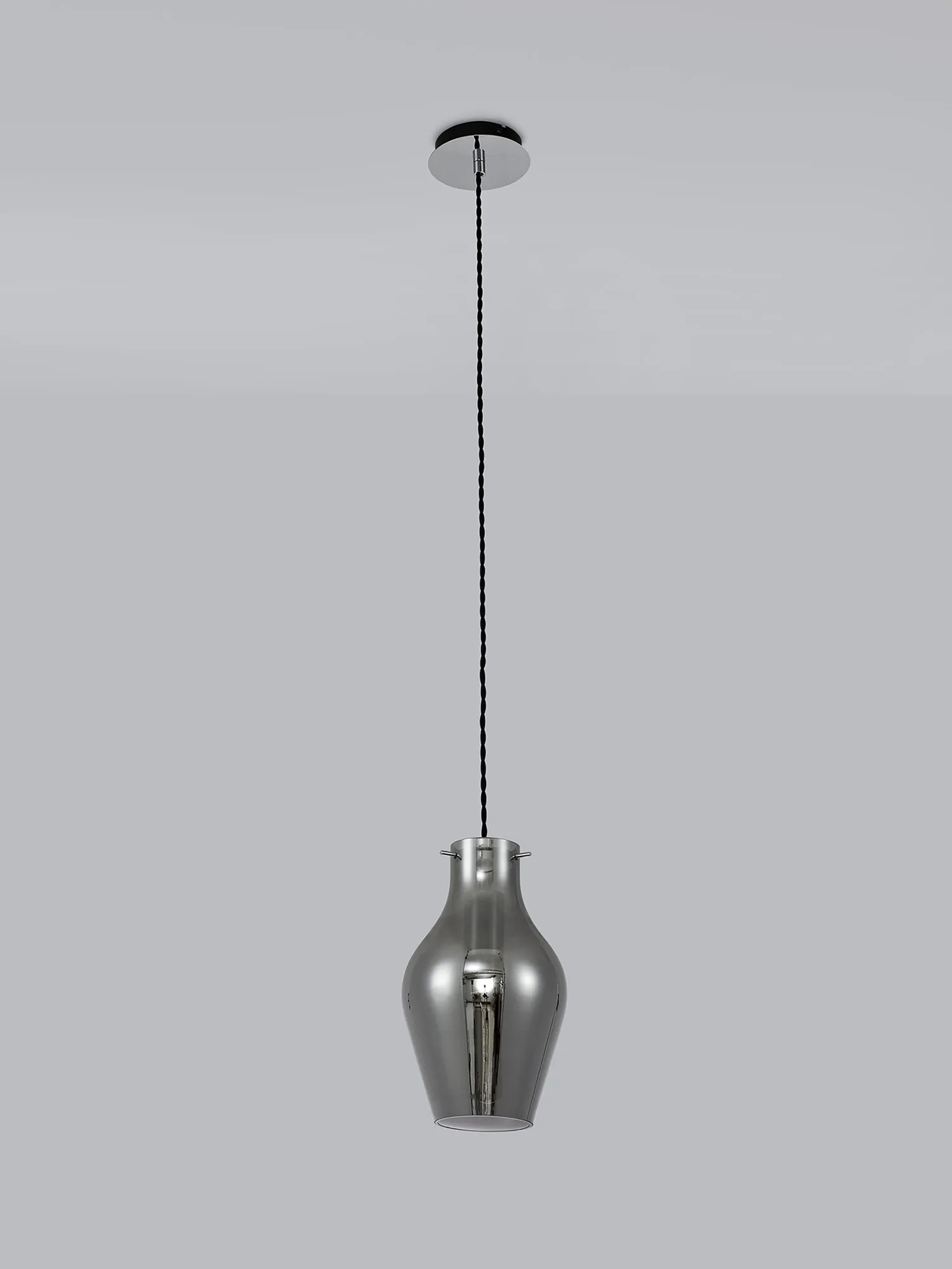 Maho Pendant 28cm Round, 1 x E27, Chrome & Smoke