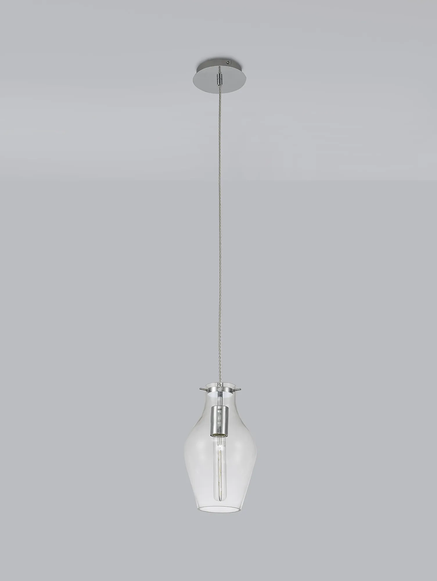 With either a clear or smoke glass, the Maho range is a collection of single polished chrome pendant lights. The pendants for both colours are available in three sizes 17cm, 28cm or 38cm. The sleek shape of the vase sculpted glass is cohesive to most modern or contemporary décor. Each light is stylish enough to be used as a standalone feature or can be used in conjunction with one another to create an inventive combination.