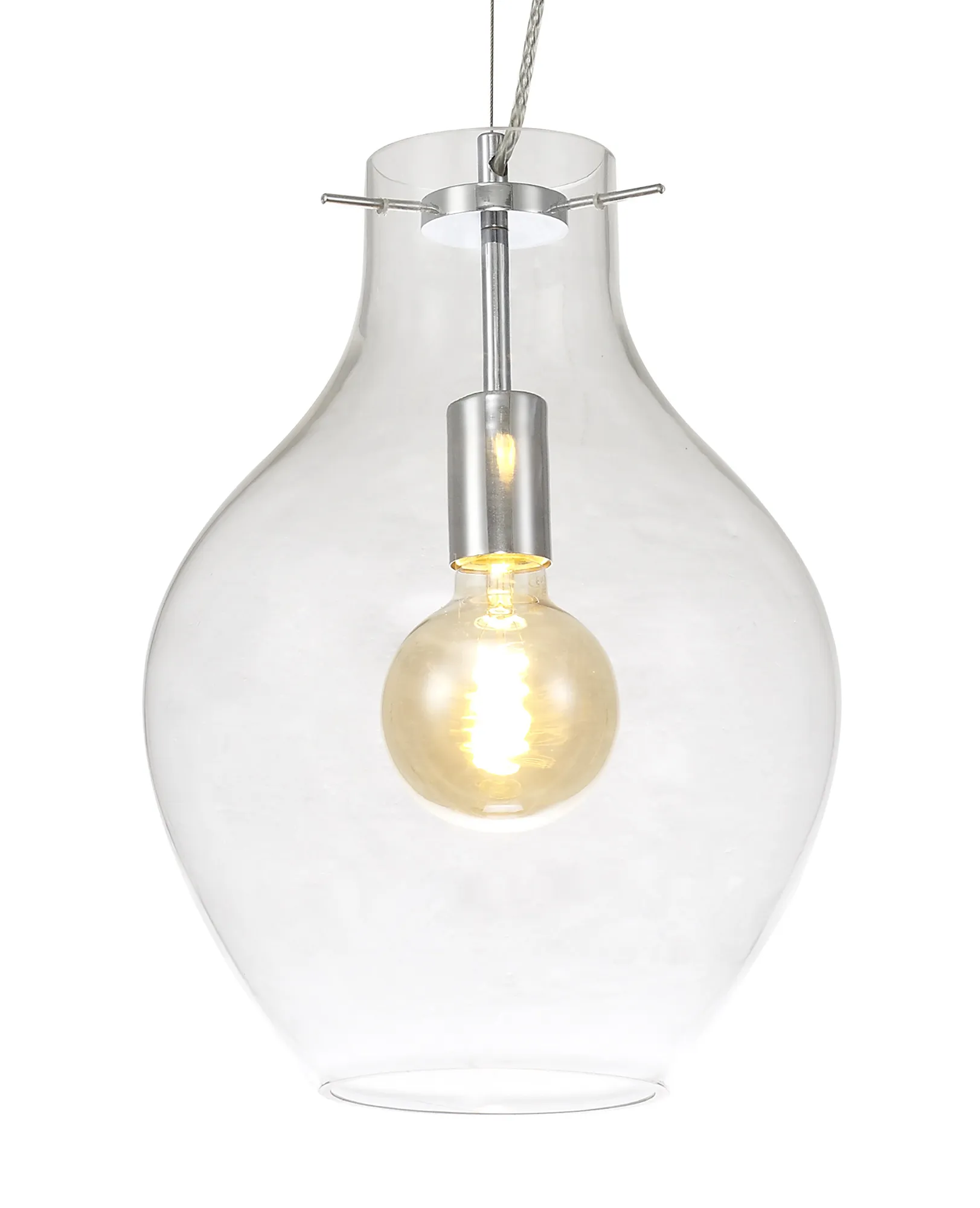 With either a clear or smoke glass, the Maho range is a collection of single polished chrome pendant lights. The pendants for both colours are available in three sizes 17cm, 28cm or 38cm. The sleek shape of the vase sculpted glass is cohesive to most modern or contemporary décor. Each light is stylish enough to be used as a standalone feature or can be used in conjunction with one another to create an inventive combination.