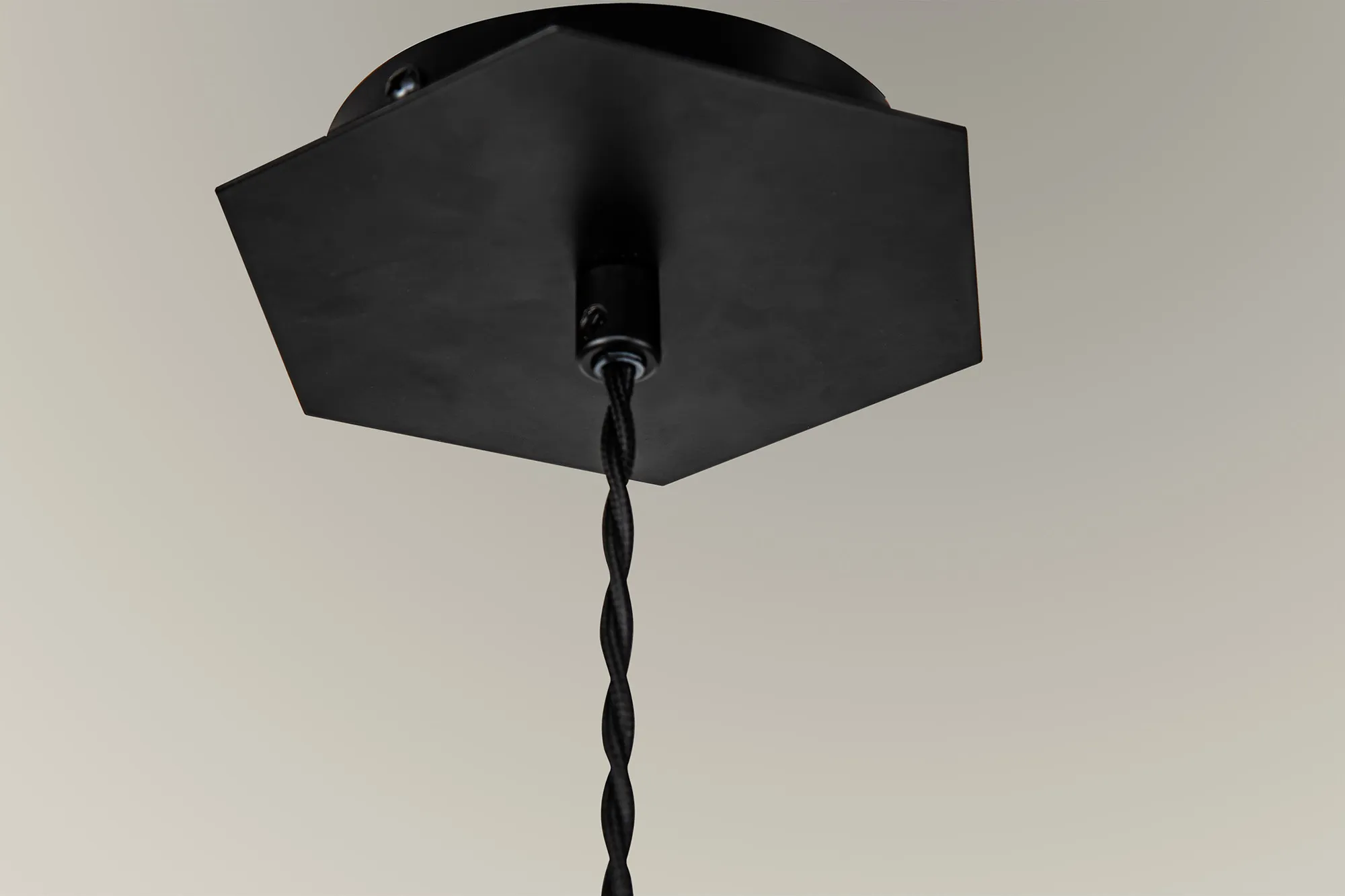 Alice is a collection of single pendants, the frames are formed from a larger dome shape and a shallow dish both positioned in different directions to outline the shape of a serving bowl. The slim diffuser where each piece meets has been added to give a soft halo of light in-between both shapes projected from the E27 lamp holder which dispels the main source of light from the larger open shade.
