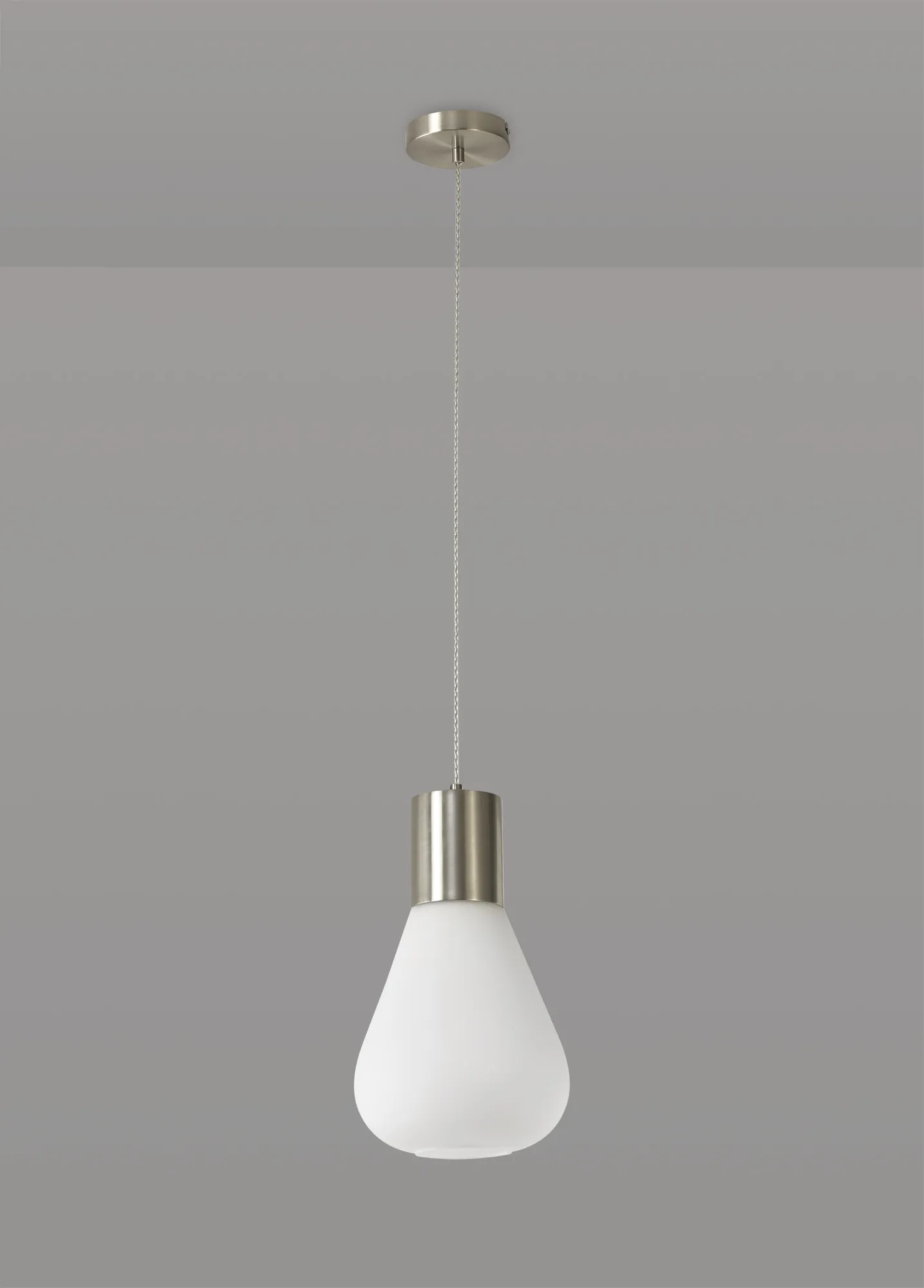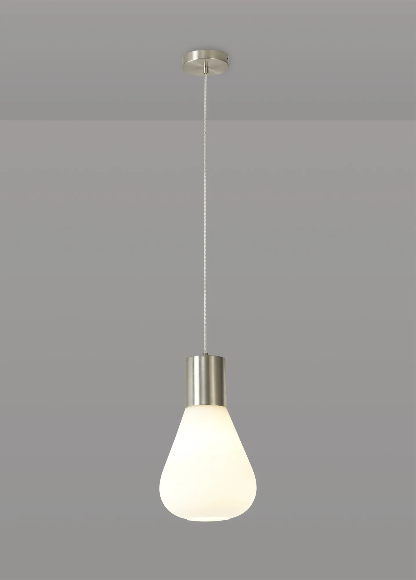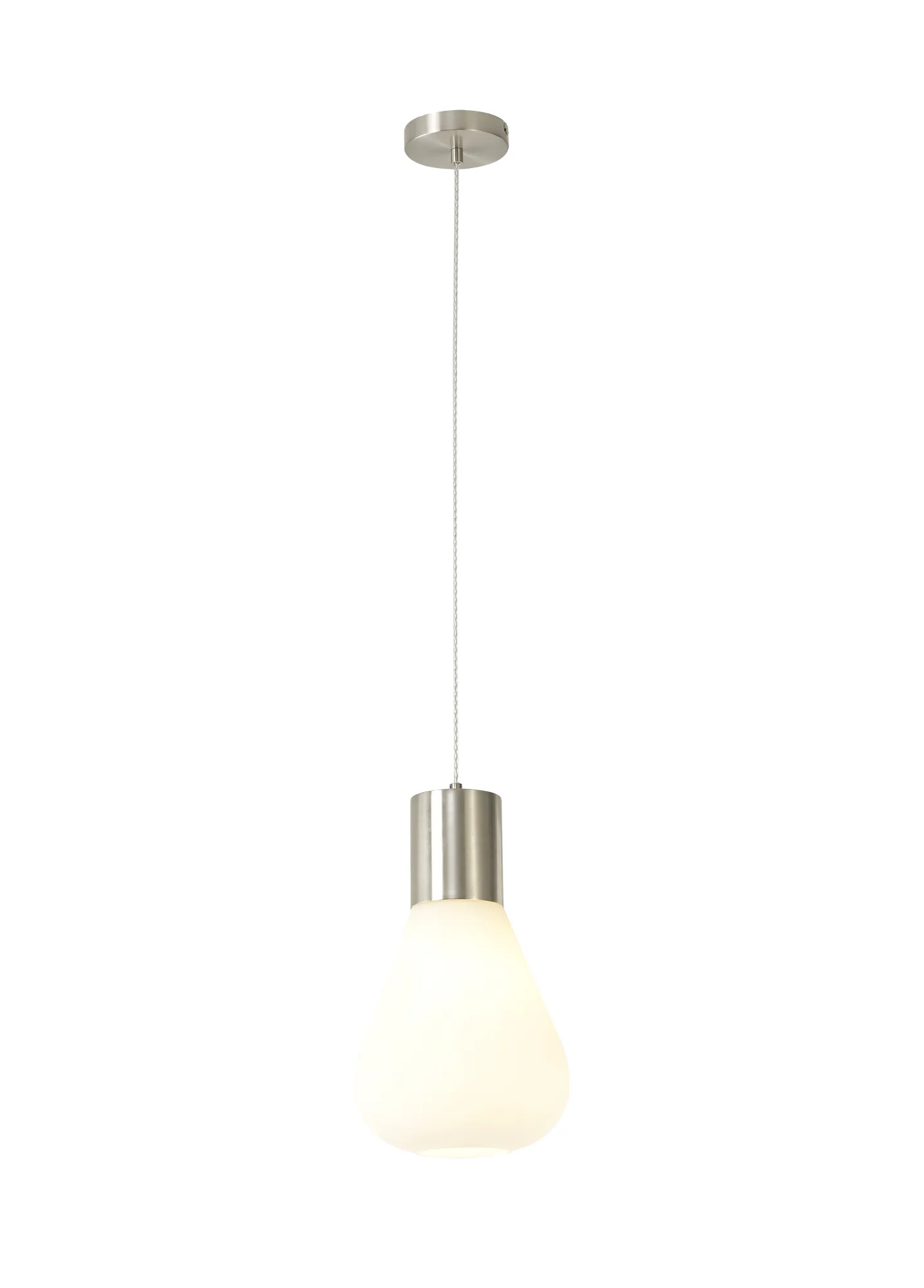 Clyde Wide Pendant, 1 x E27, Satin Nickel/Opal Glass & Clear Twisted Cable