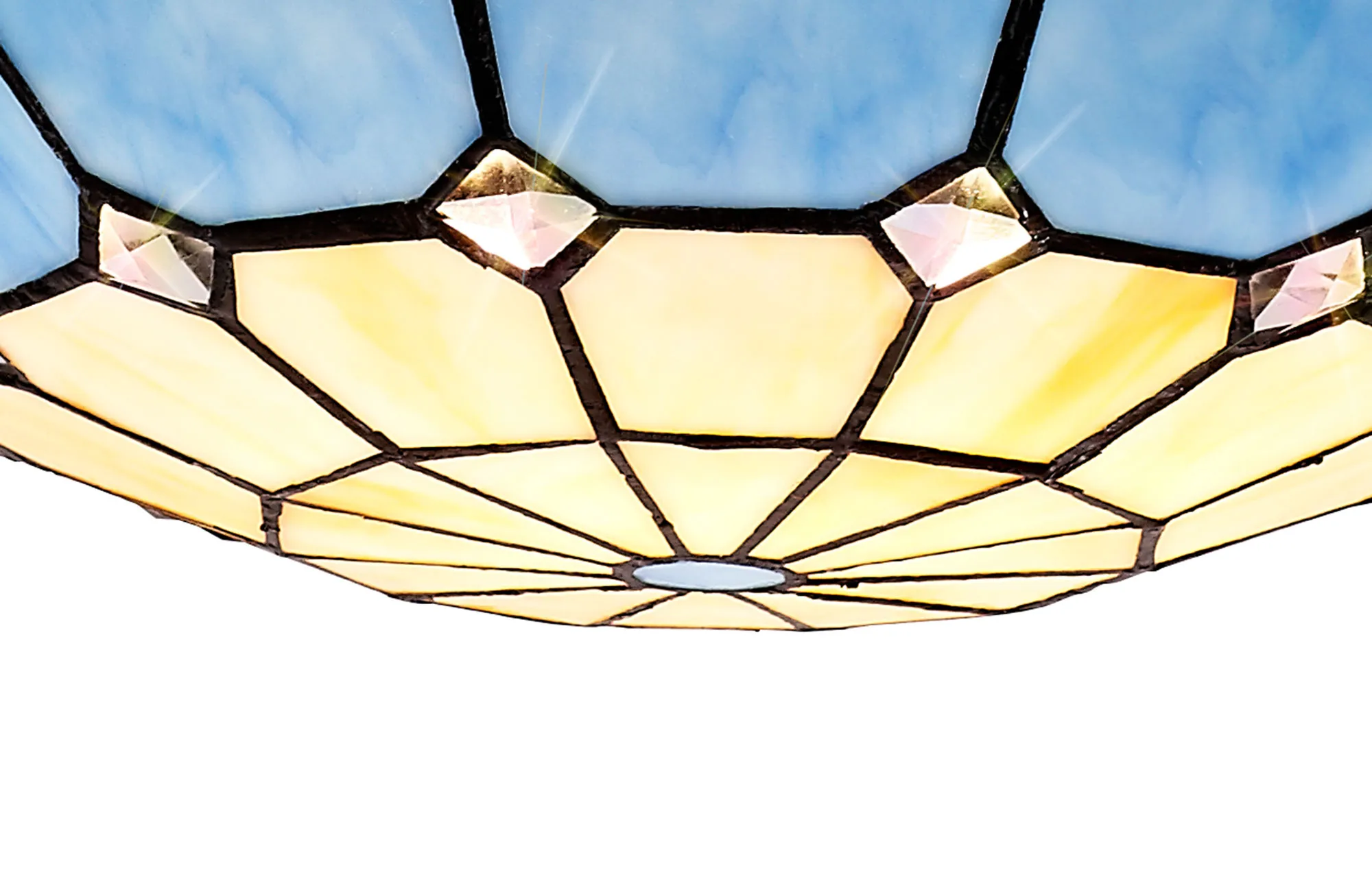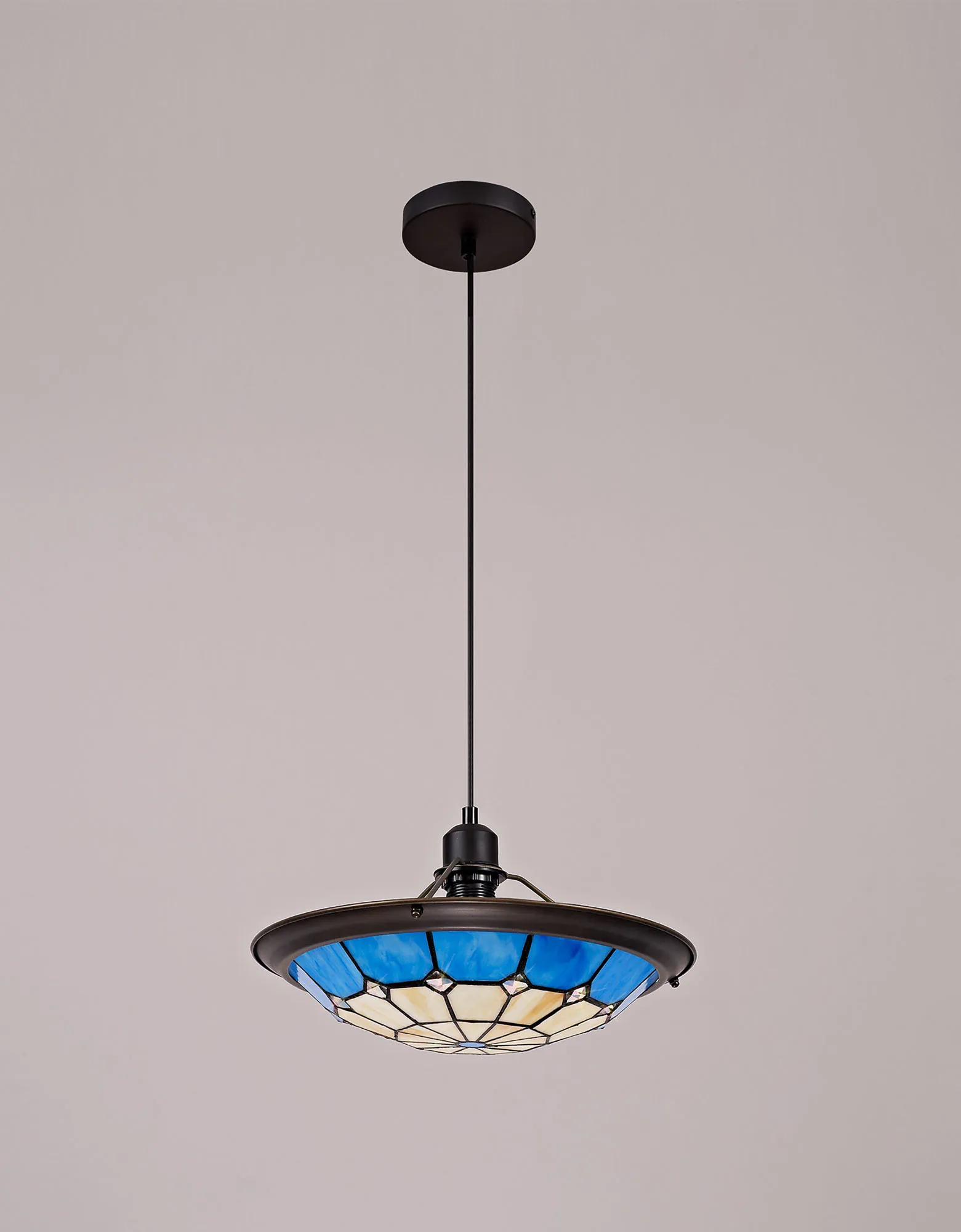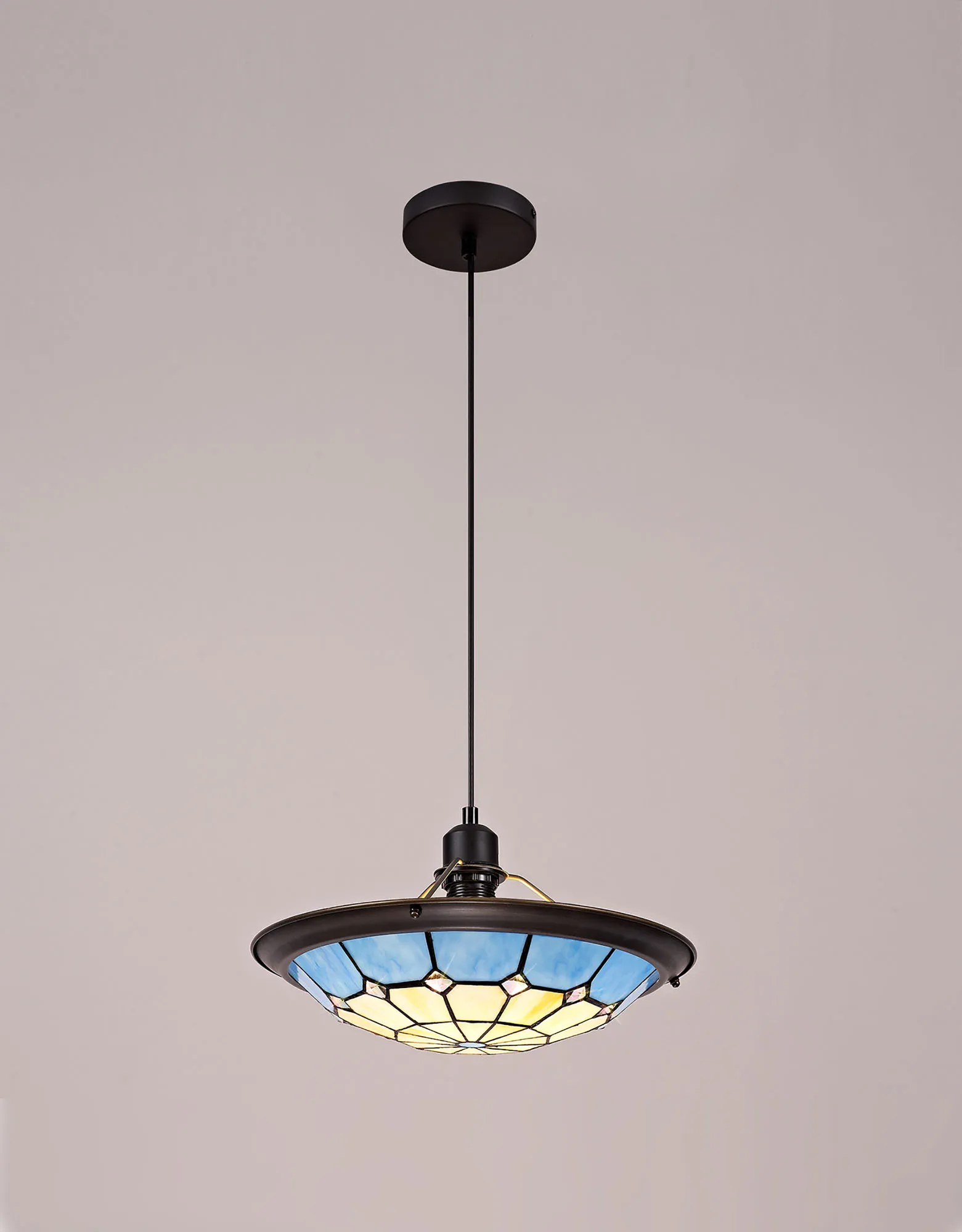 A classic traditional range, Albert offers the best of Tiffany glass designs in the form of a 35cm uplighter shade. Available in an array of colour options, this non-electric shade brings its design into the modern era by implementing a dazzling clear crystal centre, inserting an attractive spectrum of colour seamlessly complementing the warm multi-coloured glow provided by the unique glass shapes.