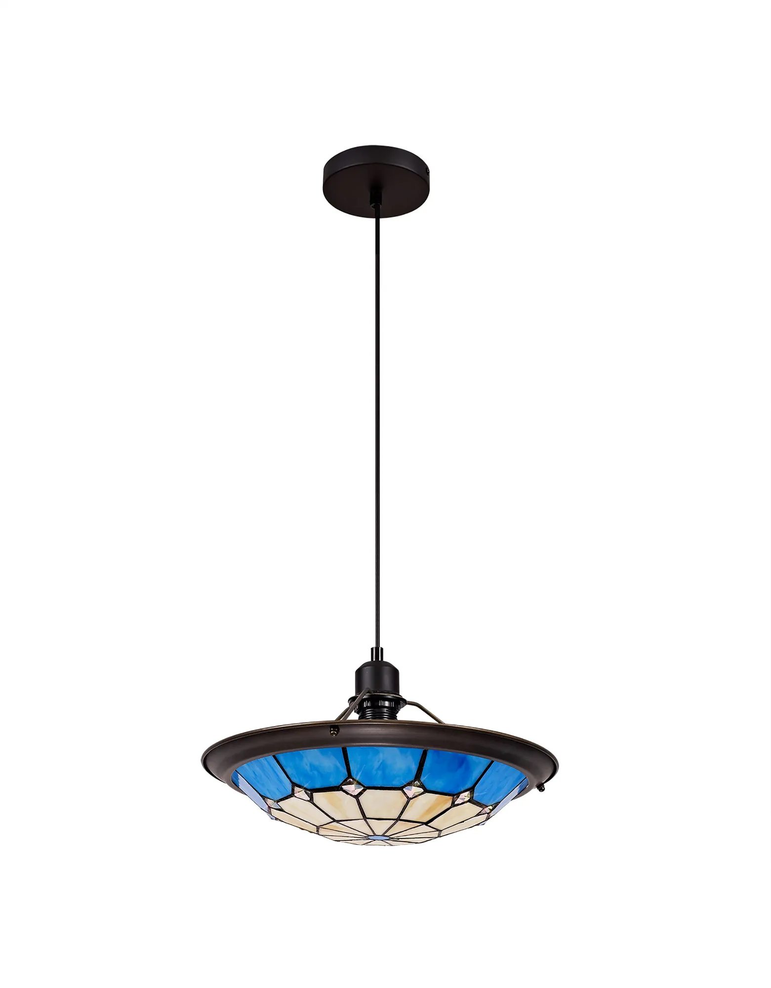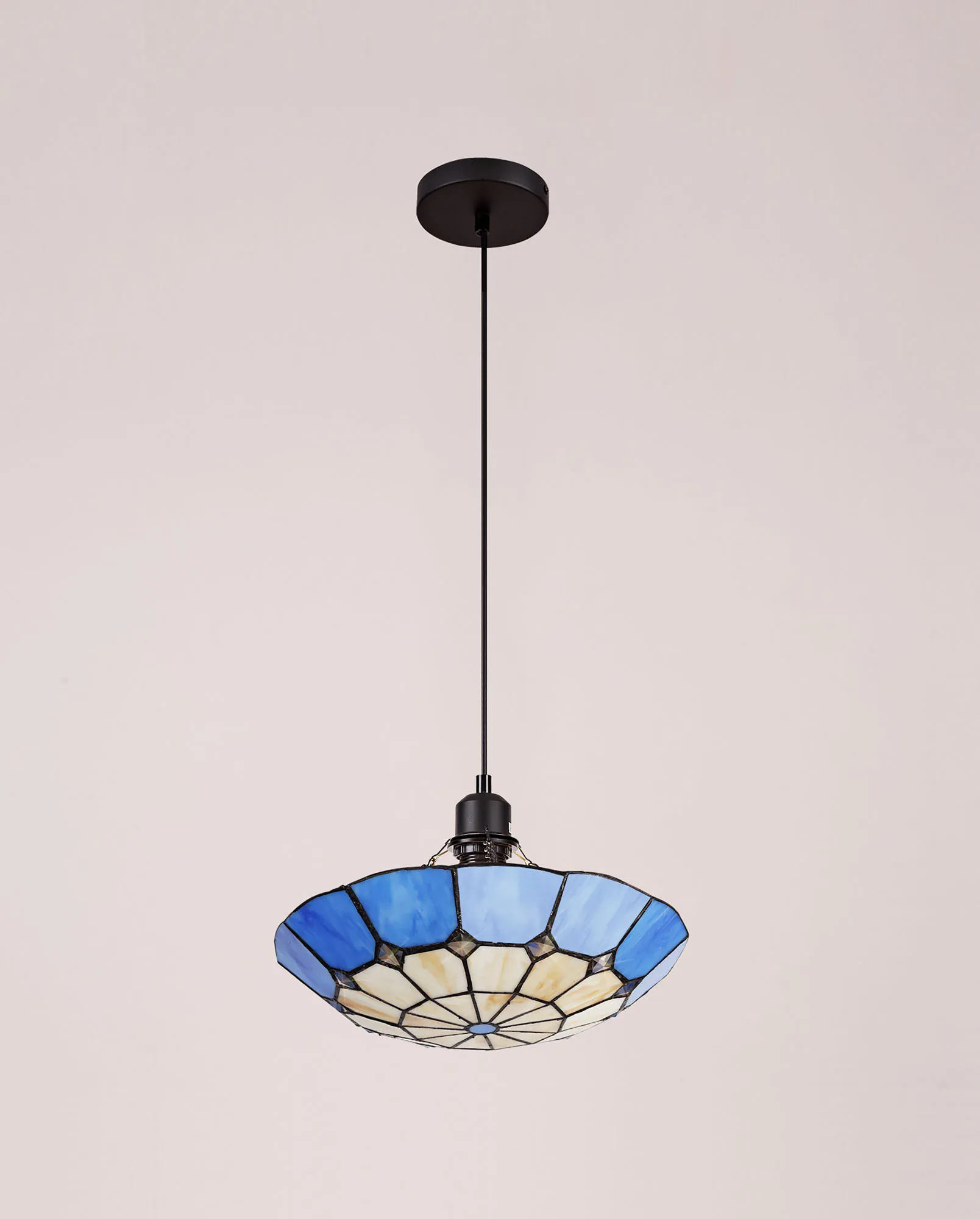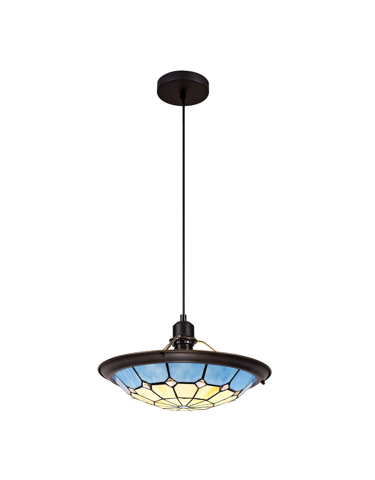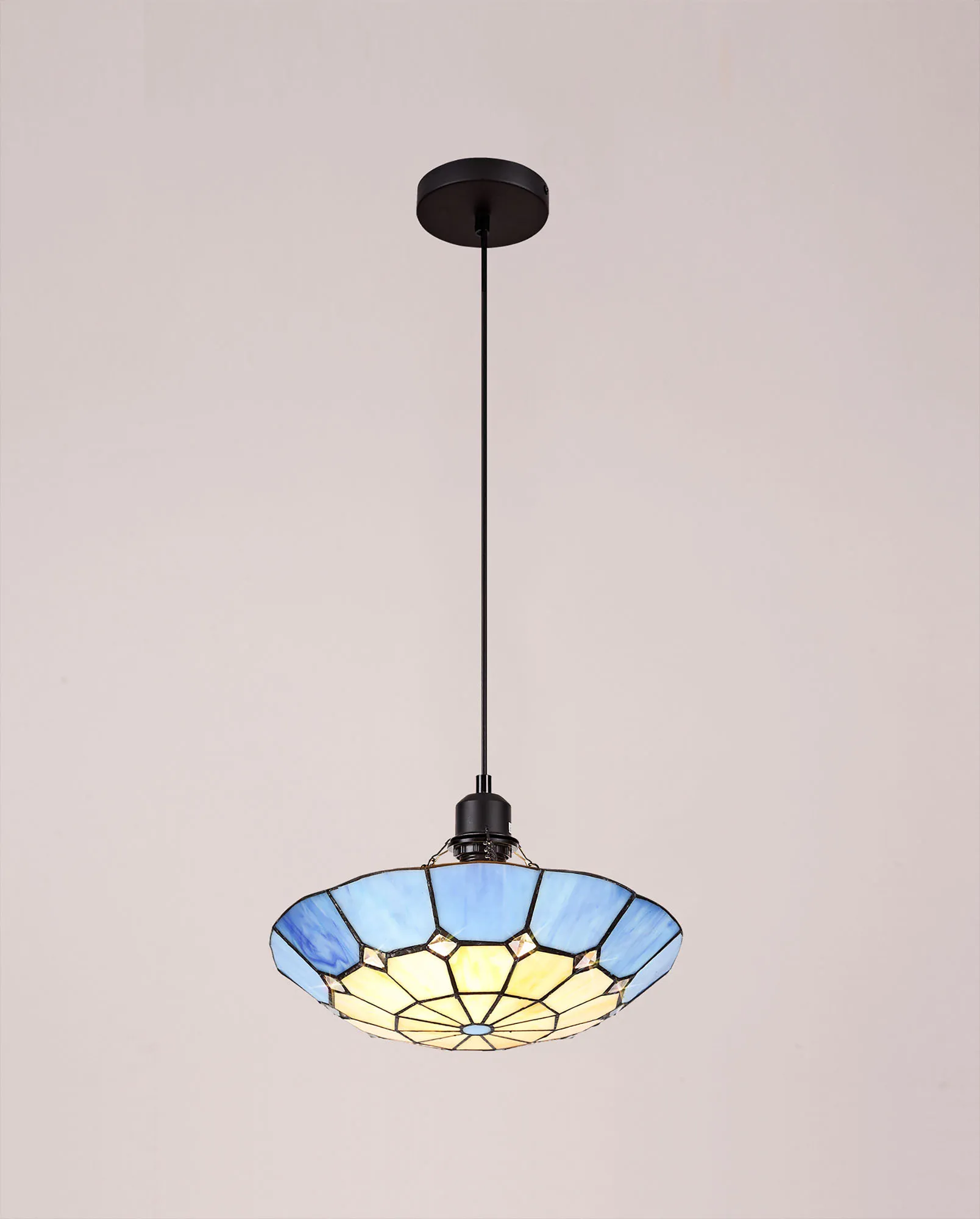 A classic traditional range, Albert offers the best of Tiffany glass designs in the form of a 35cm uplighter shade. Available in an array of colour options, this non-electric shade brings its design into the modern era by implementing a dazzling clear crystal centre, inserting an attractive spectrum of colour seamlessly complementing the warm multi-coloured glow provided by the unique glass shapes.