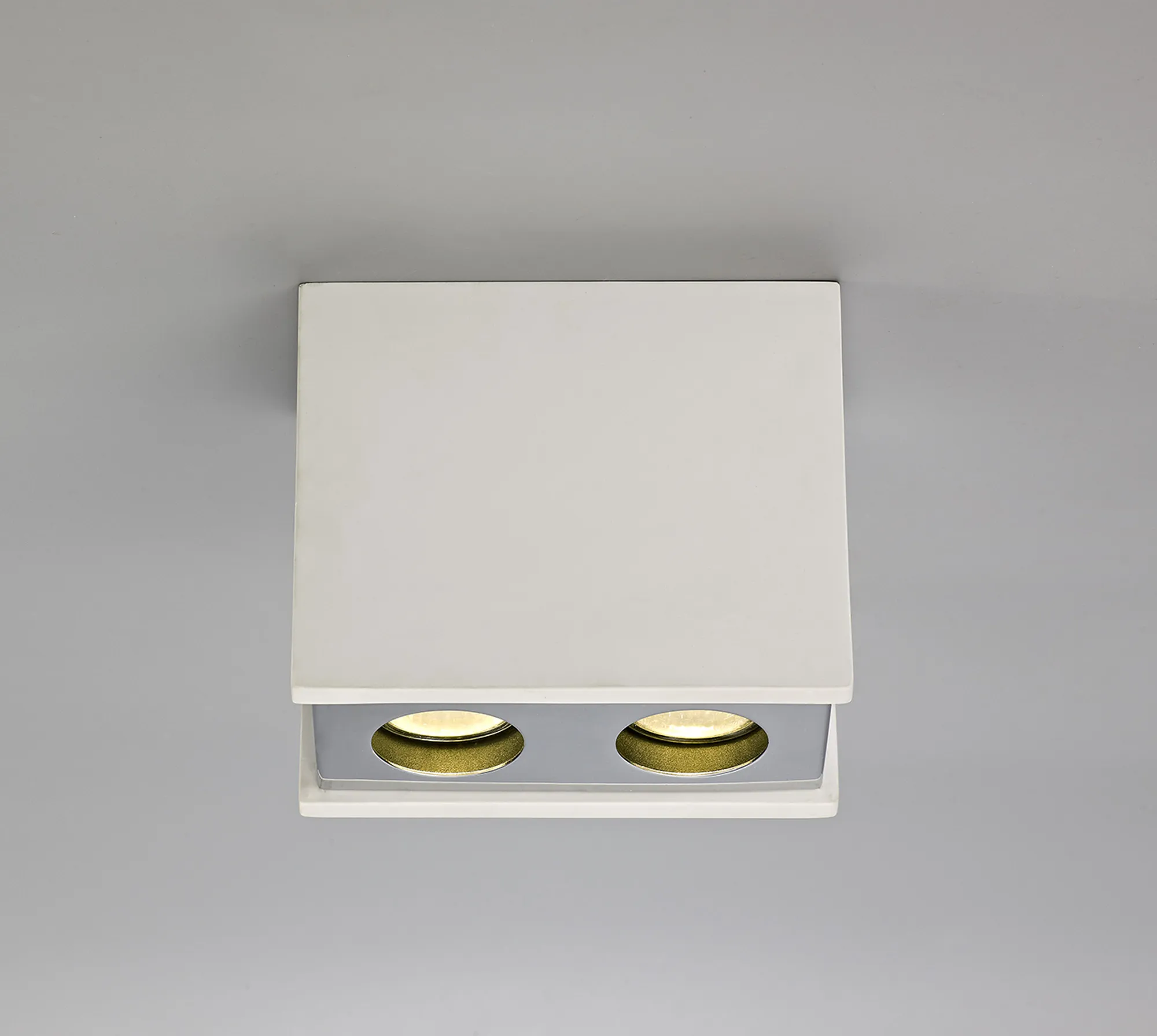 Otaki Rectangular Ceiling, 2 x GU10 (Max 25W), White Paintable Gypsum