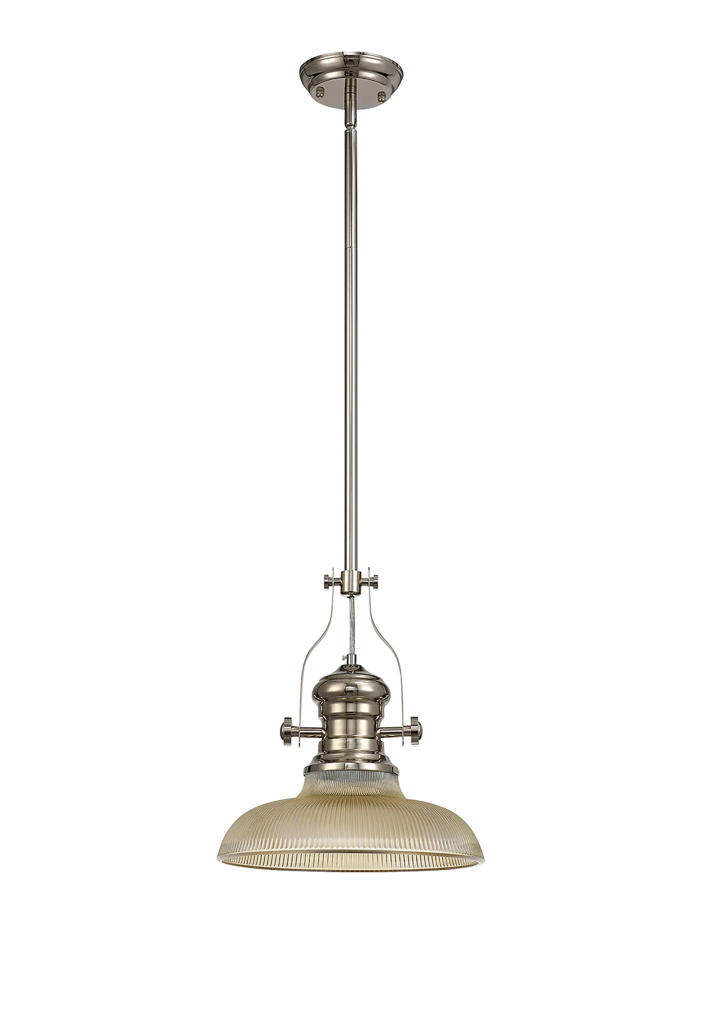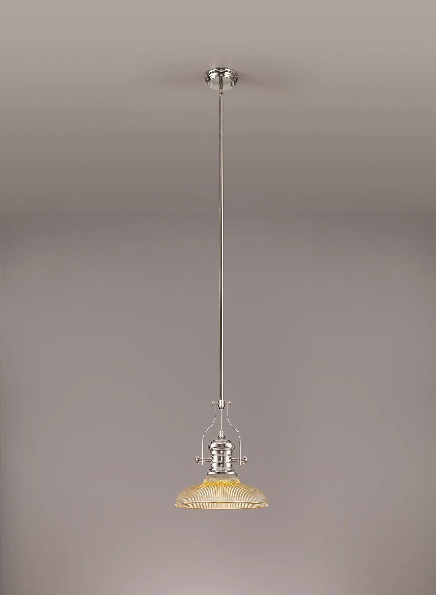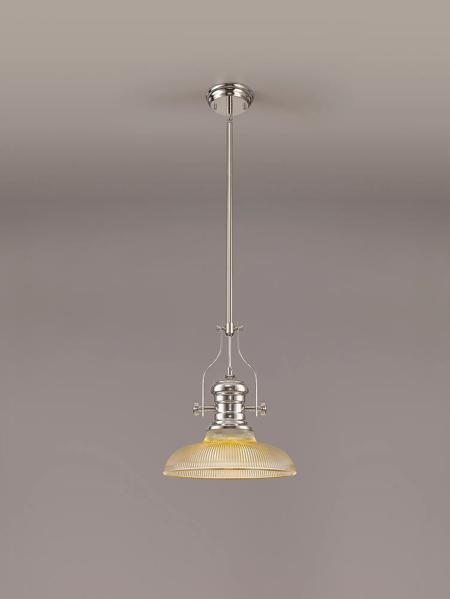 Snowdon 3 Light Linear Multi Height Pendant E27 With 30cm Round Glass Shade, Polished Nickel, Amber