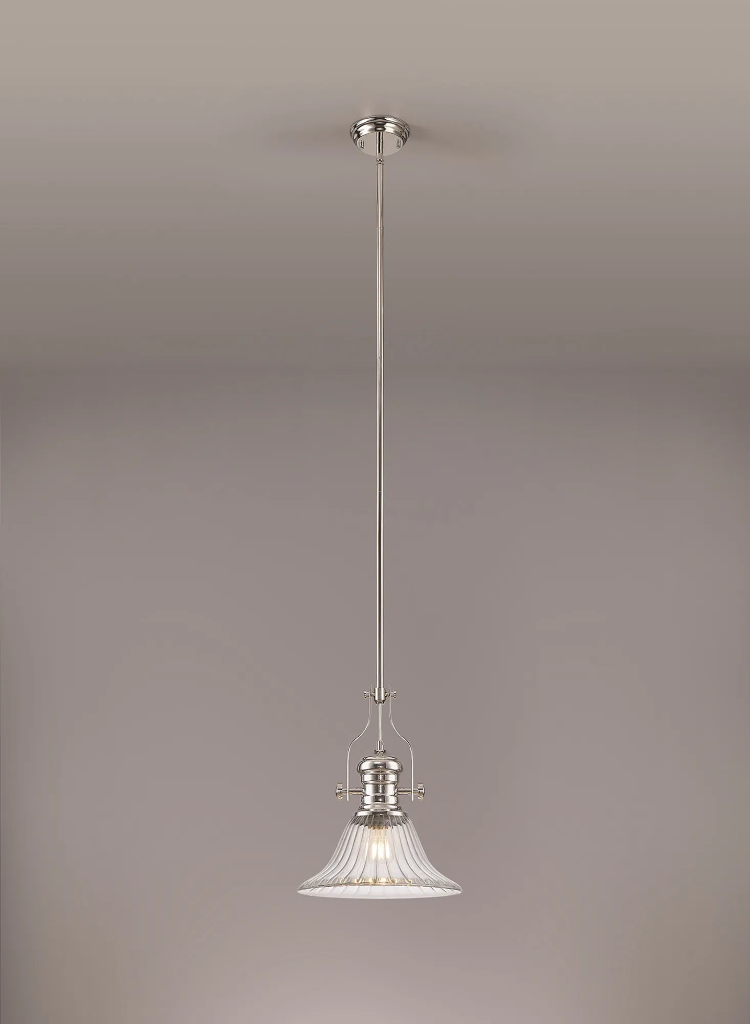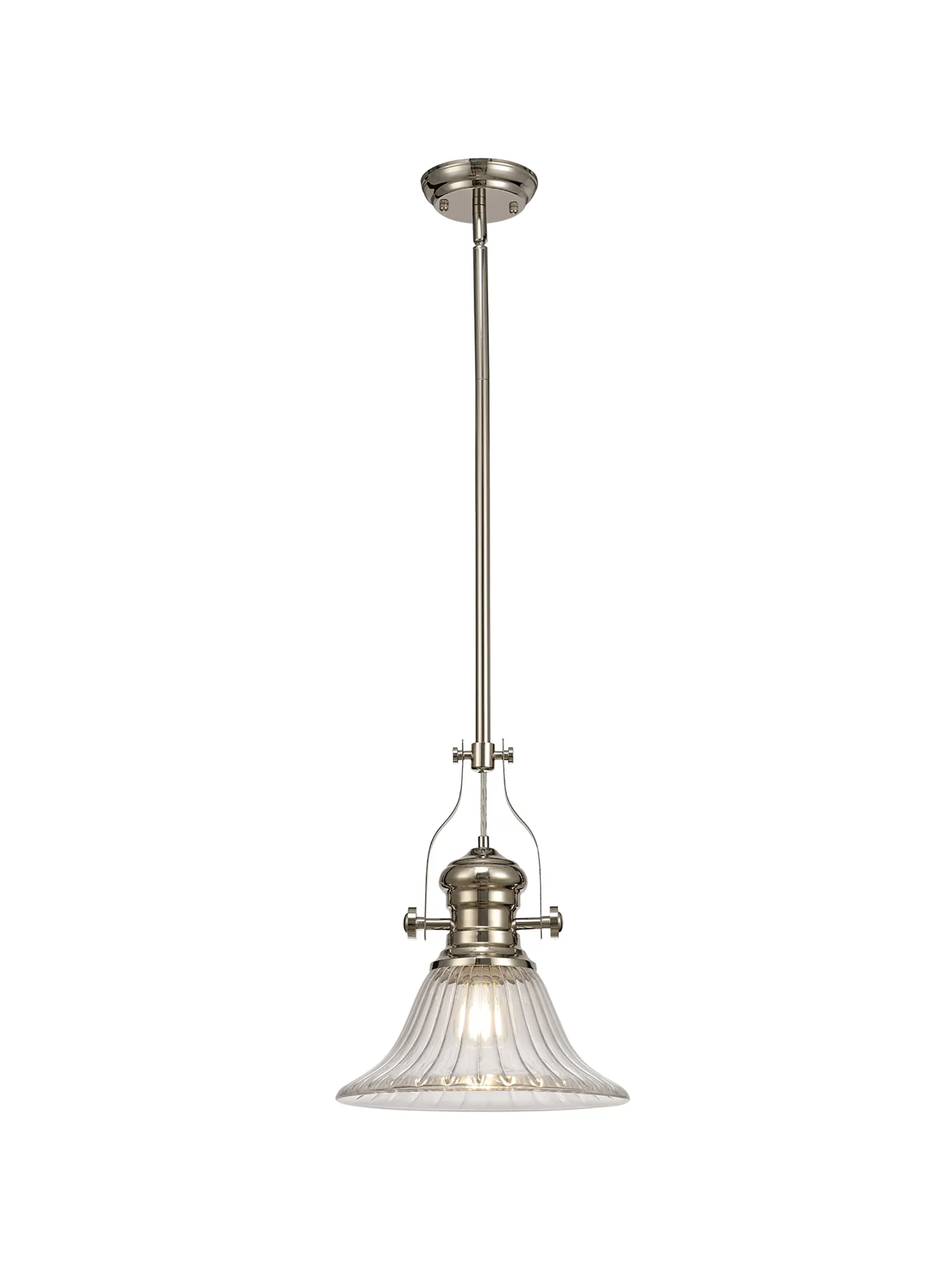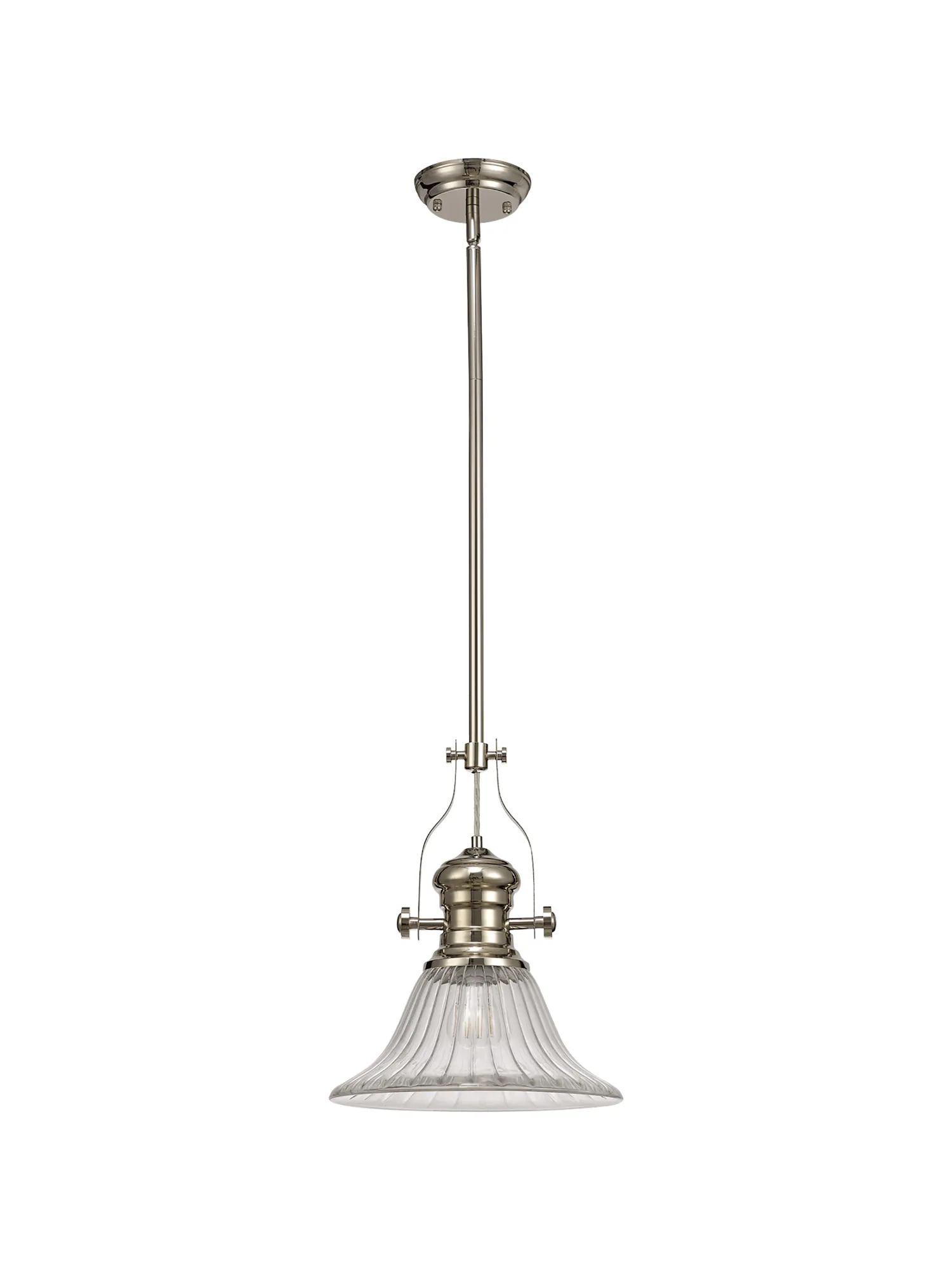 Snowdon Linear Multi Height Pendant With 30cm Flat Round Patterned Shade, 3 x E27, Polished Nickel/Clear Glass