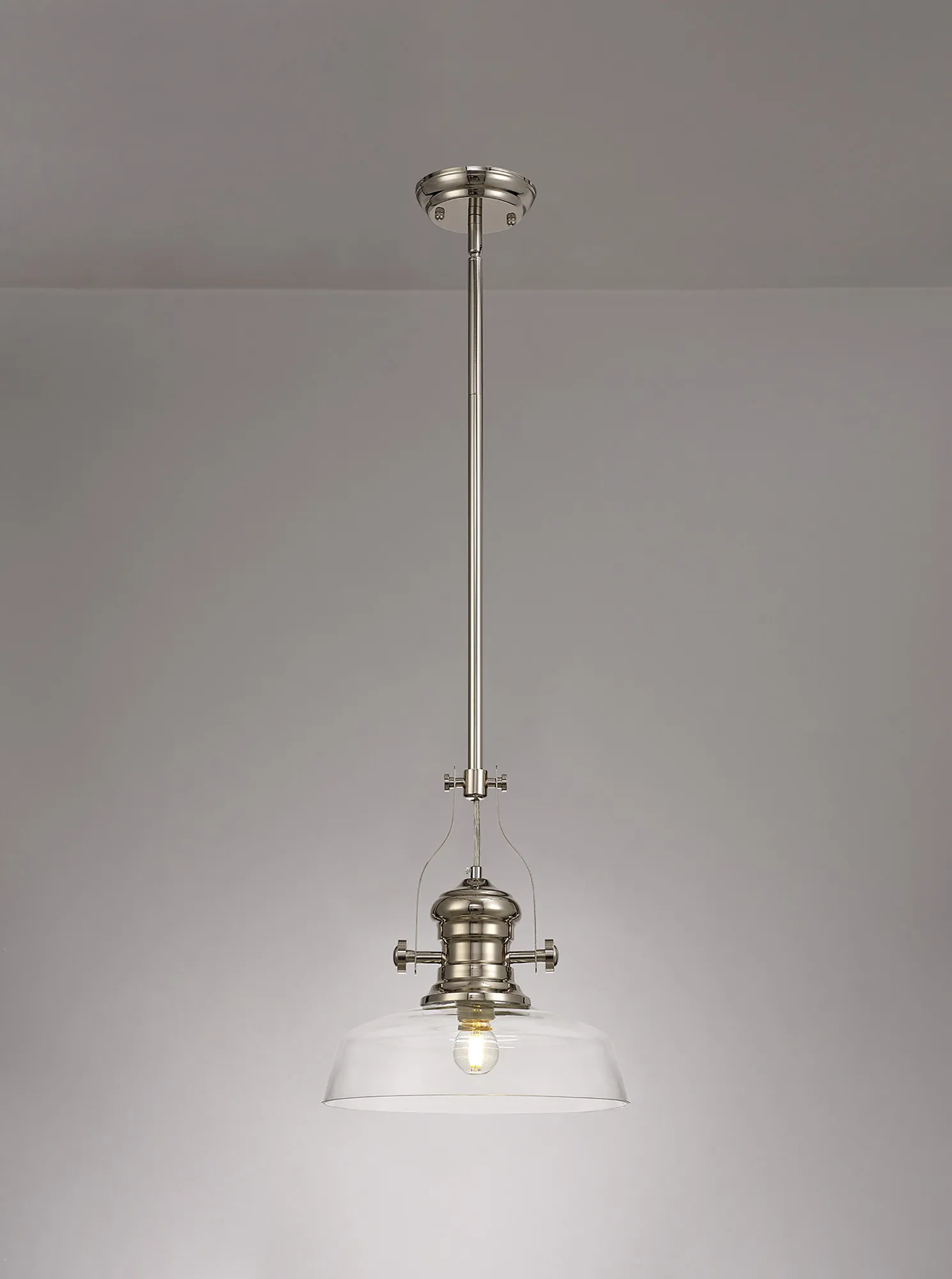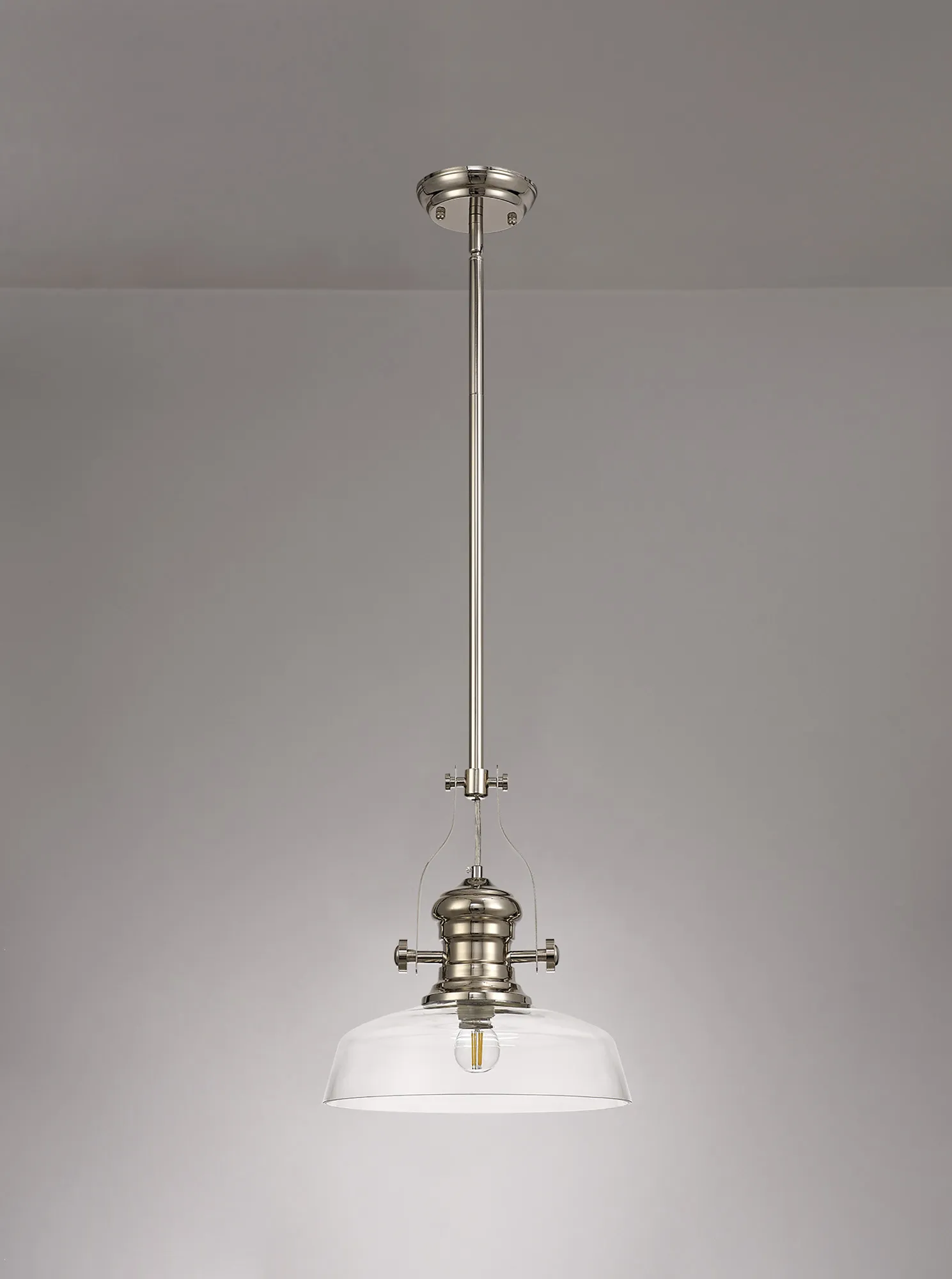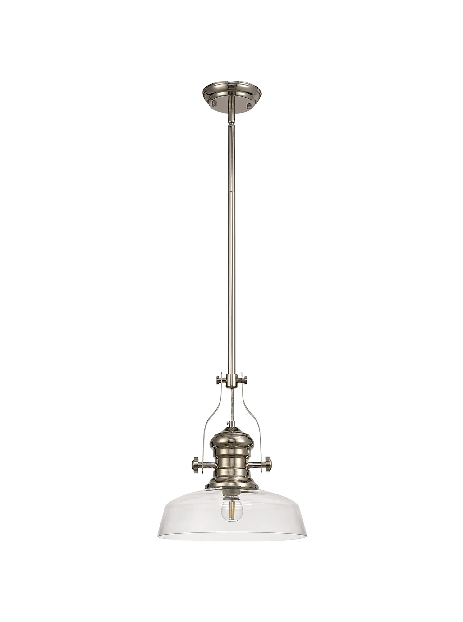Snowdon Linear Multi Height Pendant With 30cm Flat Round Patterned Shade, 3 x E27, Polished Nickel/Clear Glass
