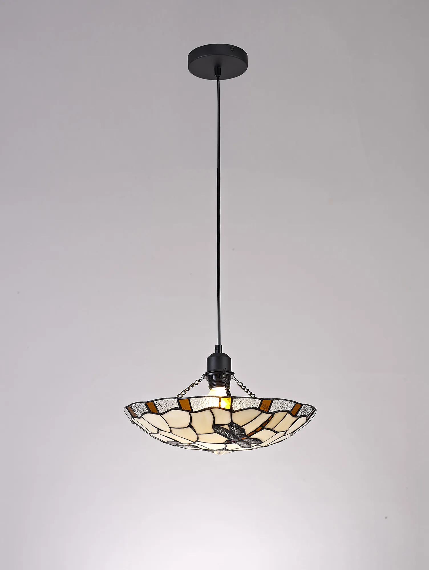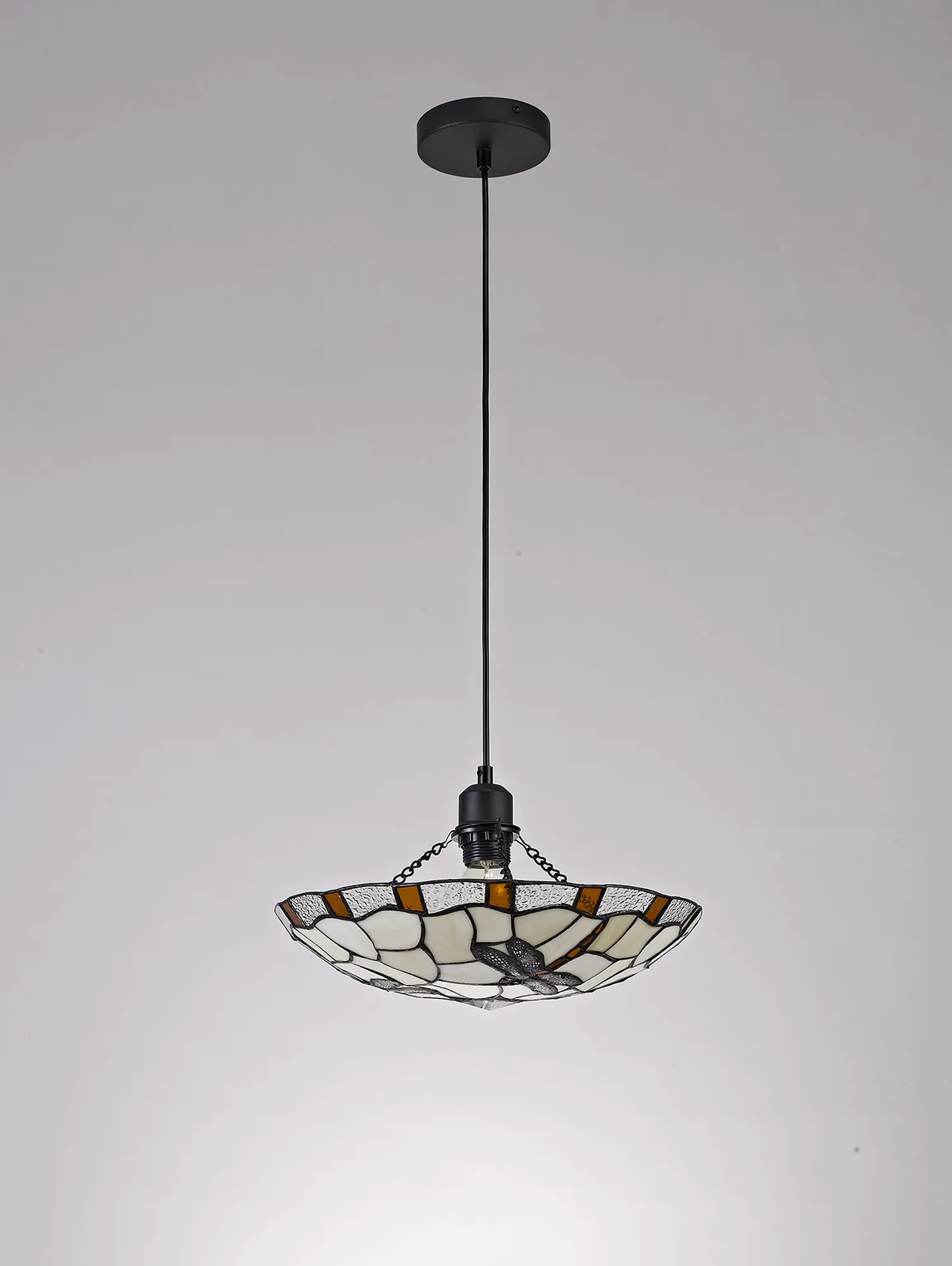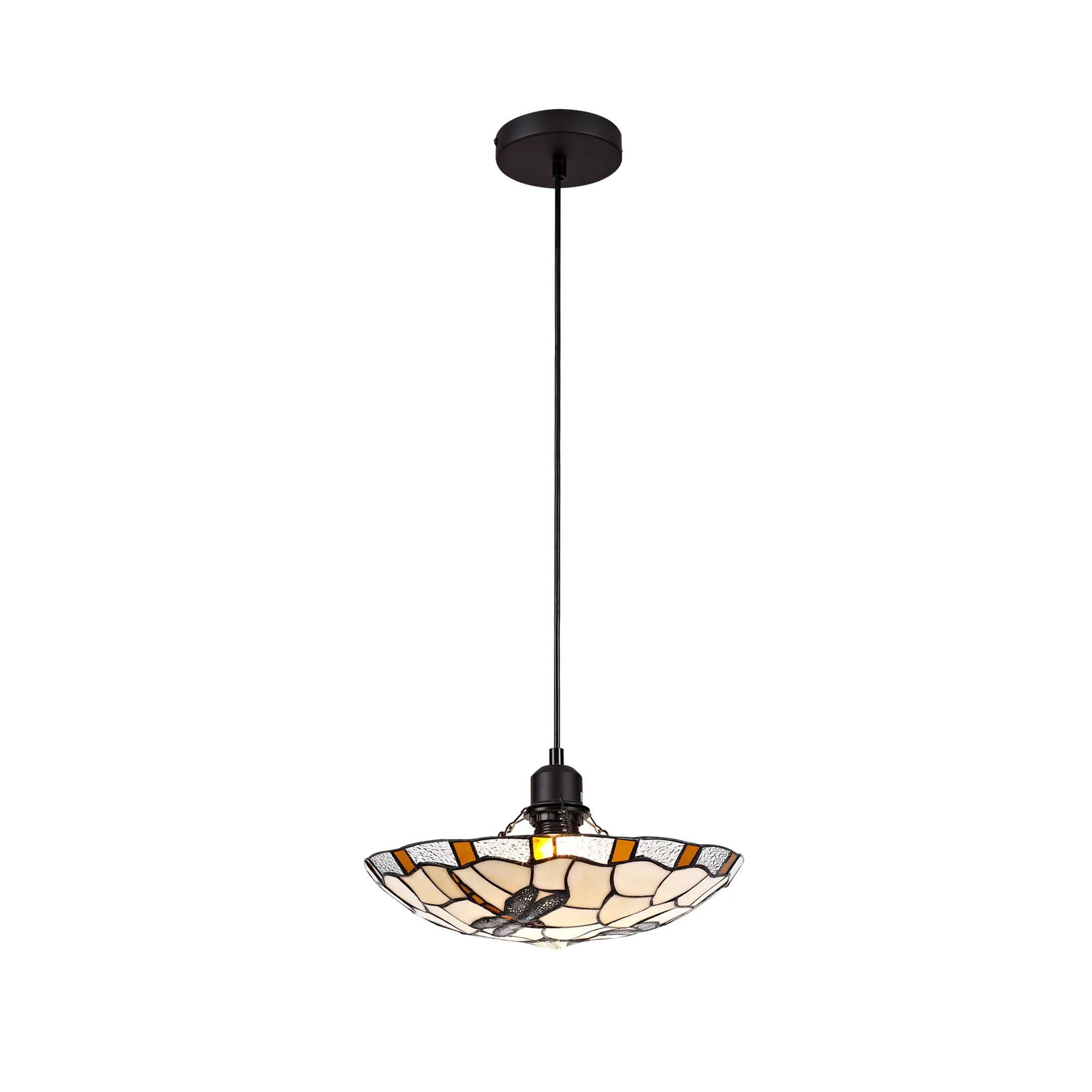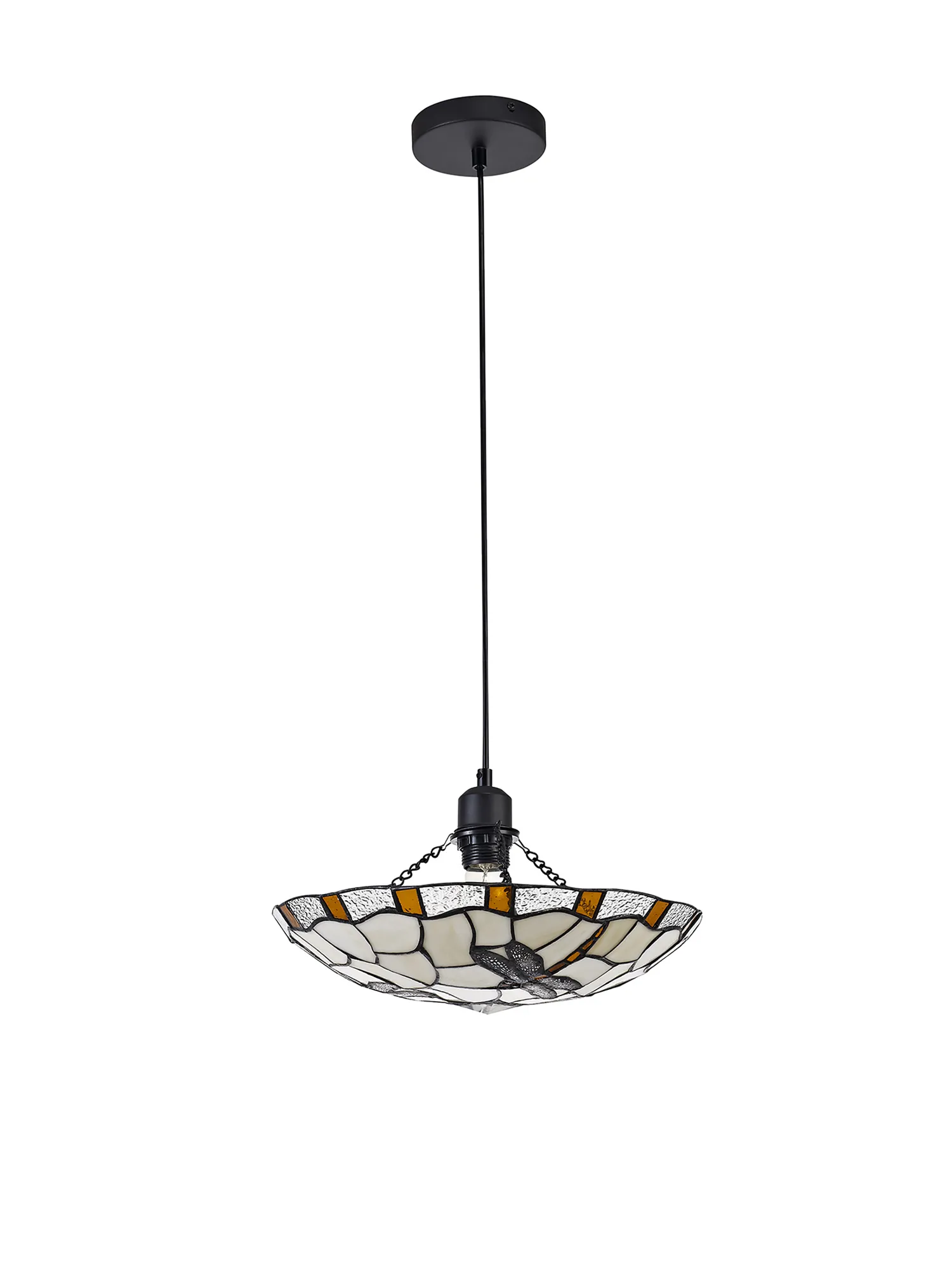 OTHER Nevis 1 Light Pendant E27 With 35cm Tiffany Shade, Amber/Cream/Clear Crystal/Black