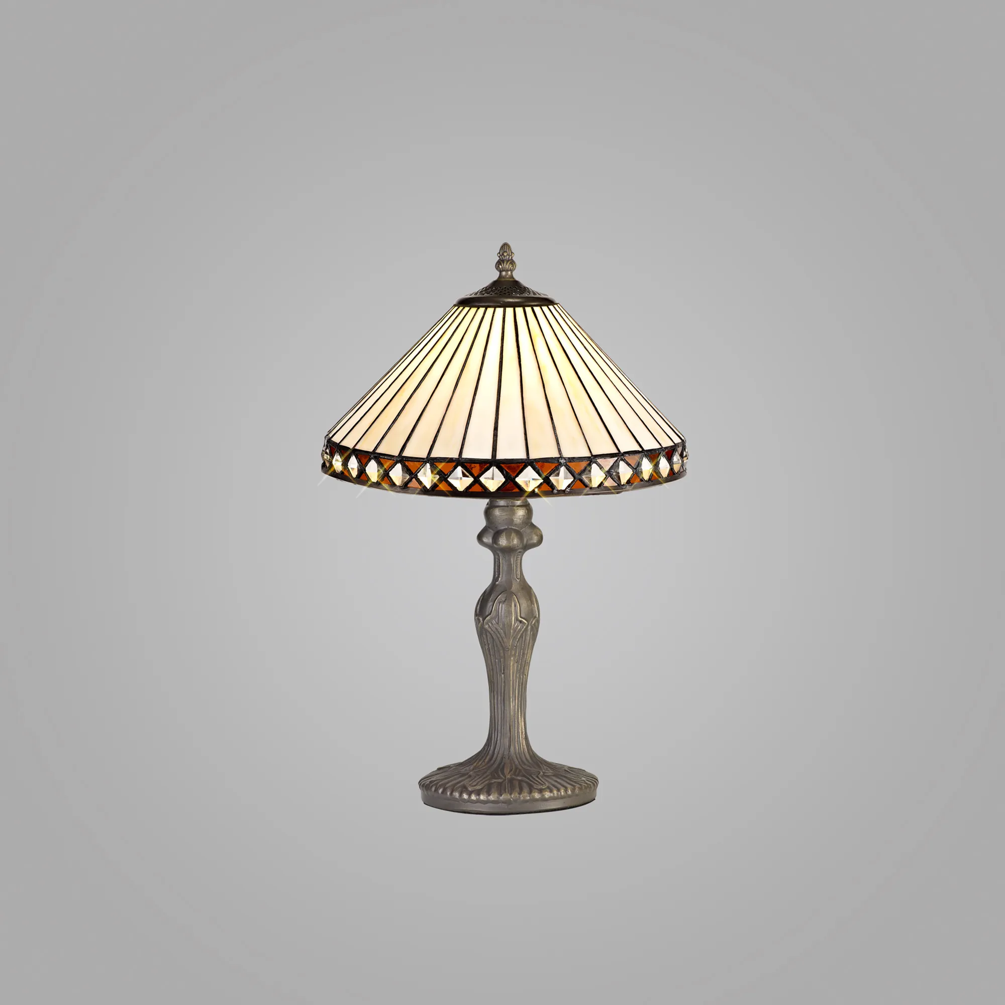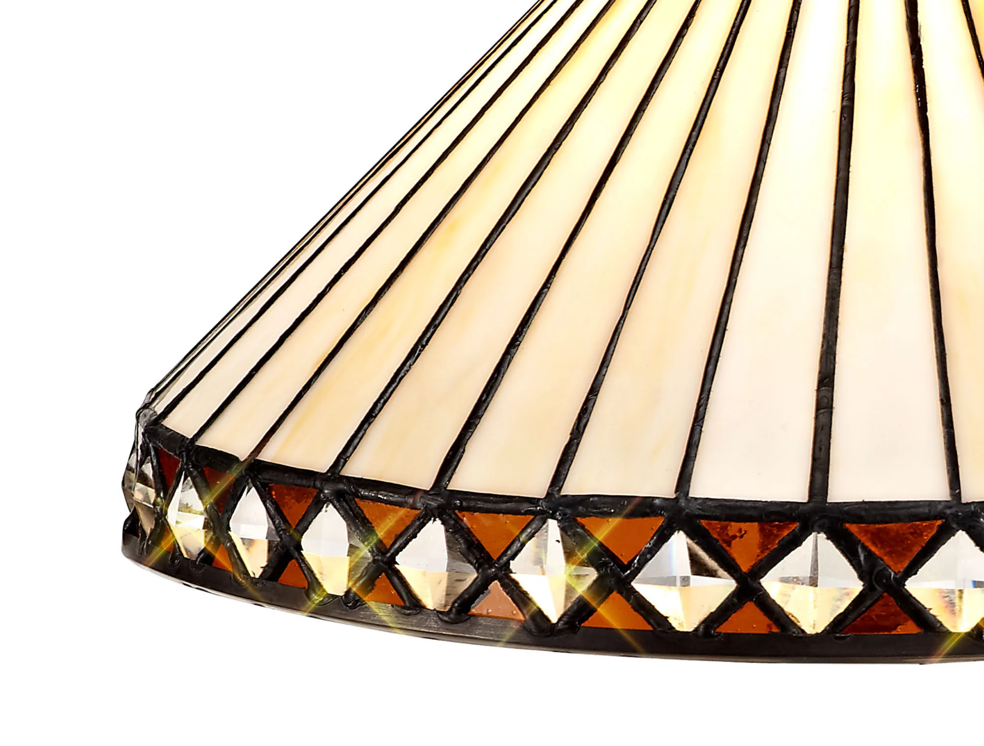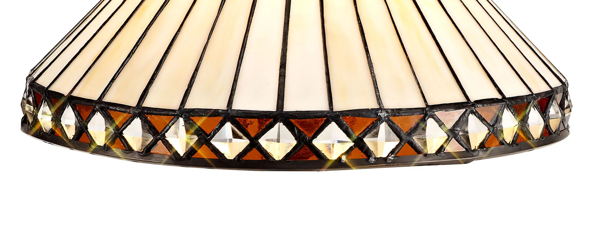 OTHER Wattle 1 Light Curved Table Lamp E27 With 30cm Tiffany Shade, Amber/Cream/Crystal/Aged Antique Brass