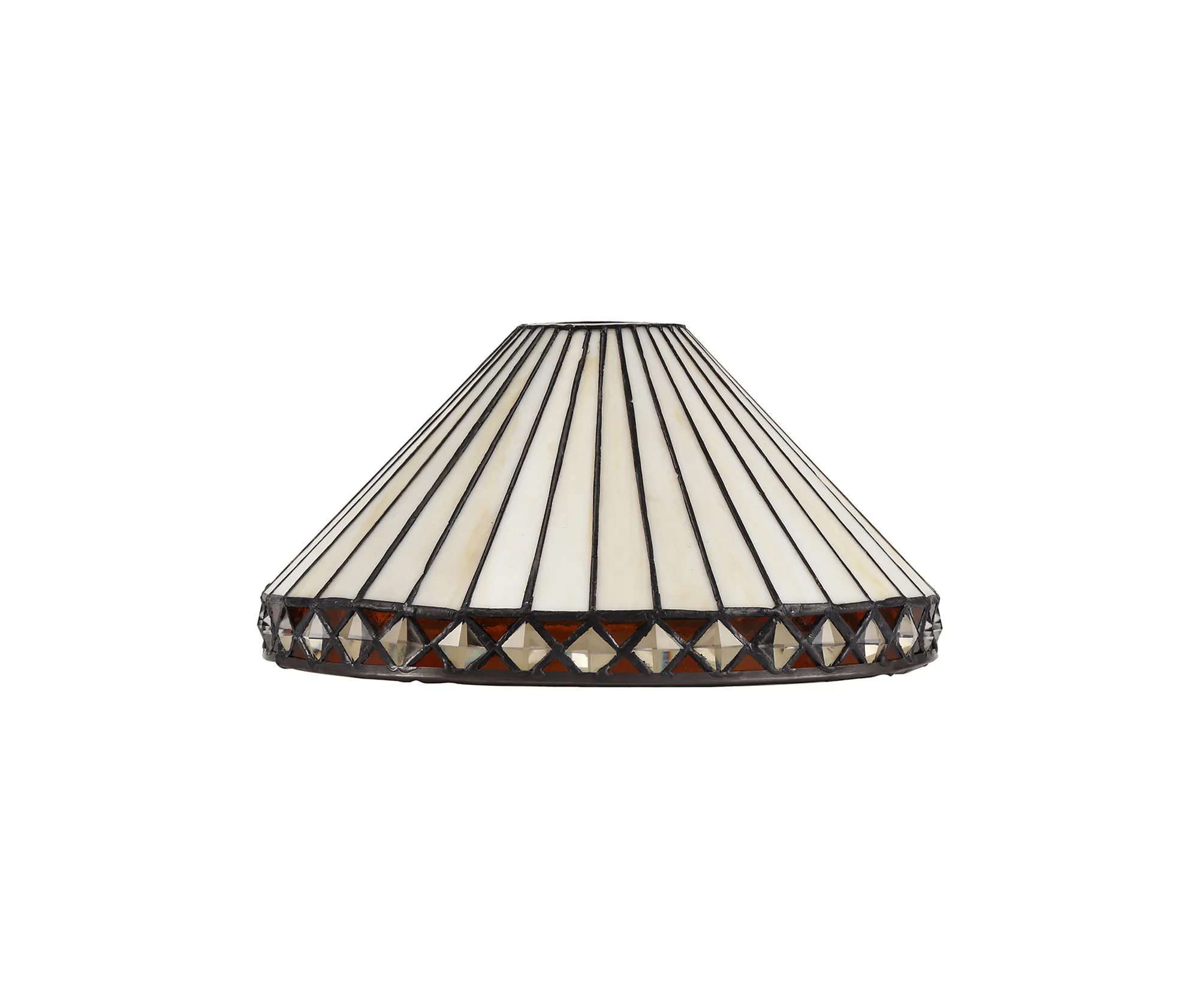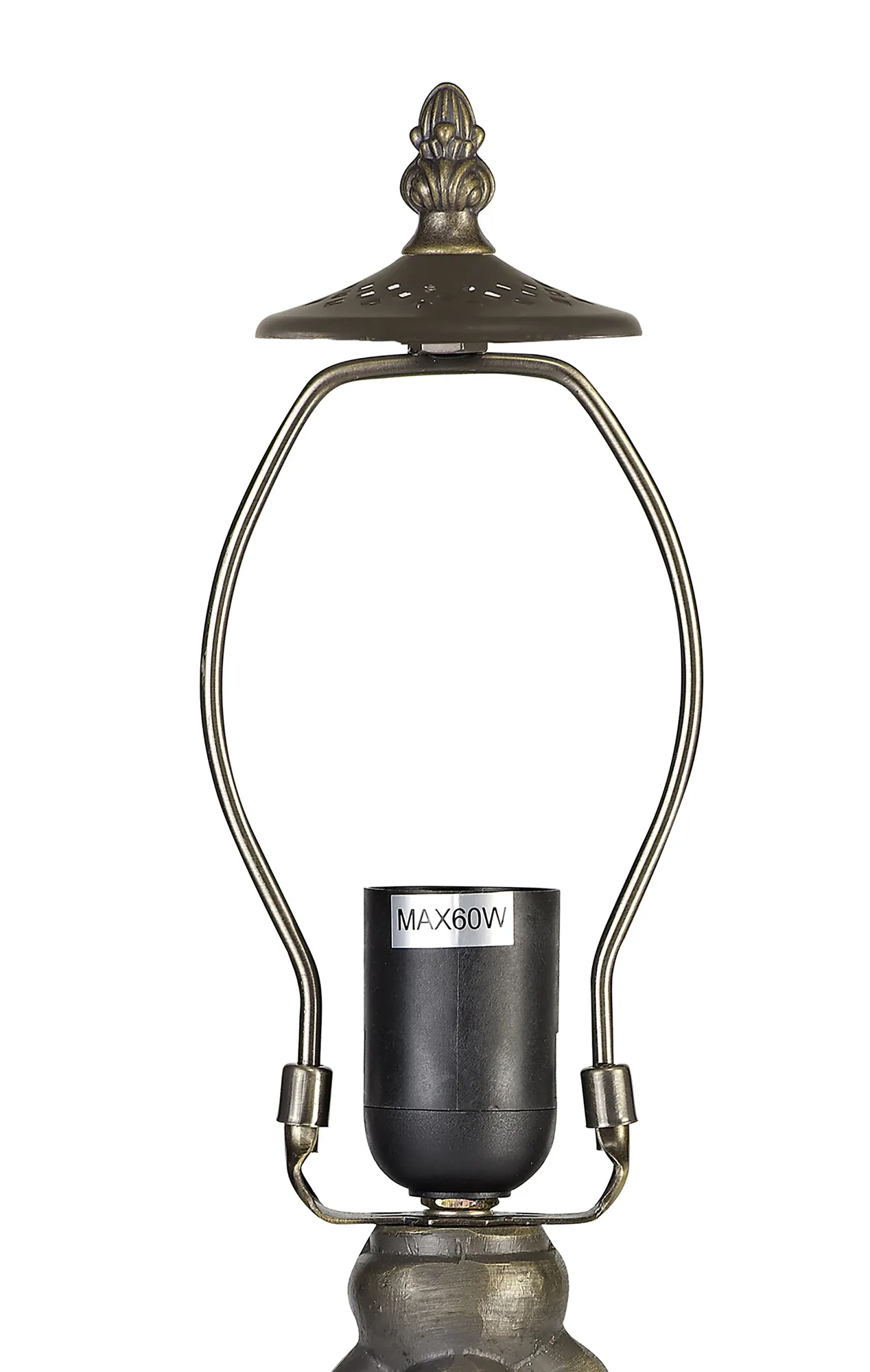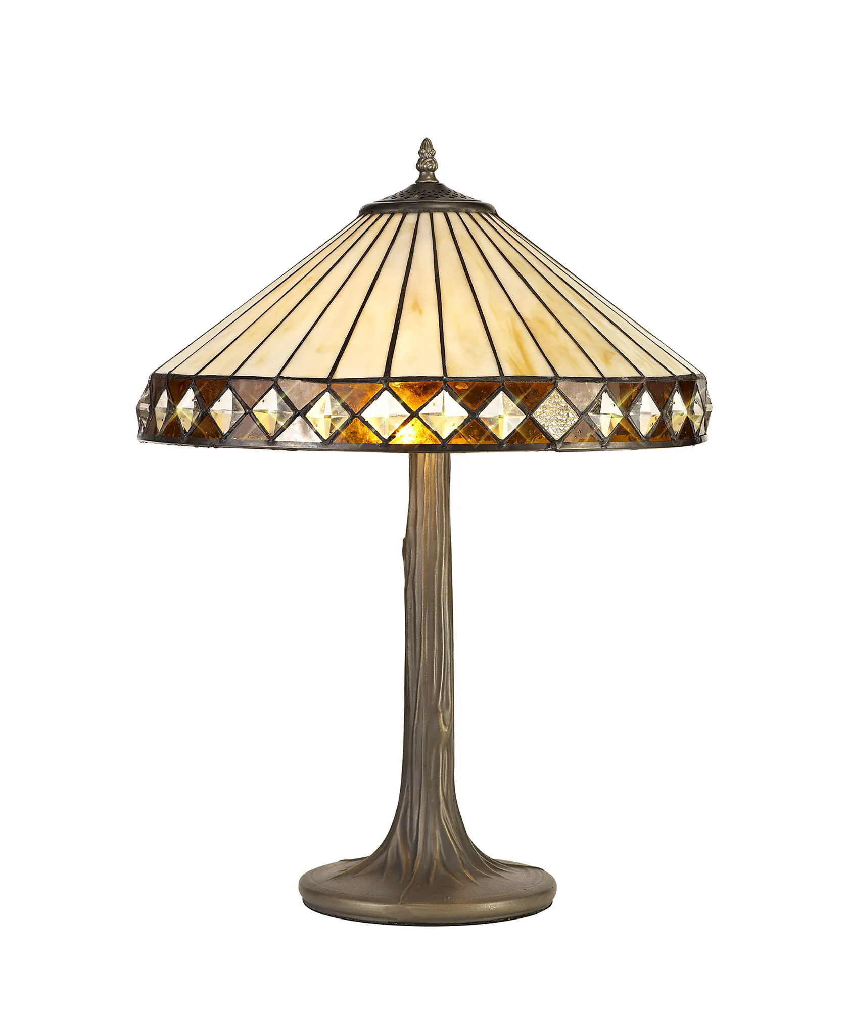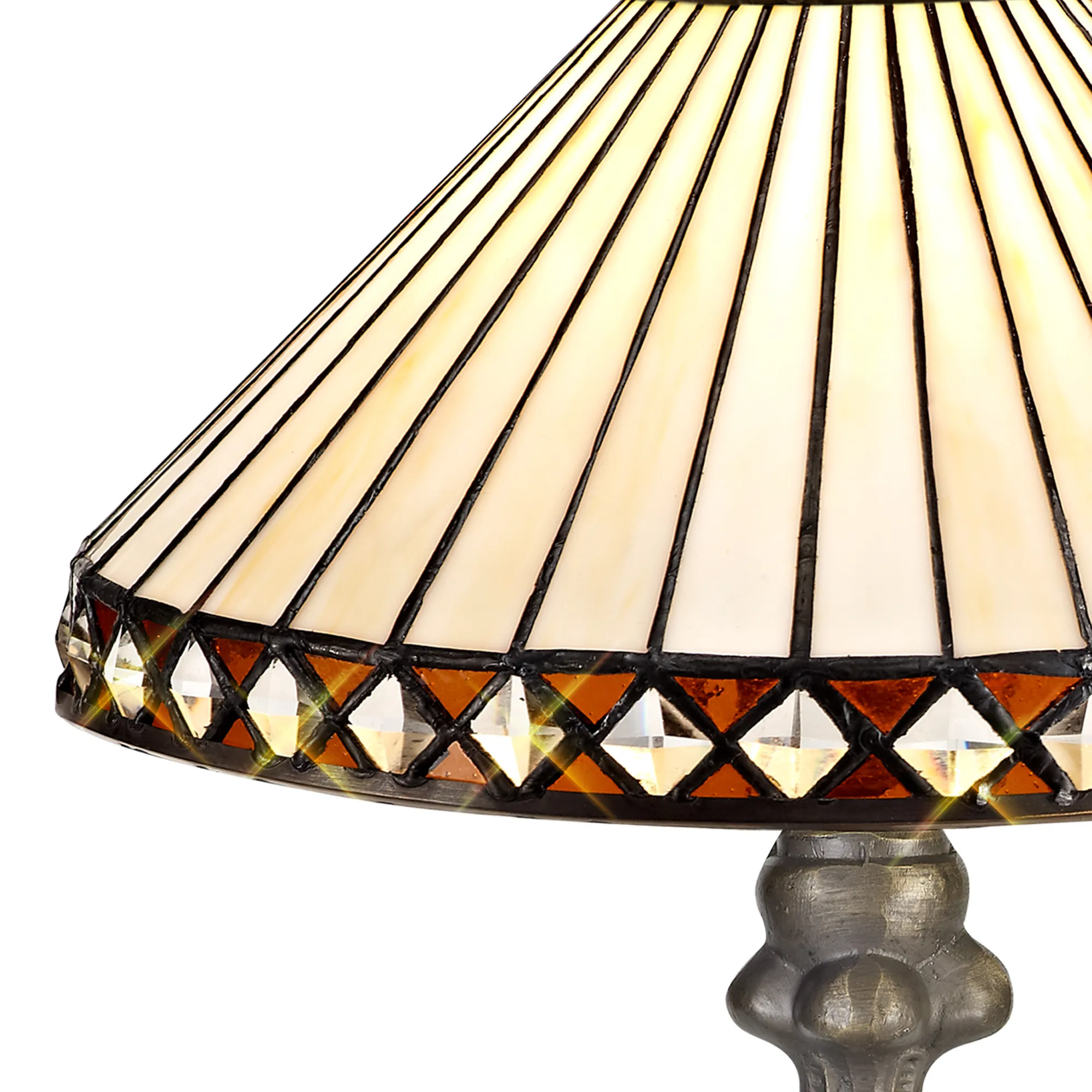 OTHER Wattle 1 Light Curved Table Lamp E27 With 30cm Tiffany Shade, Amber/Cream/Crystal/Aged Antique Brass