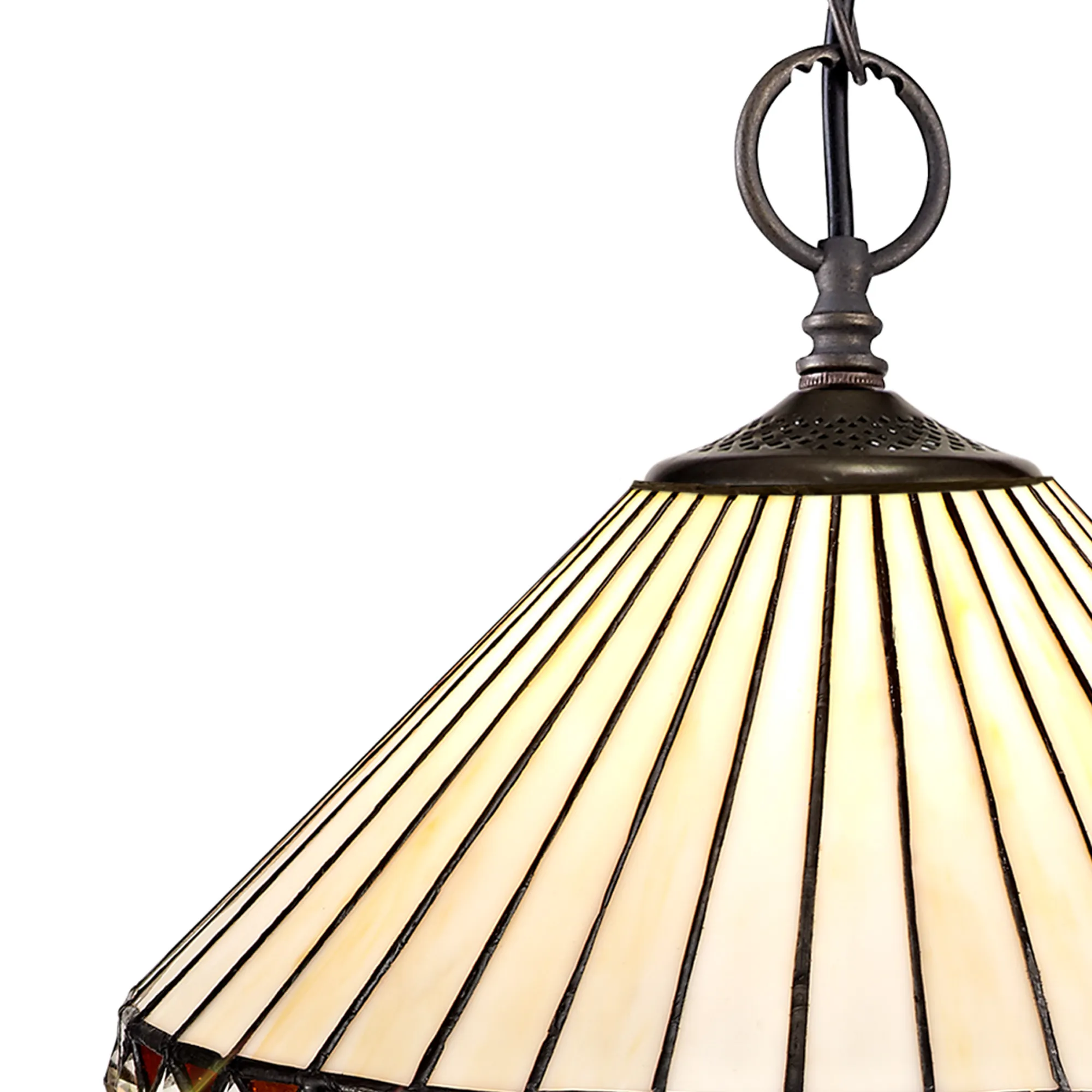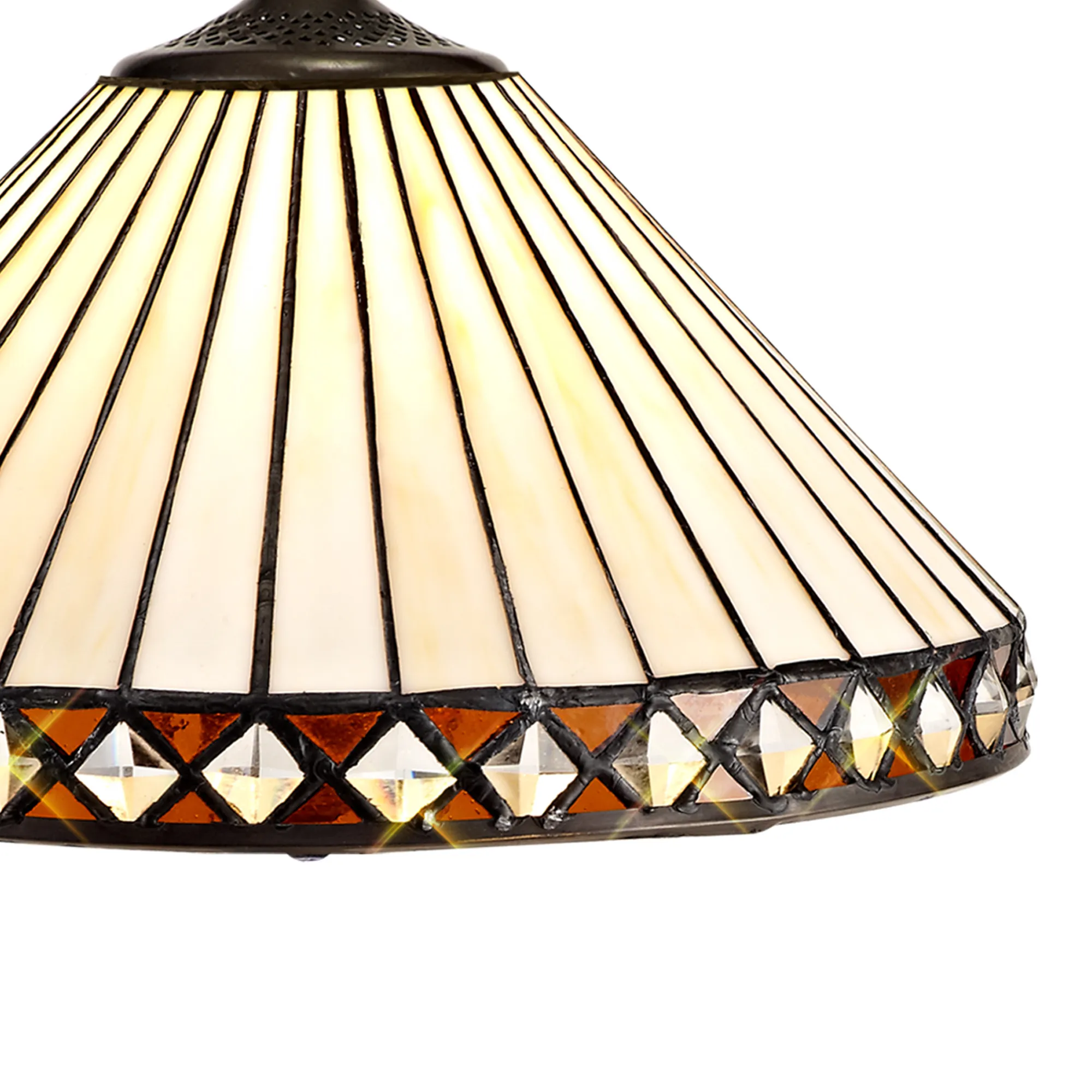 OTHER Wattle 2 Light Downlighter Pendant E27 With 30cm Tiffany Shade, Amber/Cream/Crystal/Aged Antique Brass