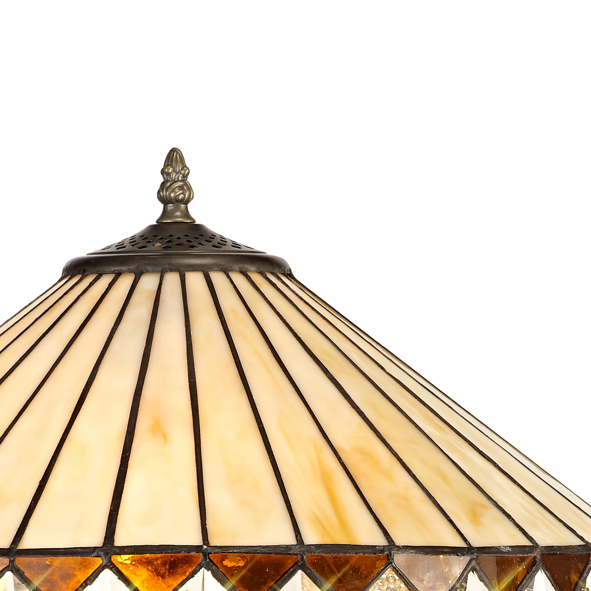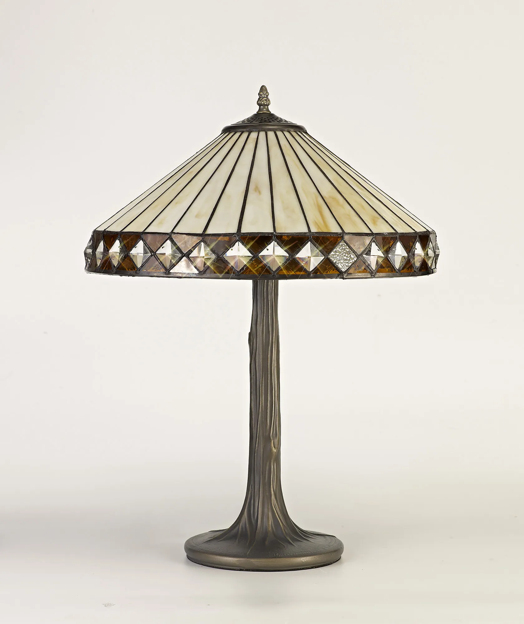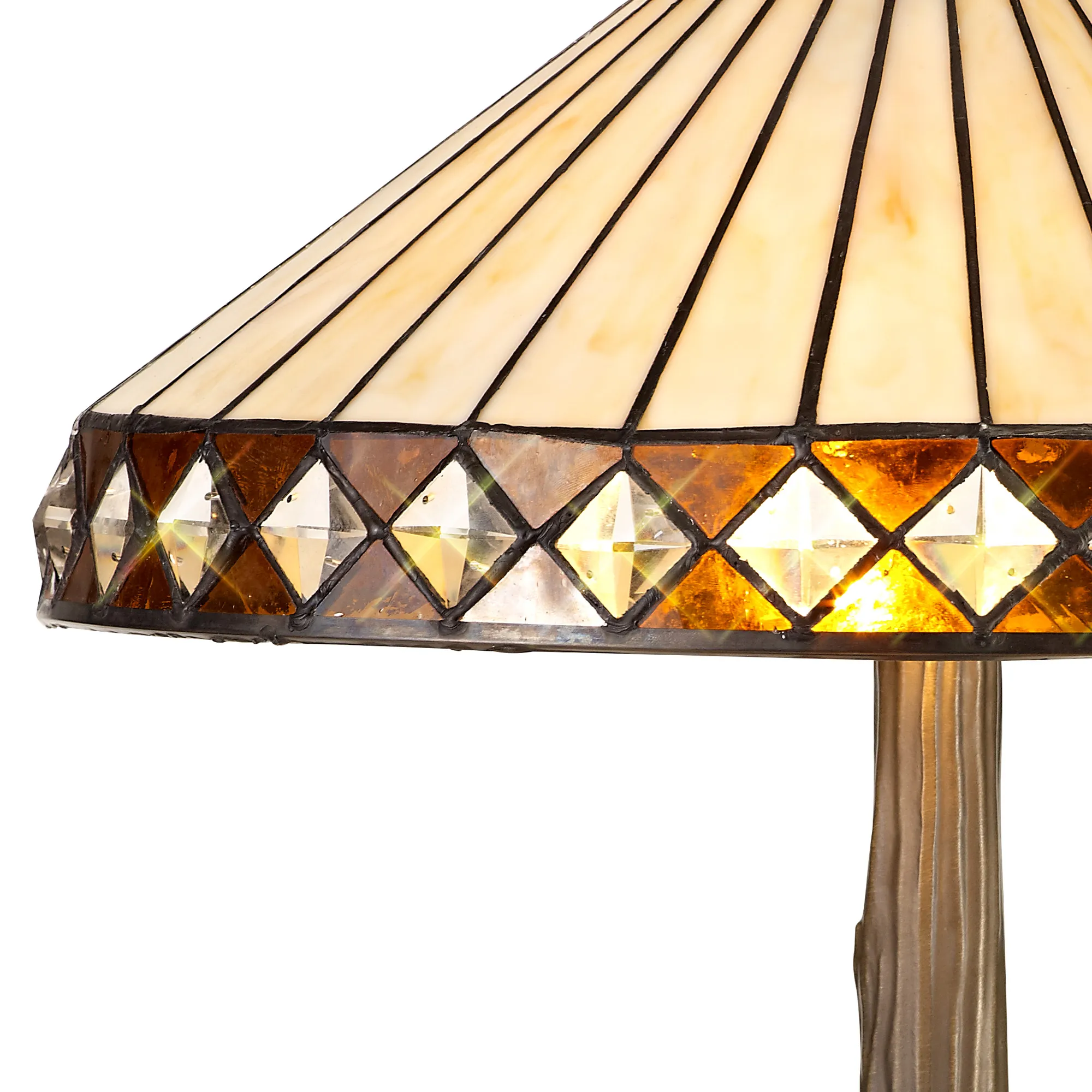 OTHER Wattle 2 Light Tree Like Table Lamp E27 With 40cm Tiffany Shade, Amber/Cream/Crystal/Aged Antique Brass