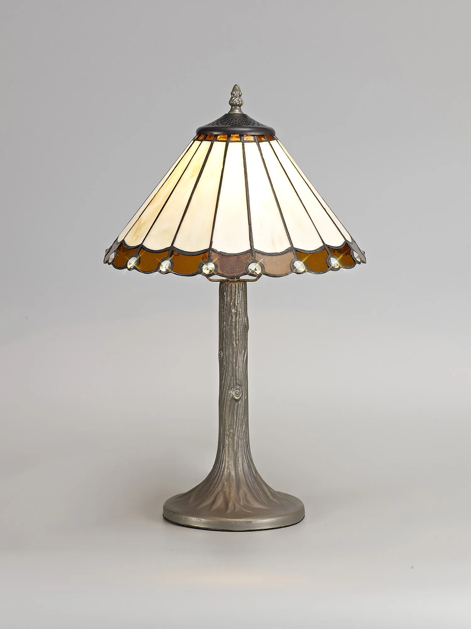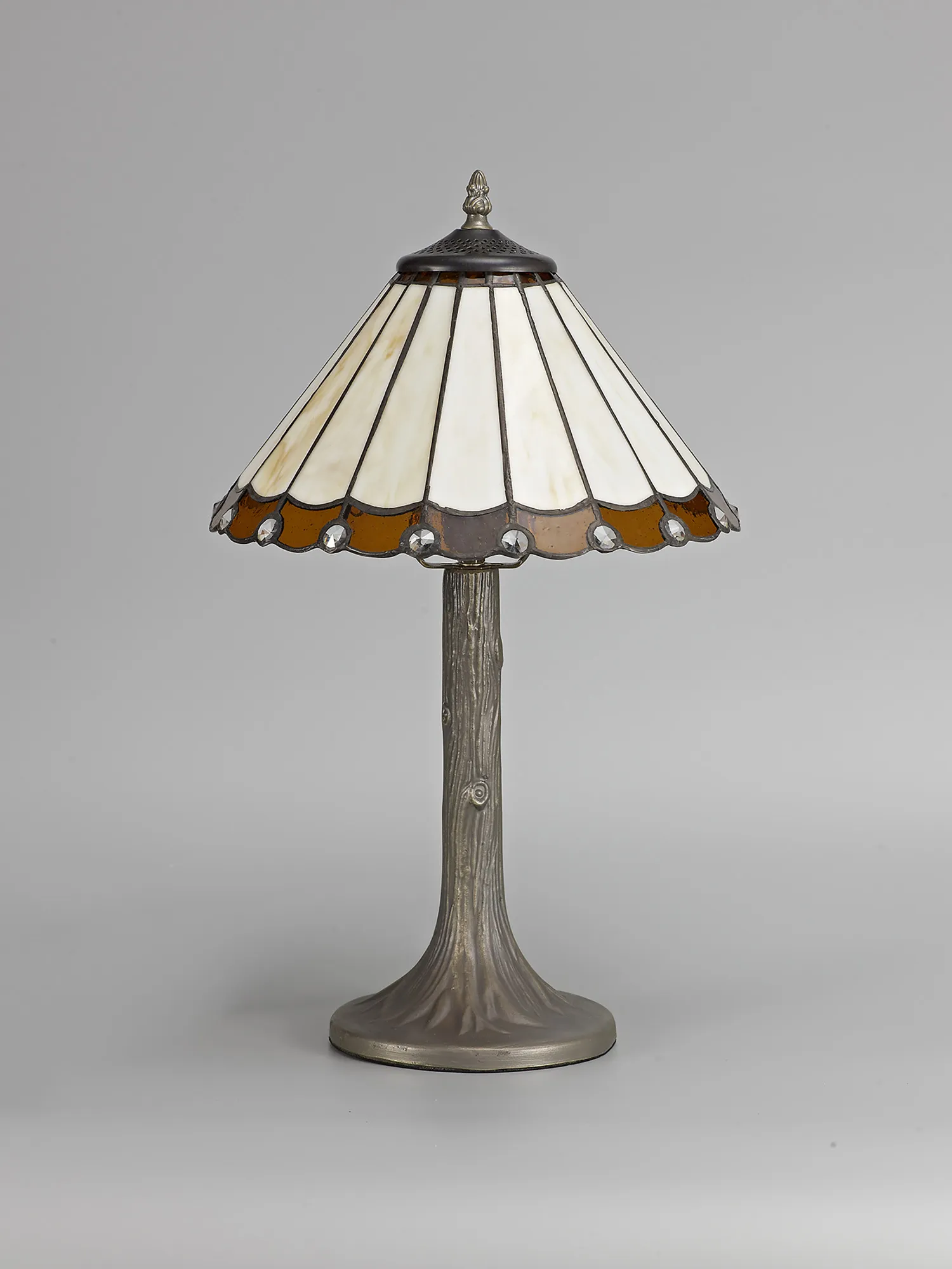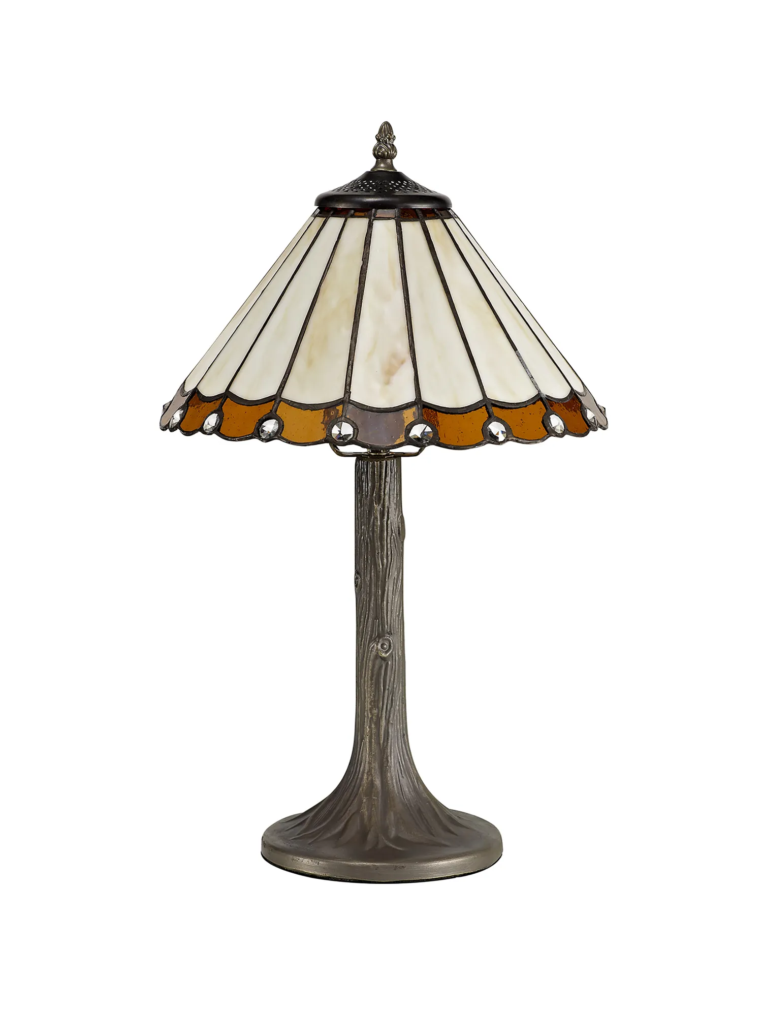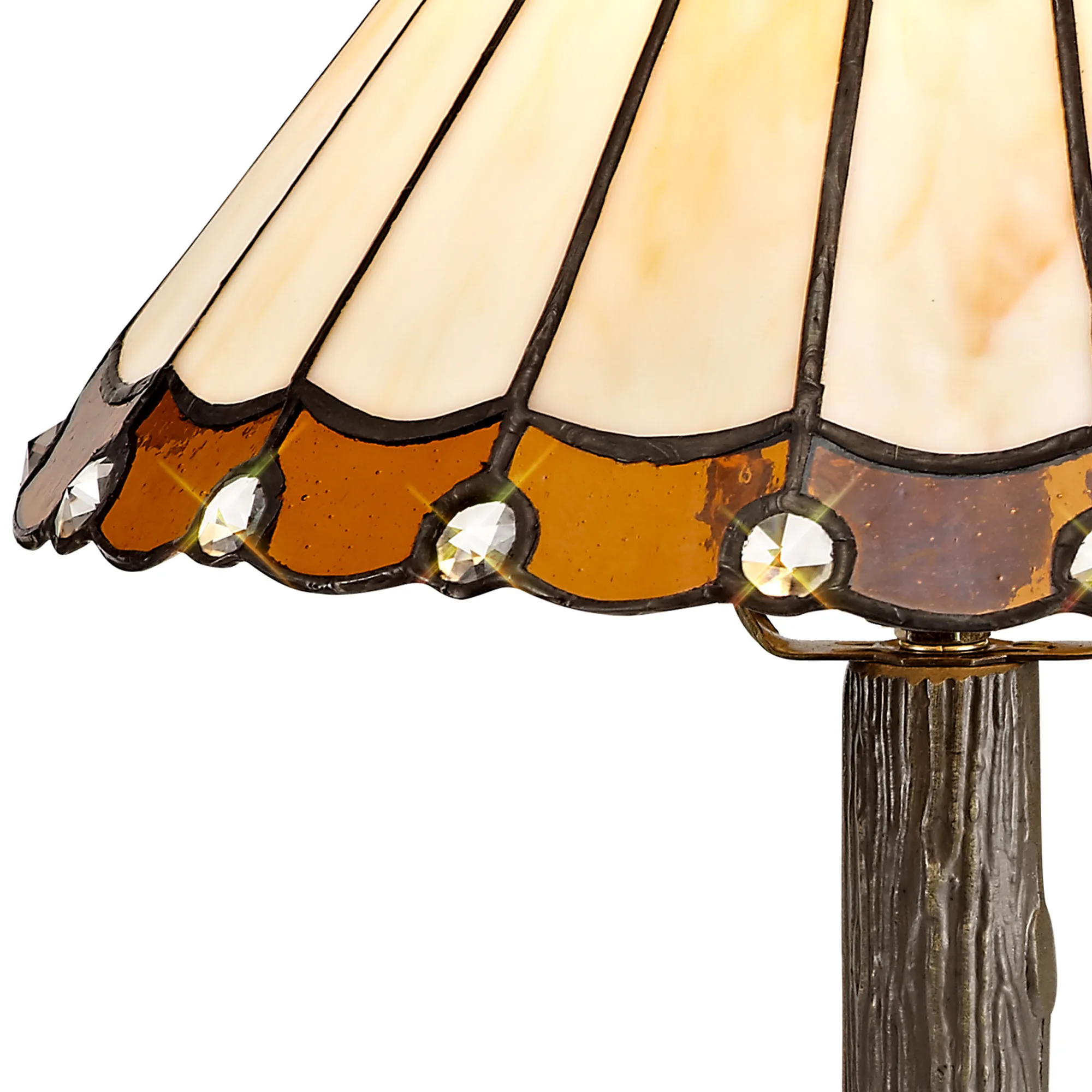 OTHER Farquhar 1 Light Tree Like Table Lamp E27 With 30cm Tiffany Shade, Amber/Cream/Crystal/Aged Antique Brass