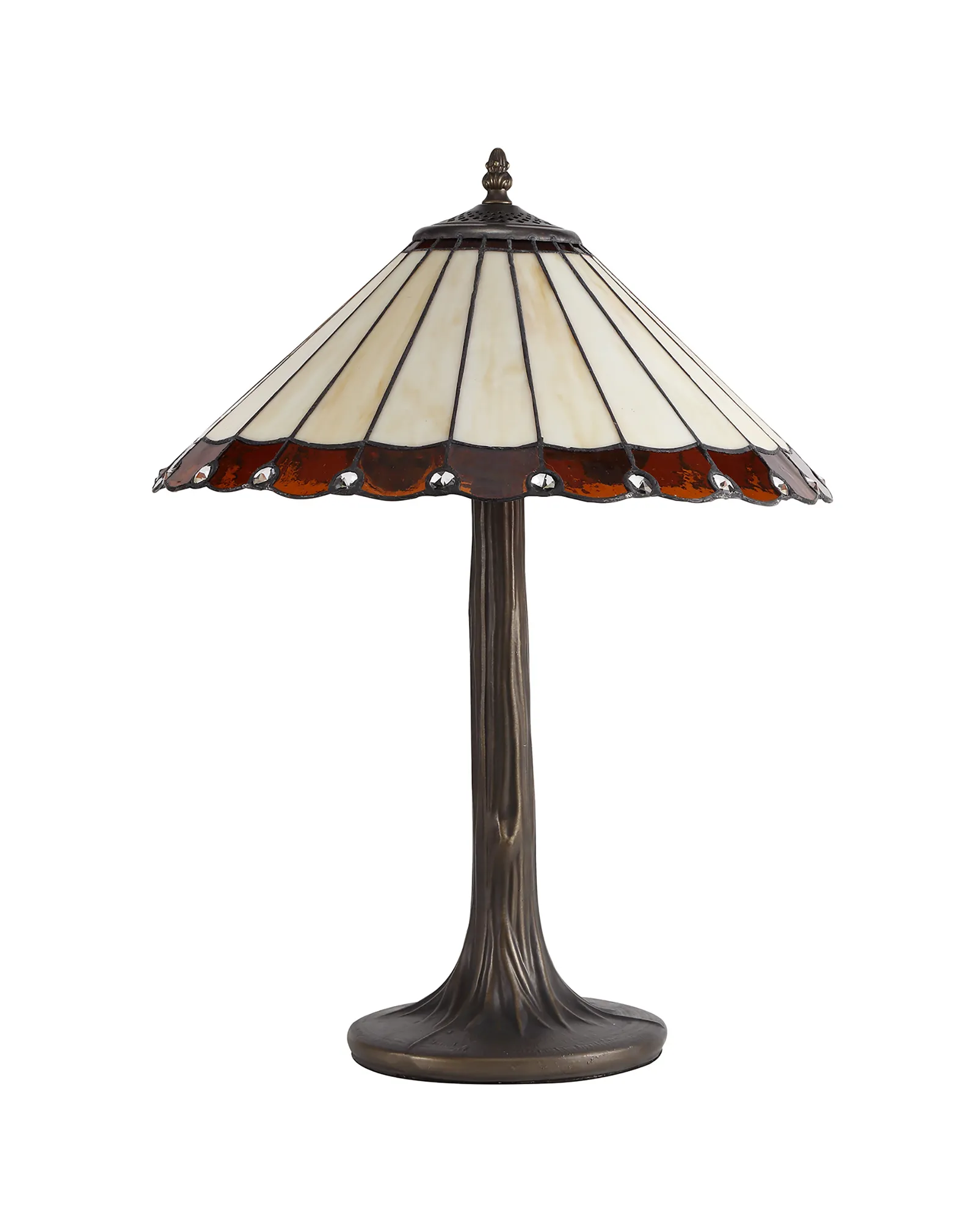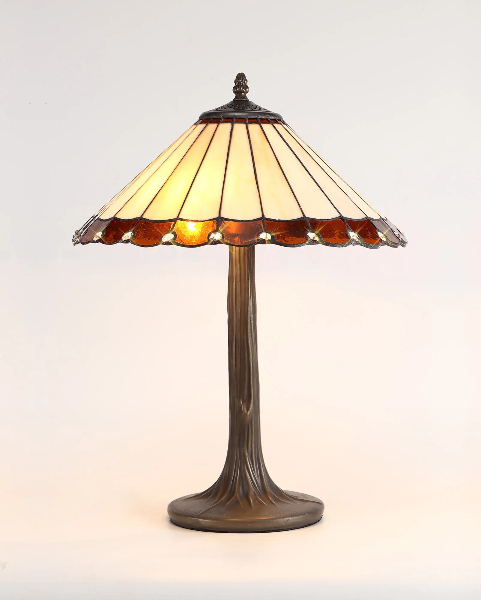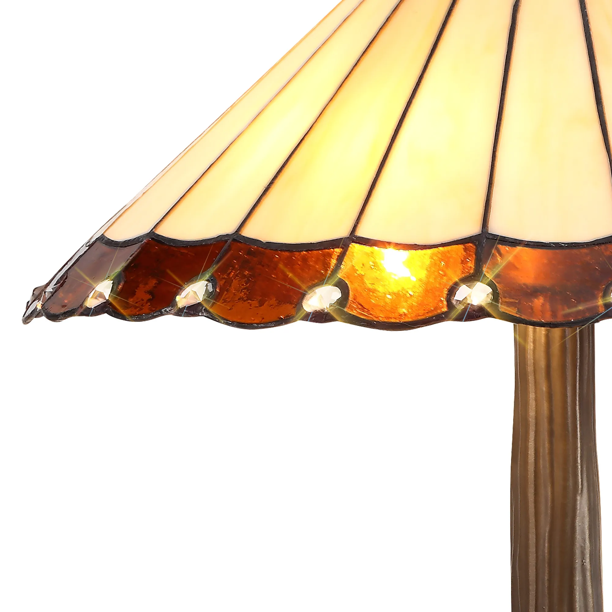 OTHER Farquhar 2 Light Curved Table Lamp E27 With 40cm Tiffany Shade, Amber/Cream/Crystal/Aged Antique Brass