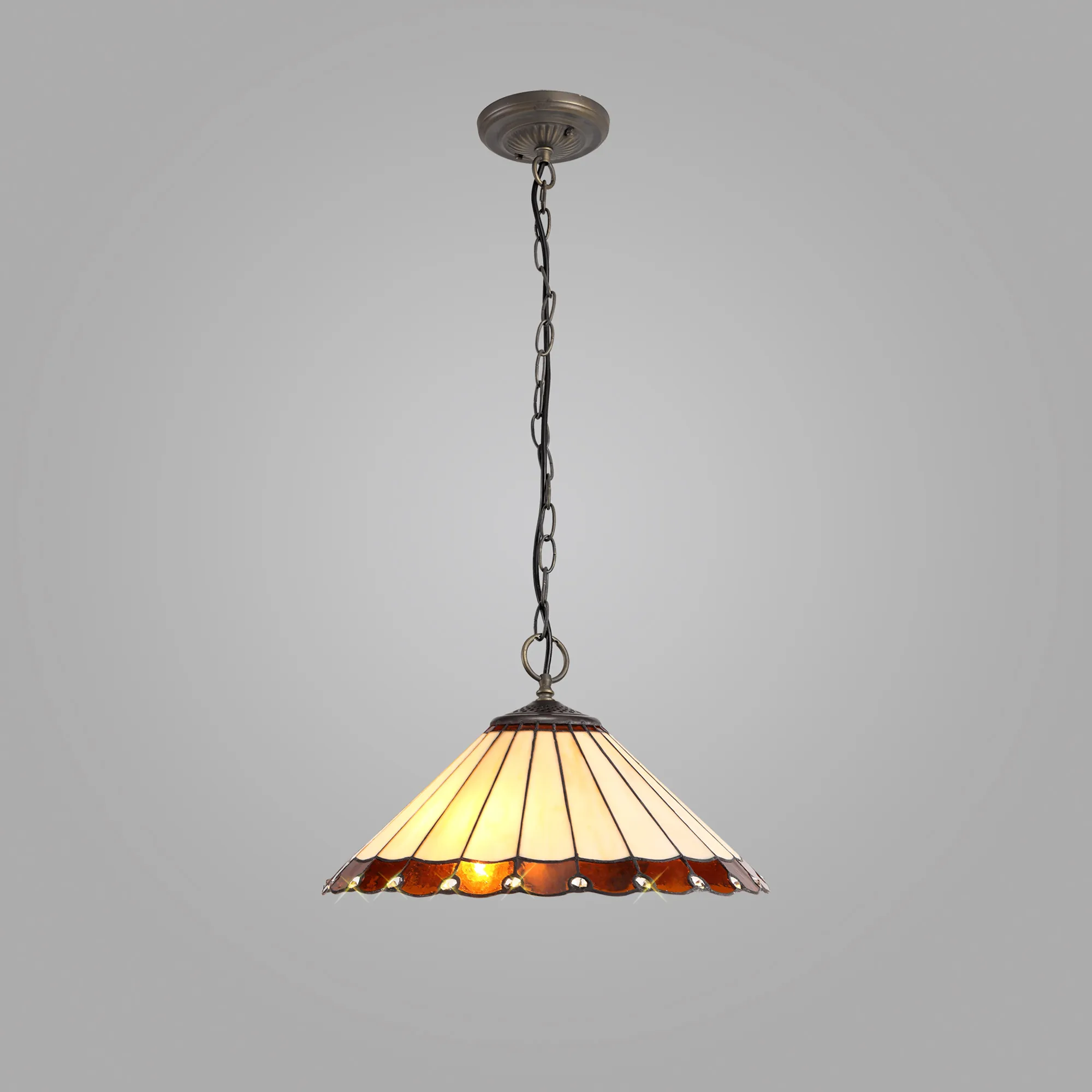 OTHER Farquhar 3 Light Downlighter Pendant E27 With 40cm Tiffany Shade, Amber/Cream/Crystal/Aged Antique Brass