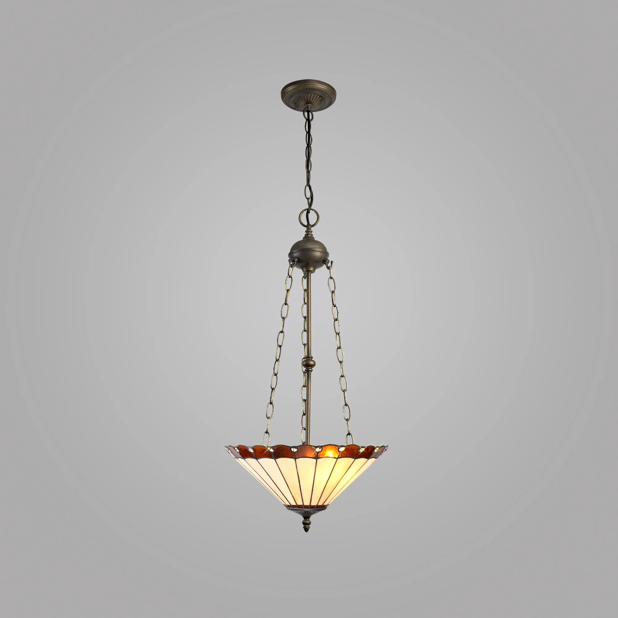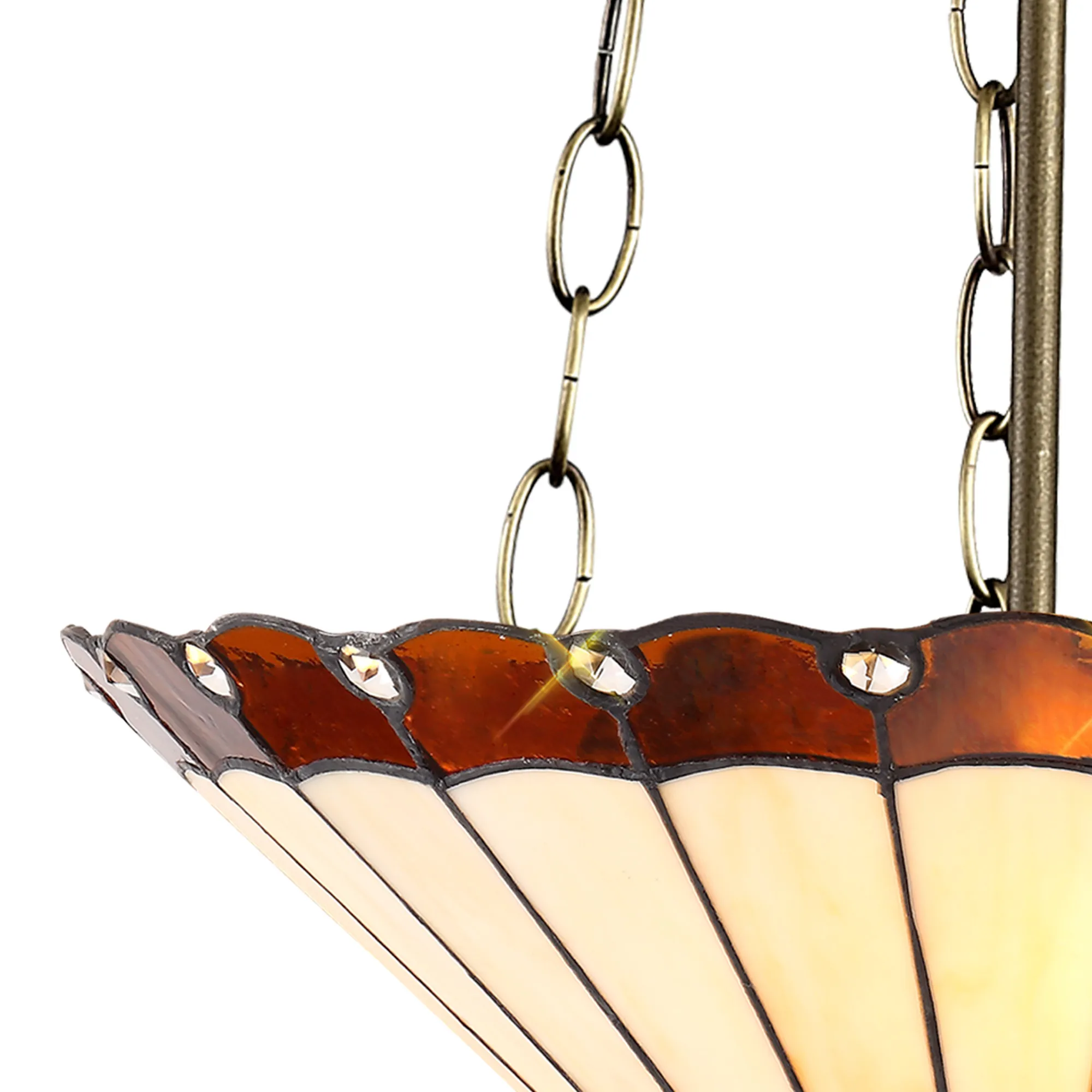 OTHER Farquhar 3 Light Uplighter Pendant E27 With 40cm Tiffany Shade, Amber/Cream/Crystal/Aged Antique Brass