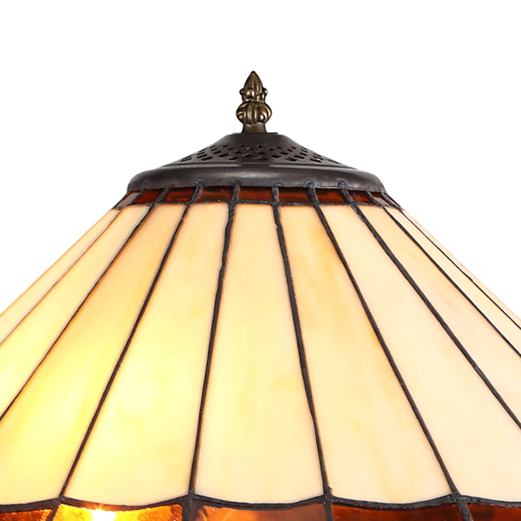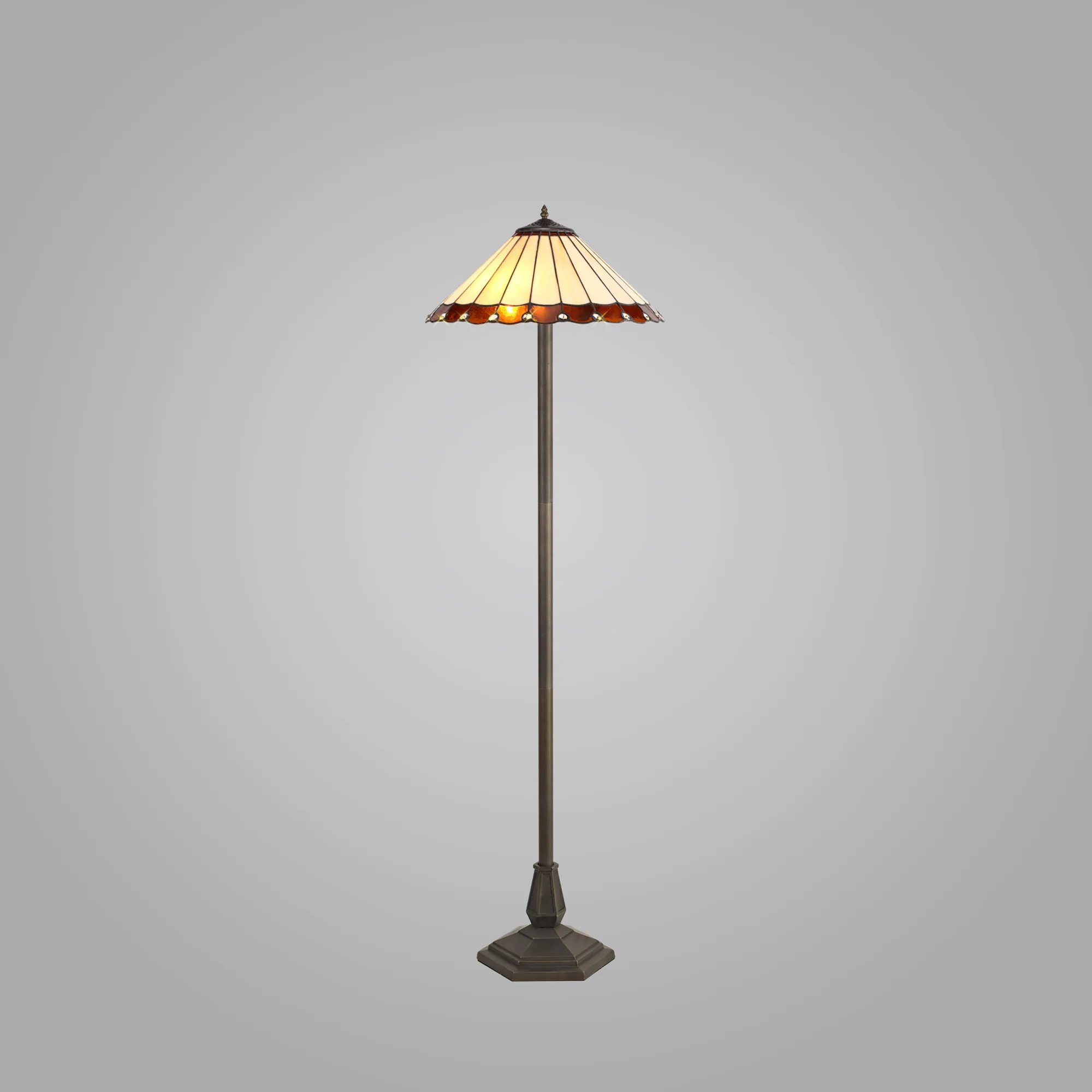 OTHER Farquhar 2 Light Octagonal Floor Lamp E27 With 40cm Tiffany Shade, Amber/Cream/Crystal/Aged Antique Brass