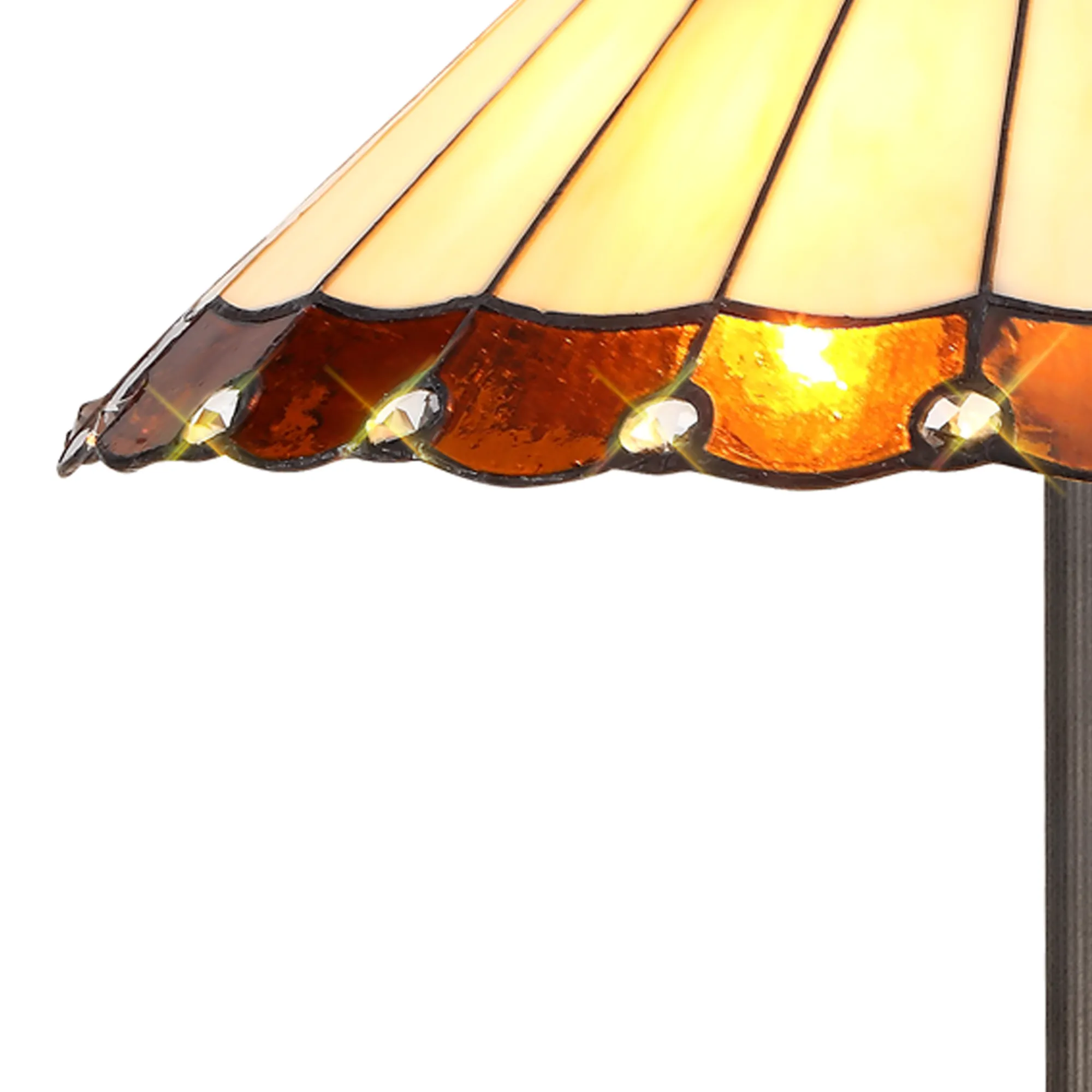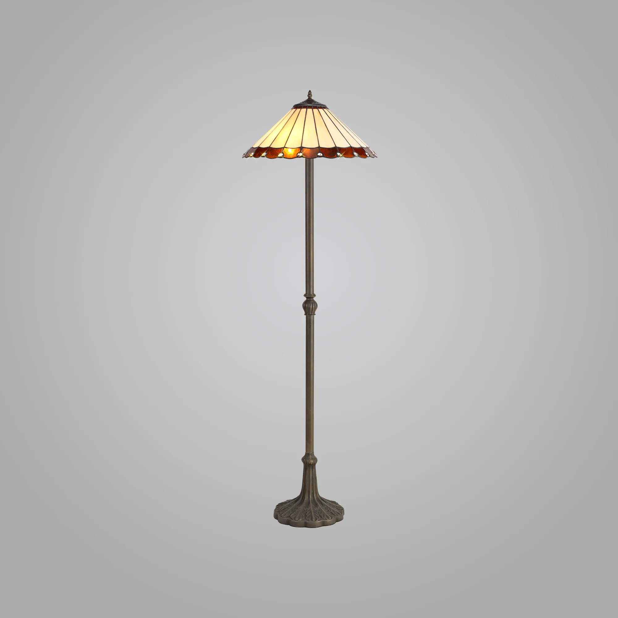 OTHER Farquhar 2 Light Leaf Design Floor Lamp E27 With 40cm Tiffany Shade, Amber/Cream/Crystal/Aged Antique Brass
